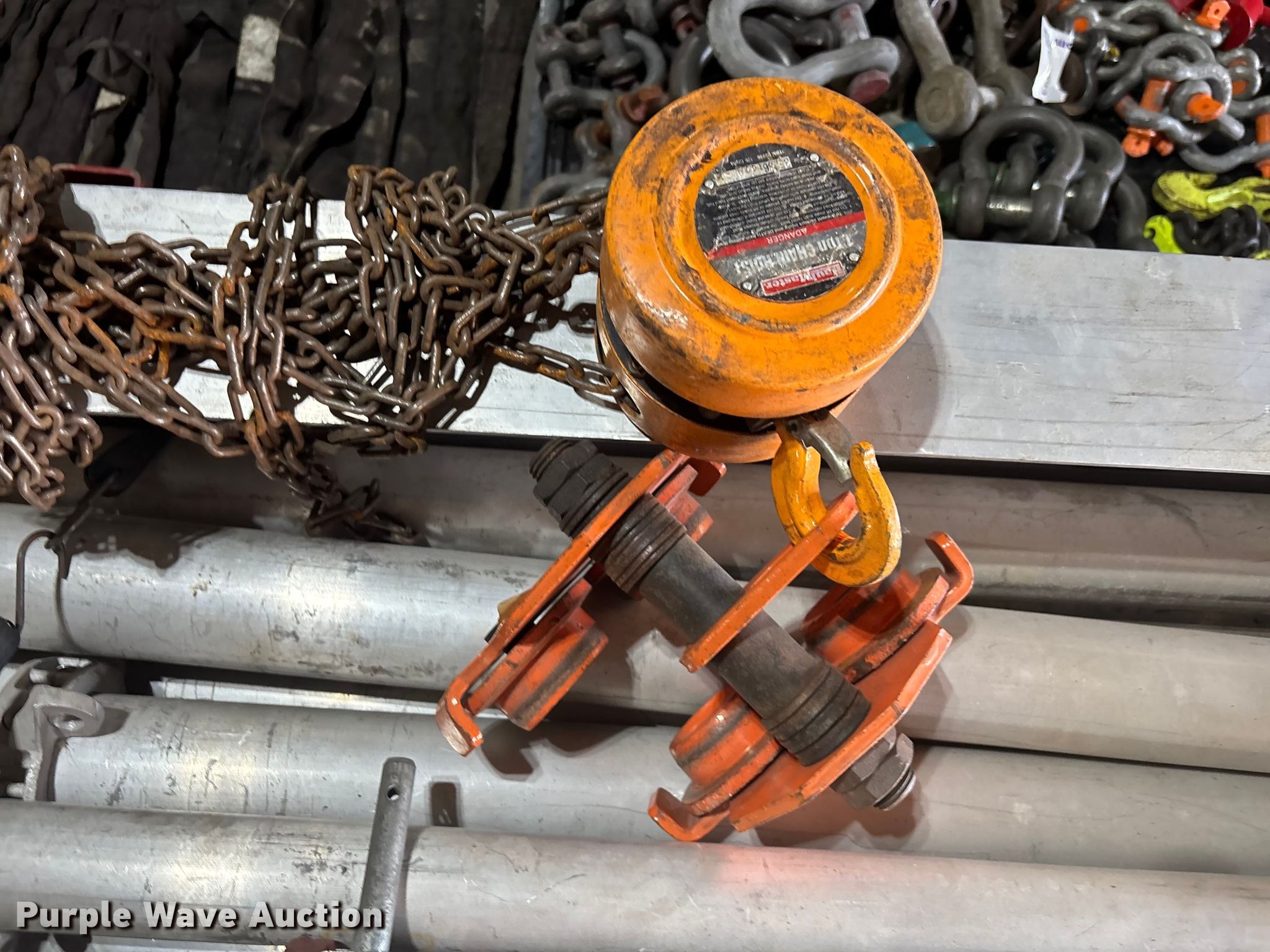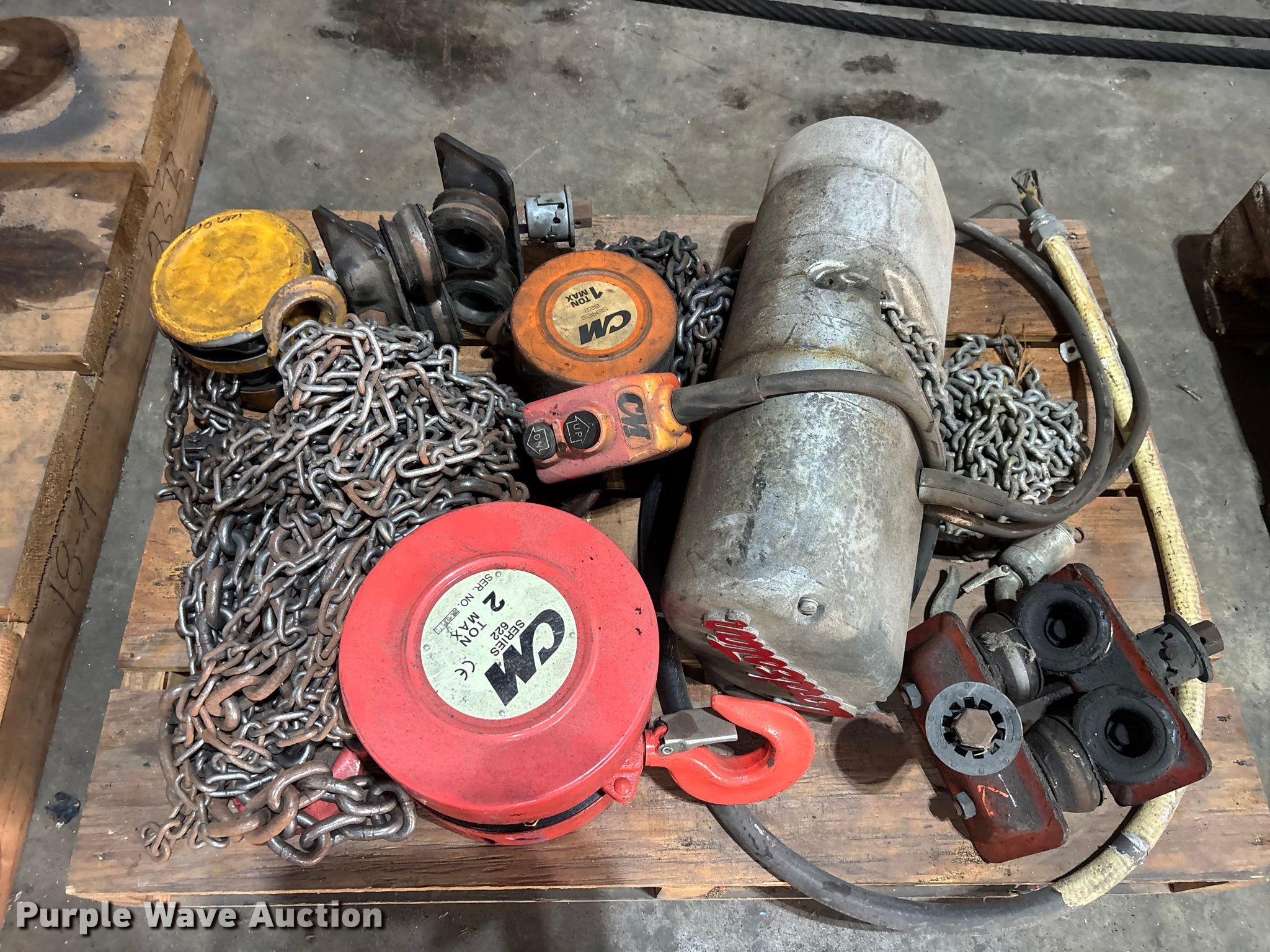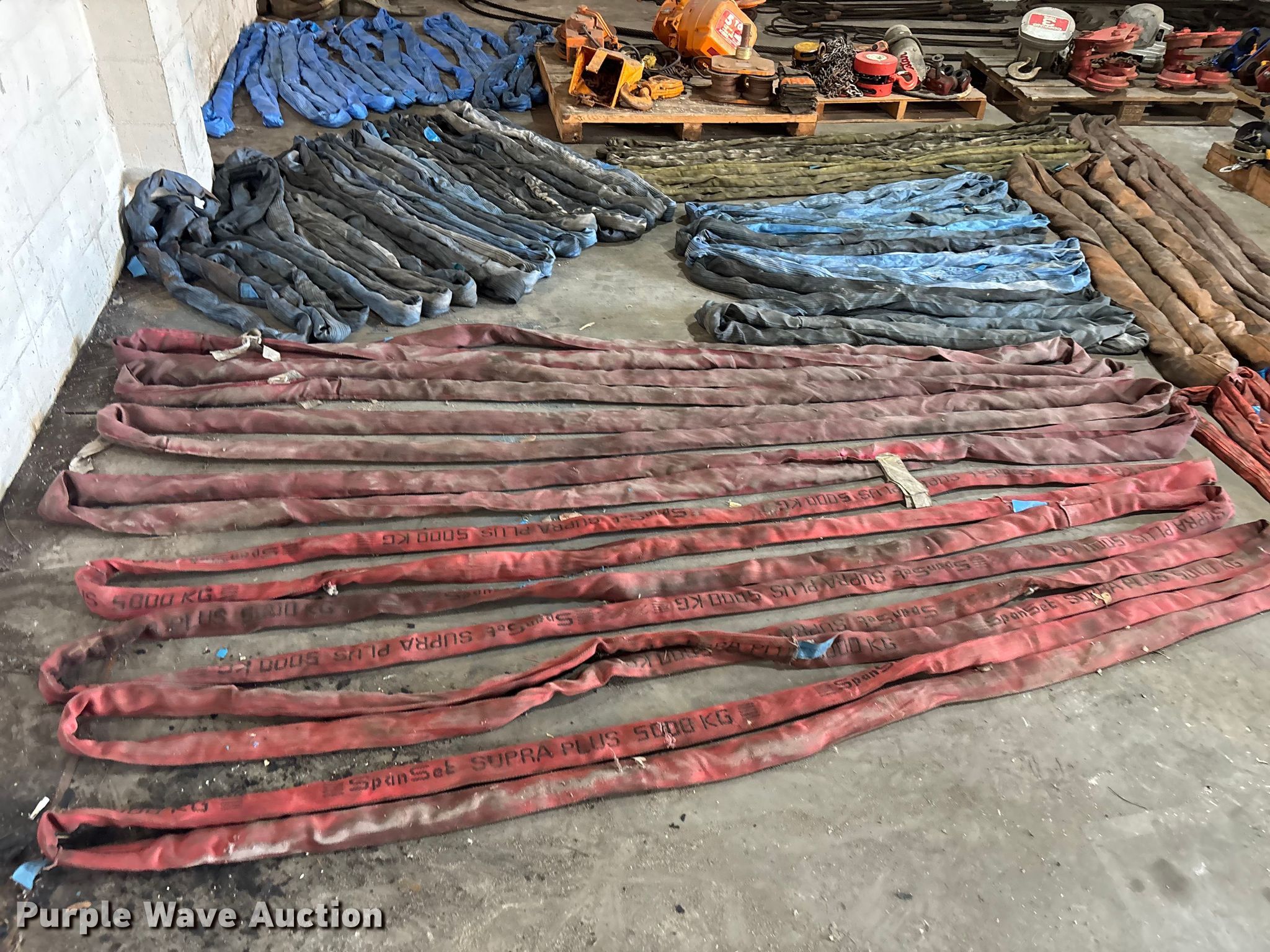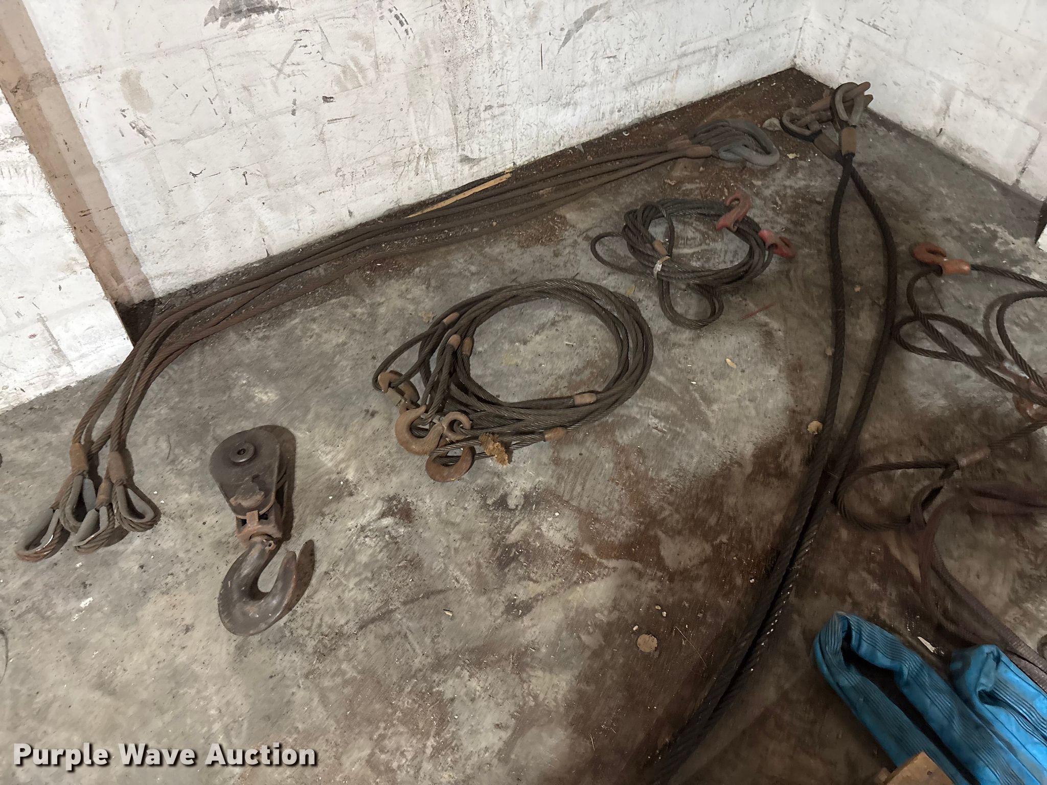 Purple Wave is selling a used Lifting and Rigging in Florida. This item is a Crane attachments and rigging equipment with the following: Wallace gantry crane, Capacity: 2 tons, Slings, Shackles, Capacity: 25 tons, Chain hoists, Cable slings