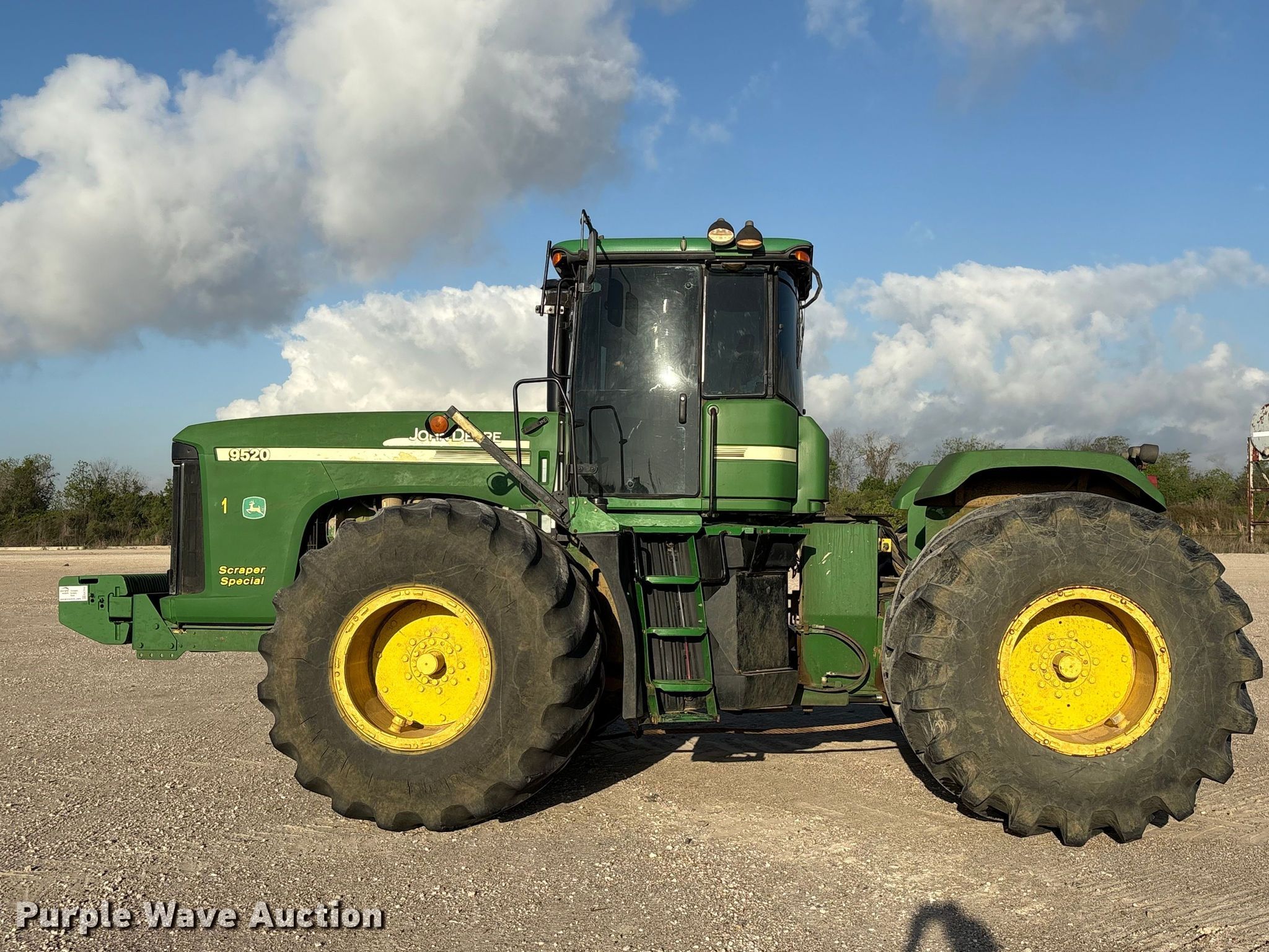 Purple Wave is selling a used Articulated 4-Wheel Drive Tractor in Texas. This item is a 2006 John Deere 9520 Scraper Special 4WD tractor with the following: Hours: 9,168 on meter, Serial: RW9520E042800