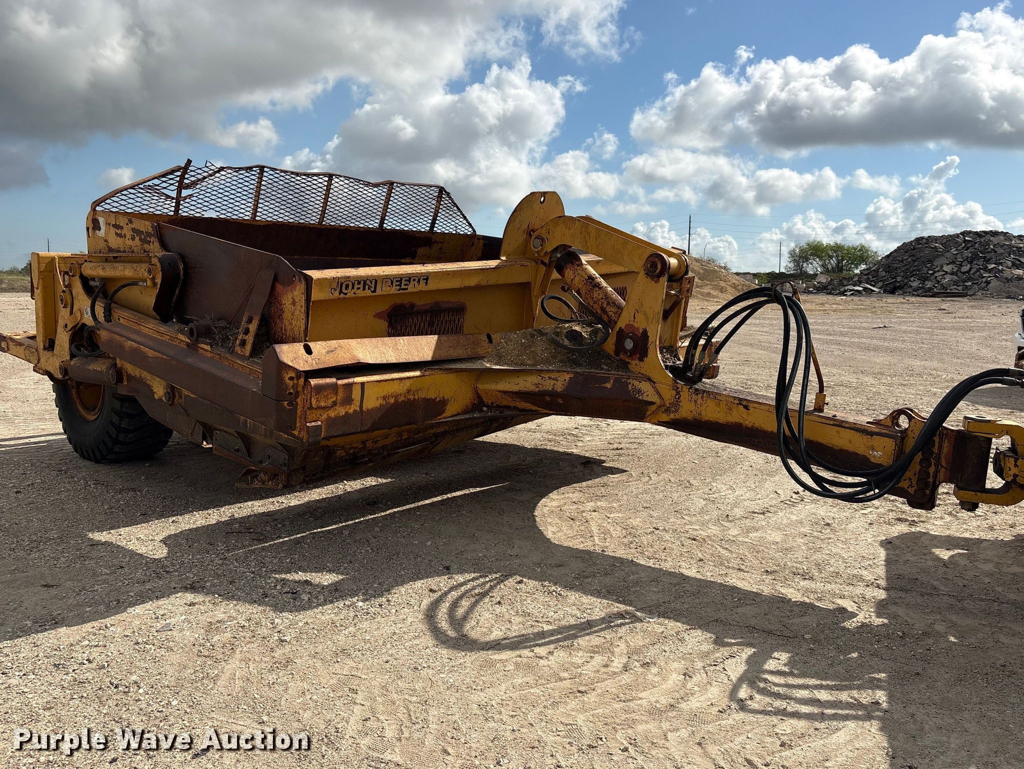 Purple Wave is selling a used Pull Type Scraper in Texas. This item is a 2000 John Deere 1812C scraper with the following: Serial: T81812C001055