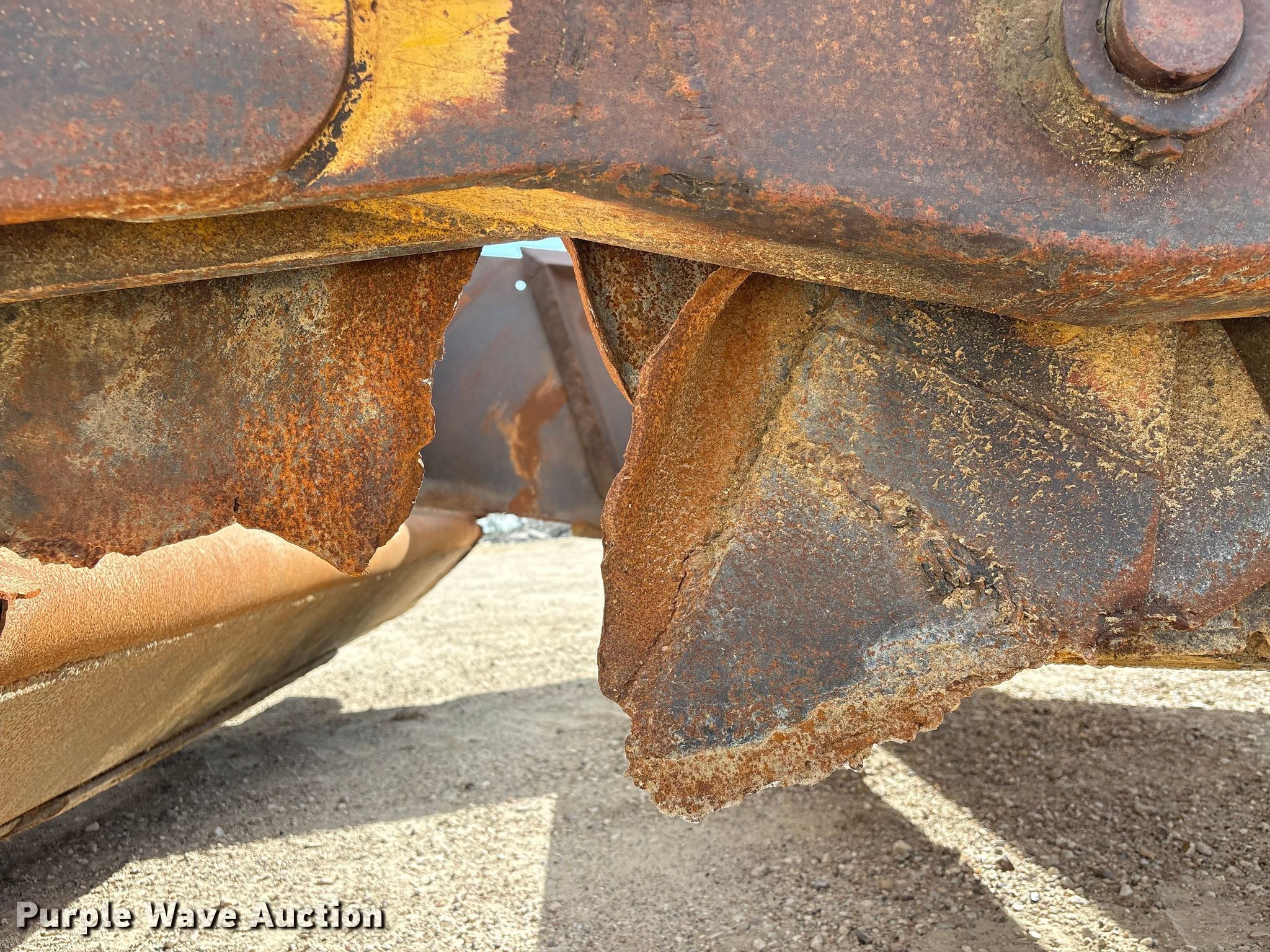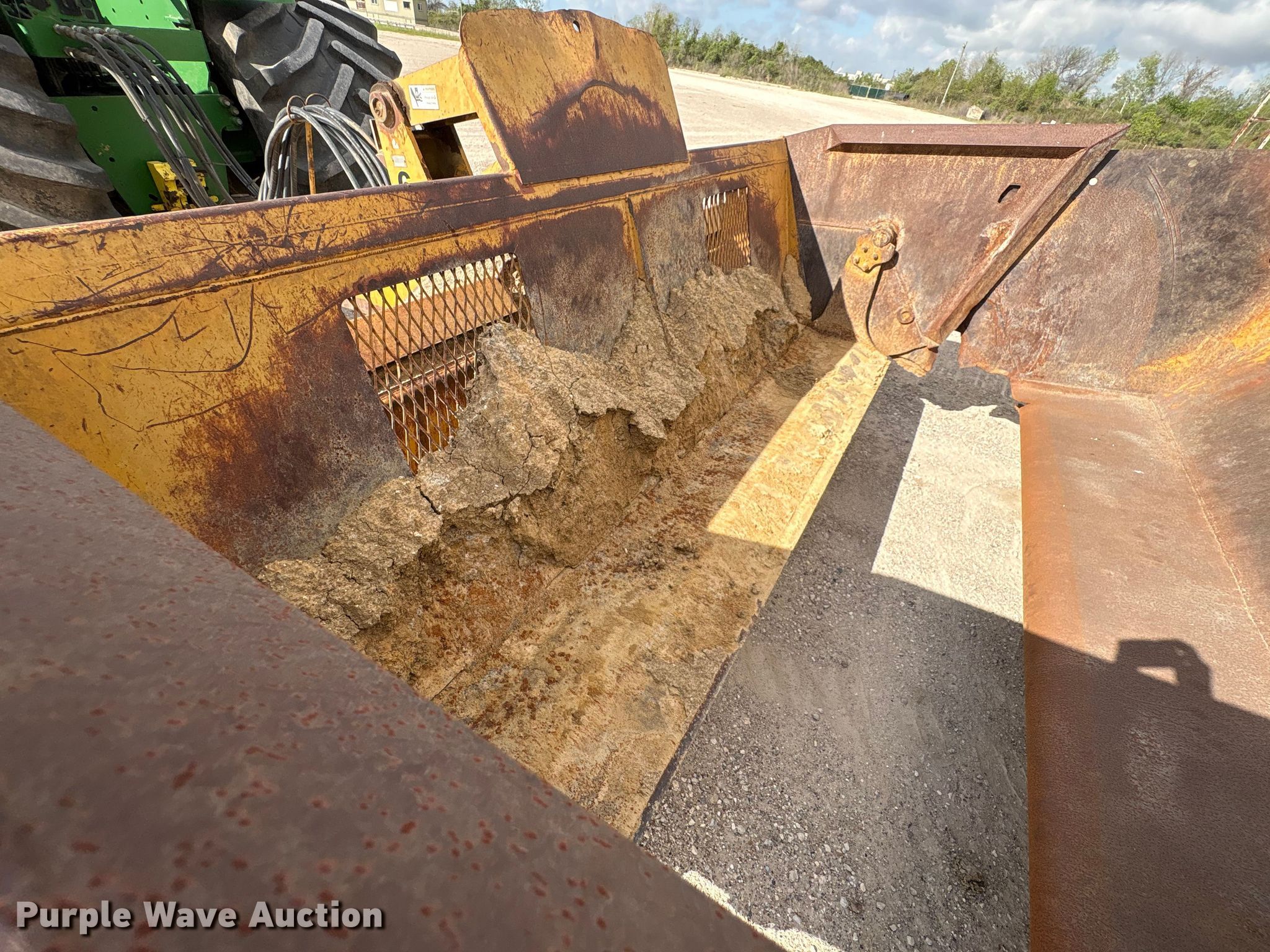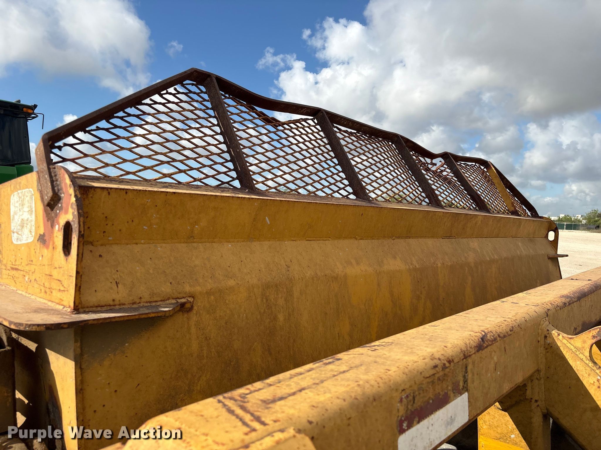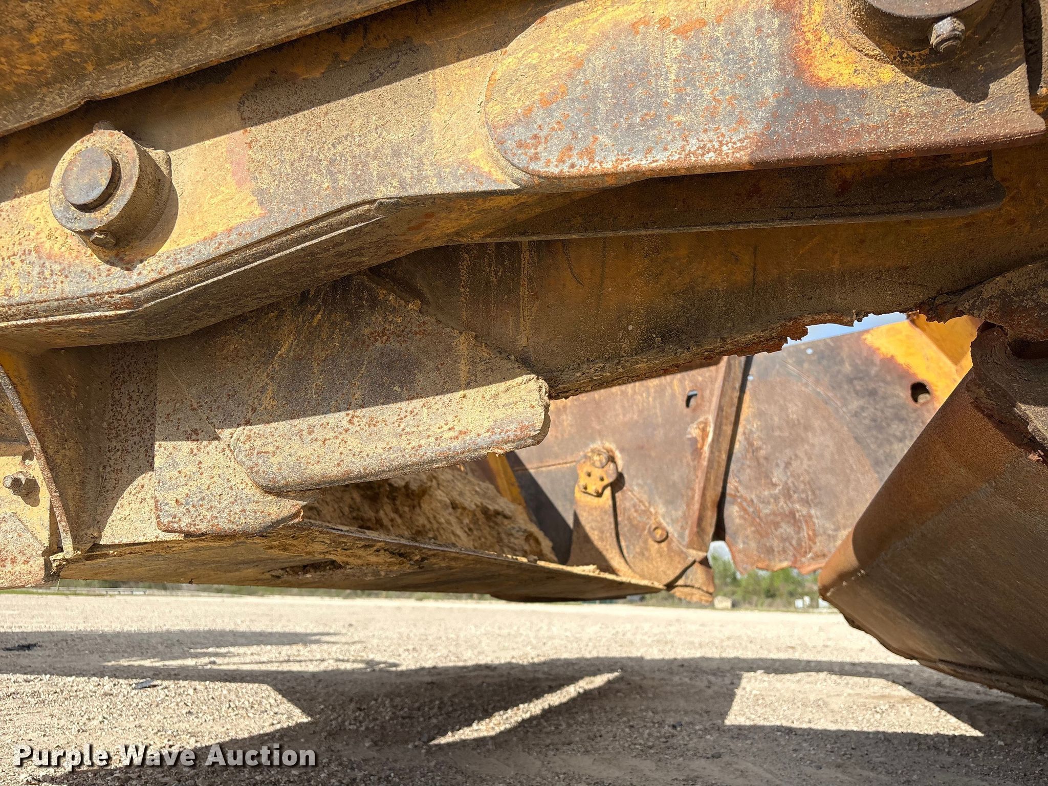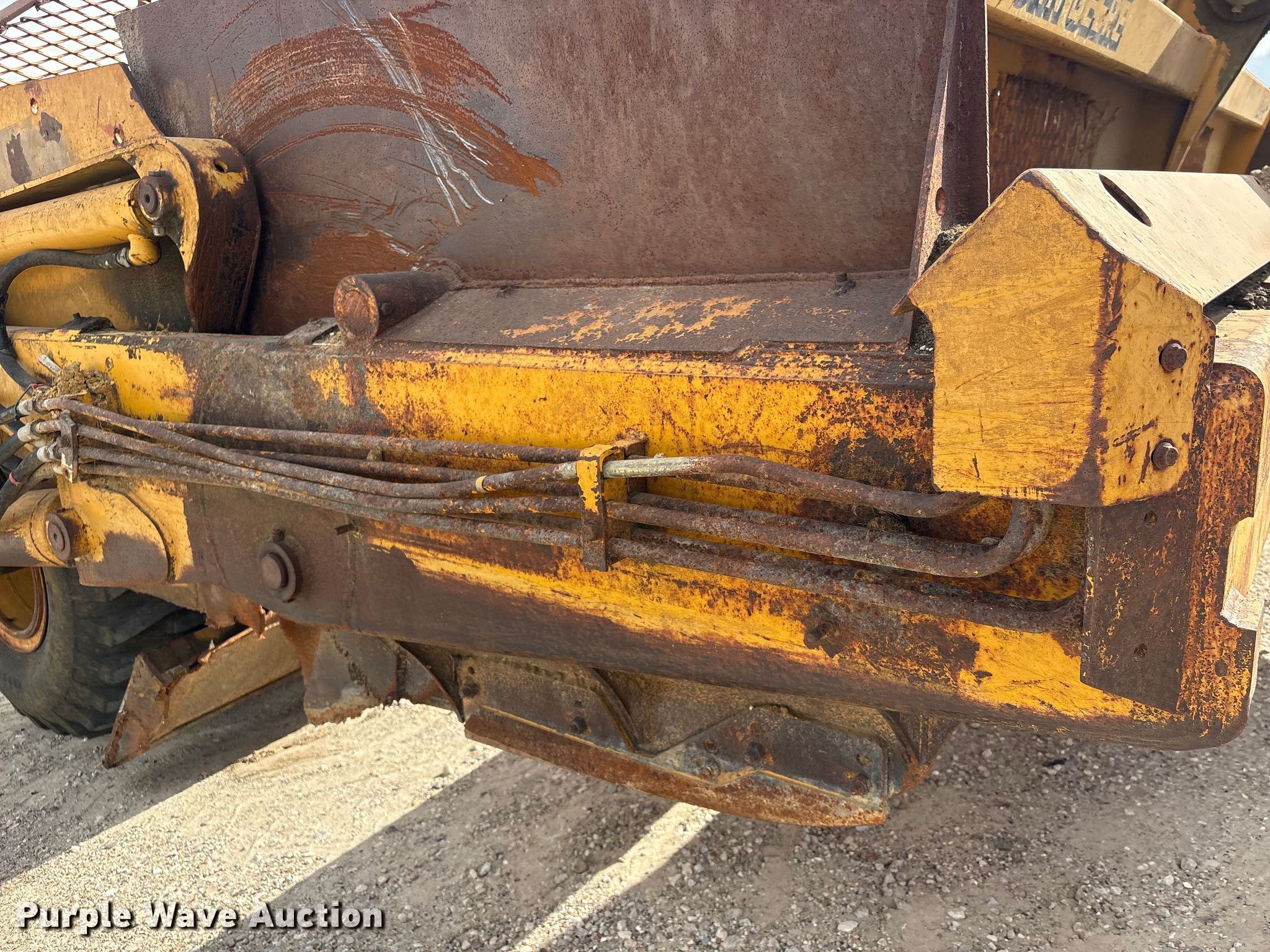 2001 John Deere 1812C scraper. Serial: T818120001364. Features Bowl capacity: 18 cu.yd., Hydraulic lift, Hitch: Scraper, Rear. Notes Scraper blade damage. Teel Civil Construction. Baytown, TX 77523