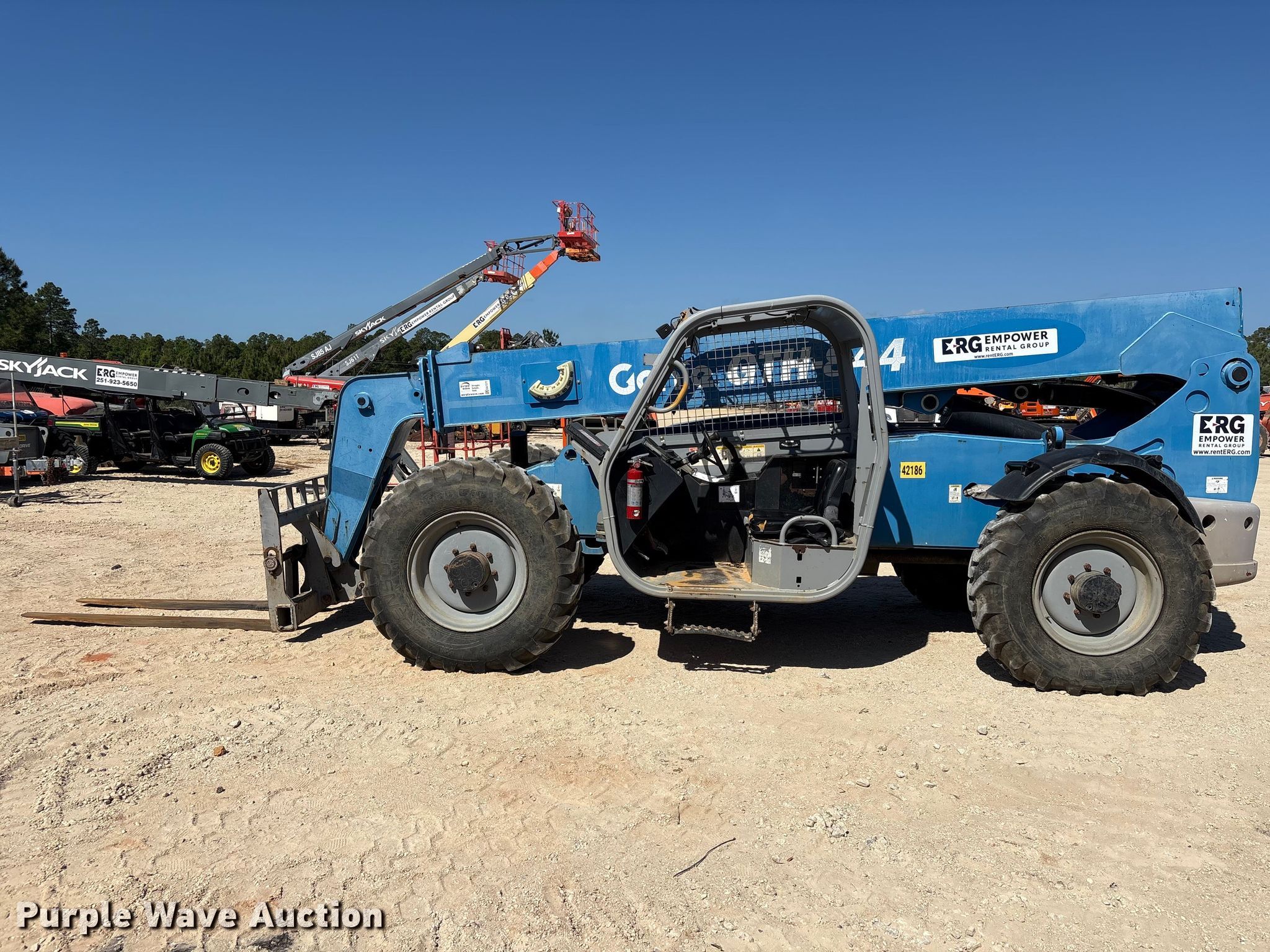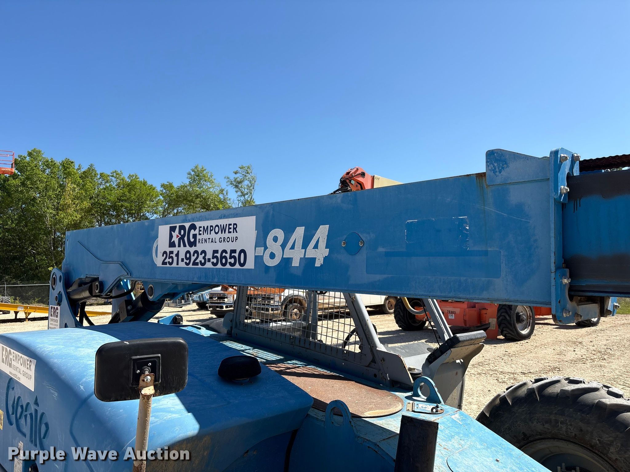 Purple Wave is selling a used Telehandler in Alabama. This item is a 2014 Genie GTH-844 telehandler with the following: Hours: Unknown, Serial: GTH0814-18805