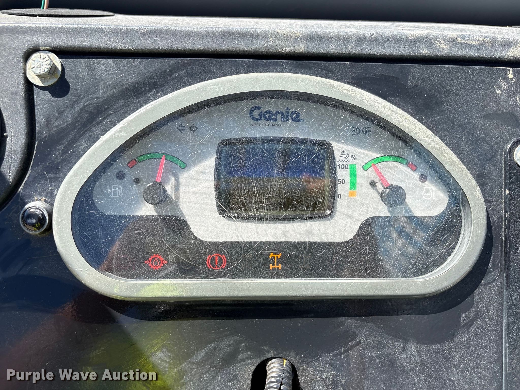 2014 Genie GTH-844 telehandler. Hours: Unknown, Serial: GTH0814-18805. Engine Deutz TCD 3.6 L4, Serial: 11514319, Displacement: 3.6L, Cylinders: 4, Fuel type: Diesel, HP: 100. Transmission Powershift, 3F - 3R, Four wheel drive. Operators station OROPS, Steering: Crab, Four wheel. Features Maximum lift capacity: 8,000 lbs, Maximum lift height: 44', Boom stages: 3, Fork length: 48", Auxiliary hydraulics, Hydraulic leveling, Quick attach: Manual. Tires Size: 13.00-24. Notes Warning indicator: Transmission oil pressure, Non-operational dash cluster. Empower Rental Group. Foley, AL 36535