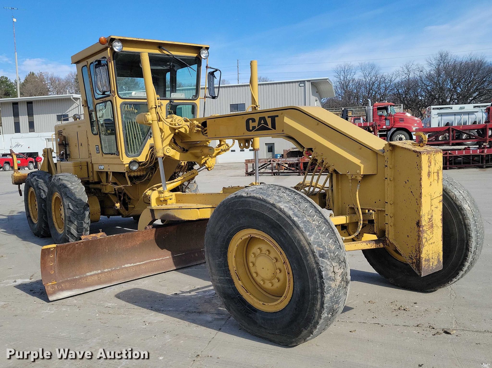 Purple Wave is selling a used Motor Grader in Iowa. This item is a 1988 Caterpillar 140G motor grader with the following: Hours: 14,556 on meter, Serial: 72V11012