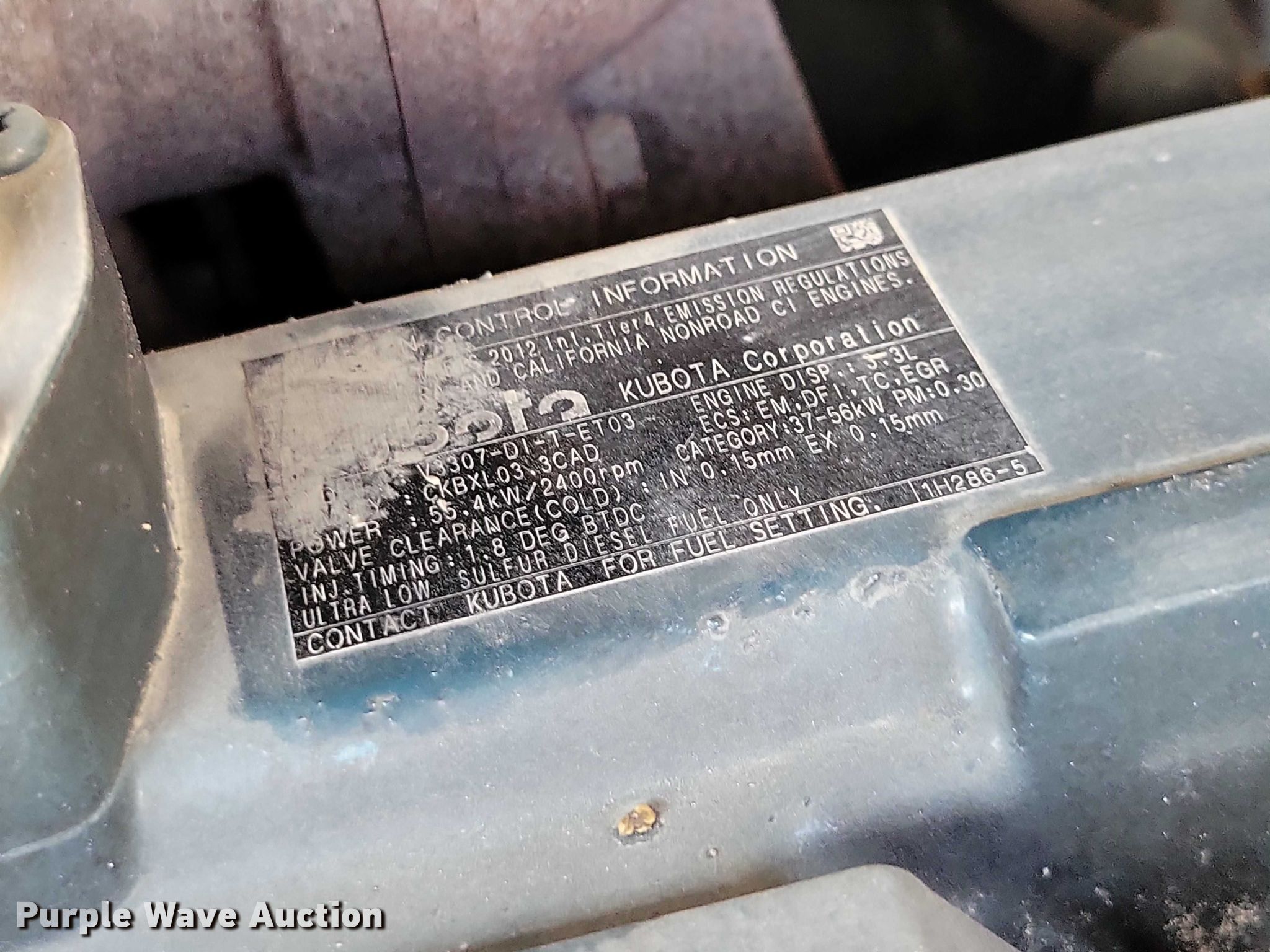 2012 Bobcat T650 tracked skid steer loader. Hours: 2,149 on meter, Serial: A3P015608. Engine Kubota V3307, Displacement: 3.3L, Cylinders: 4, Fuel type: Diesel. Transmission Hydrostatic, Two speed travel. Operators station OROPS, Bucket control: Hand, Foot. Features Auxiliary hydraulics, Auxiliary electrical outlet, Quick coupler: Manual, Bucket Width: 72", Teeth: Bolt-on. Tracks Width: 18". Caliber Concrete. 110 Hillcrest Street. Adair, IA 50002
