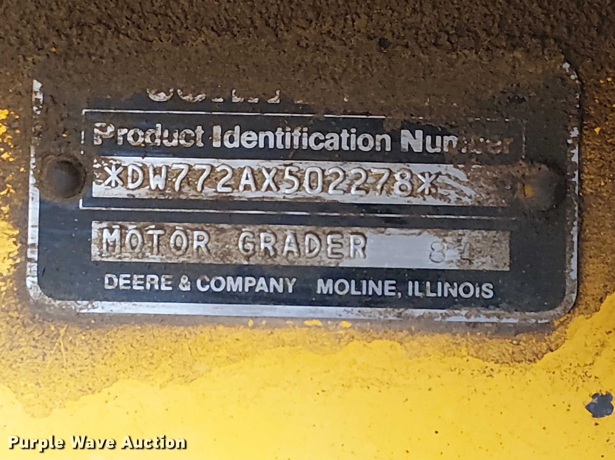 Purple Wave is selling a used Motor Grader in Colorado. This item is a 1984 John Deere 772A motor grader with the following: Hours: 6,509 on meter, Serial: DW772AX502278
