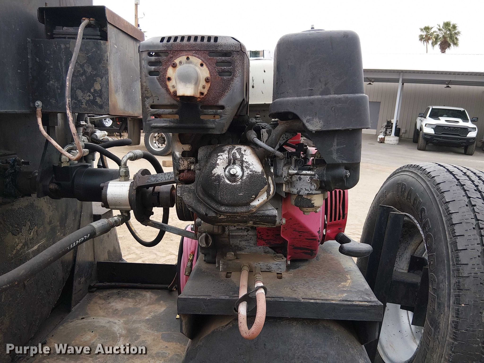 Seal coat machine. Serial: 1S9A51829301203. Dimensions Overall Length: 15', Width: 6'. Engine Honda, Displacement: 389 cm3, Fuel type: Gas. Features Tank length: 74", Tank diameter: 48" Capacity: 550 gallons, Honda air compressor. Tires Size: 235/80R16. This is worksite support equipment and will not come with a title. Transfer of ownership documentation will be a bill of sale. All Asphalt & Seal Coating. Glendale, AZ 85303