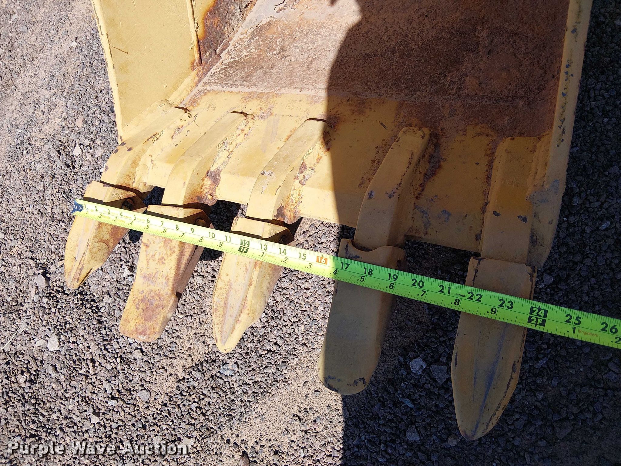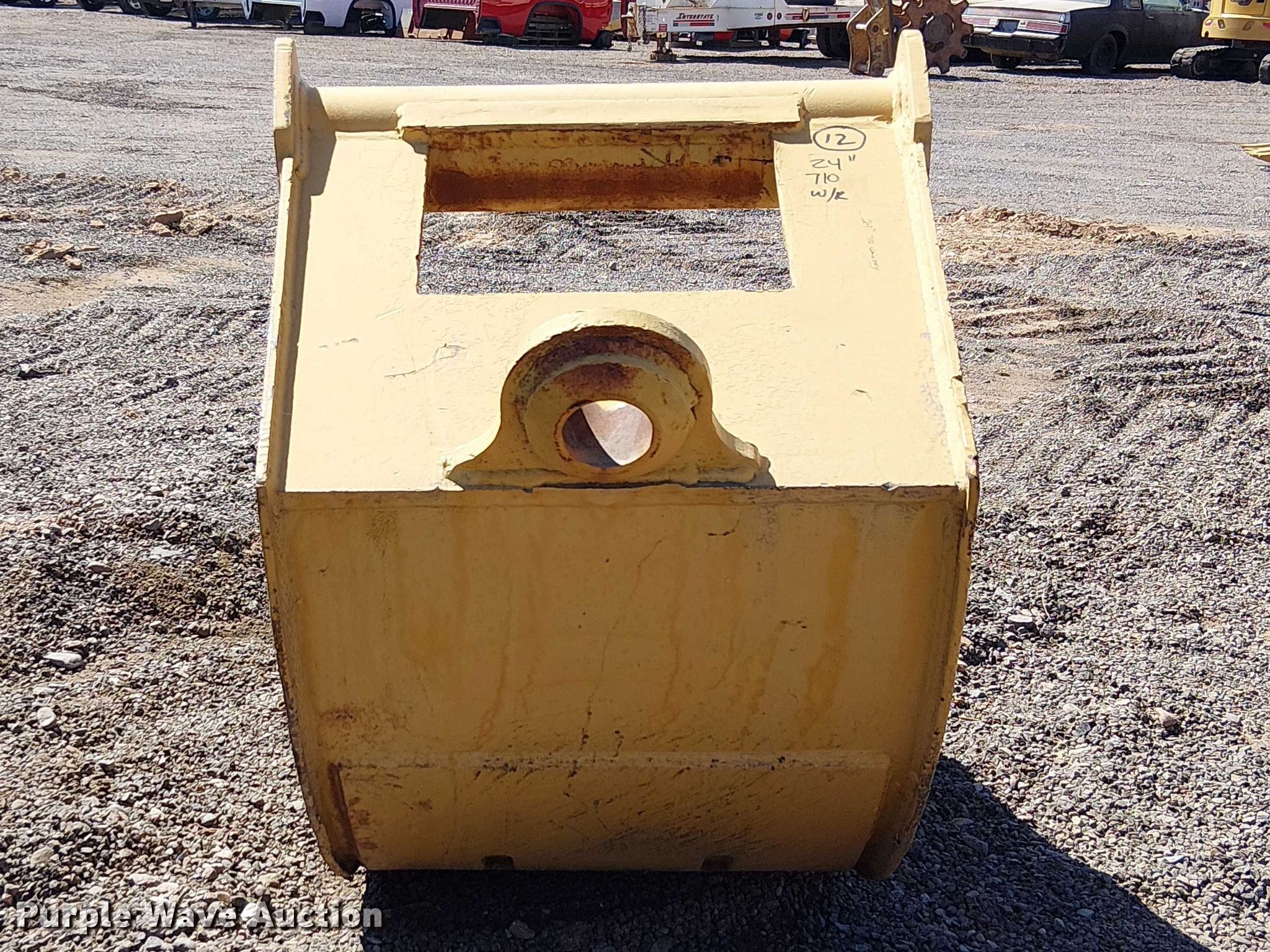 Purple Wave is selling a used Backhoe Attach. in Arizona. This item is a C&P 710 backhoe bucket with the following: Teeth: 5, Width: 24", Quick coupler: Wainroy