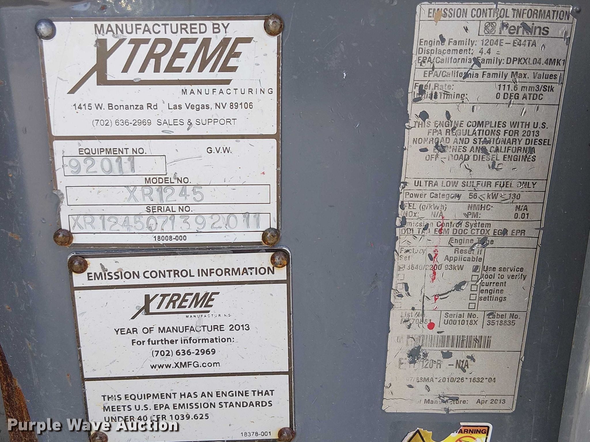Purple Wave is selling a used Telehandler in California. This item is a 2013 Xtreme XR1245 telehandler with the following: Serial: XR1245071392011, Unit #: 92011