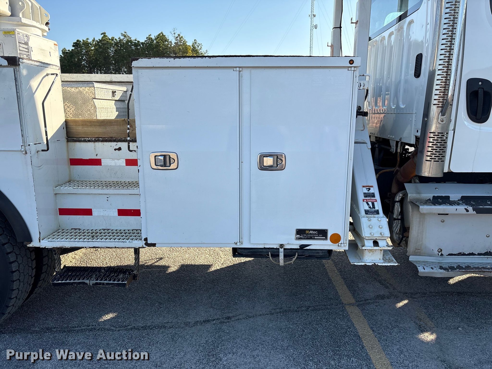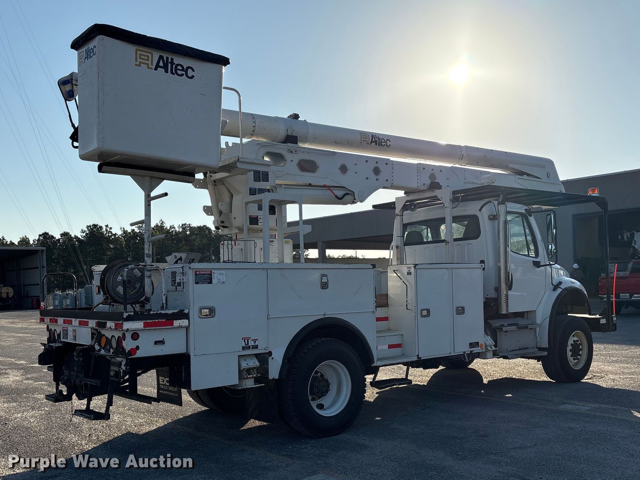 2015 Freightliner Business Class M2 bucket truck. Miles: 139,965 on odometer, VIN: 1FVDCXCY5FHGN2374. Engine Cummins ISL, Displacement: 8.9L, Cylinders: 6, Fuel type: Diesel, Engine brake. Transmission Allison, Automatic. Chassis Four wheel drive, Axles: Single, Single axle differential lock, Suspension: Spring, Brakes: Air, PTO, GVWR: 33,000 lbs. Interior AC, Heat, Cruise control. Features Bed Utility bed, Altec, Serial: 97-33196742, Length: 195", Width: 94", Height: 46", Boom 2015 Altec AA55F, Serial: 1014FH1492, Maximum lift capacity: 600 lbs, Maximum lift height: 56', Boom type: Articulating, Insulated, Boom controls Lower, Basket, Material handler, Winch. Tires Front: 385/65R22.5, Rear: 11R22.5. South Carolina title. Title distribution may be delayed up to 14 days from verification of funds. Tri-County Electric Coop - SC. Saint Matthews, SC 29135