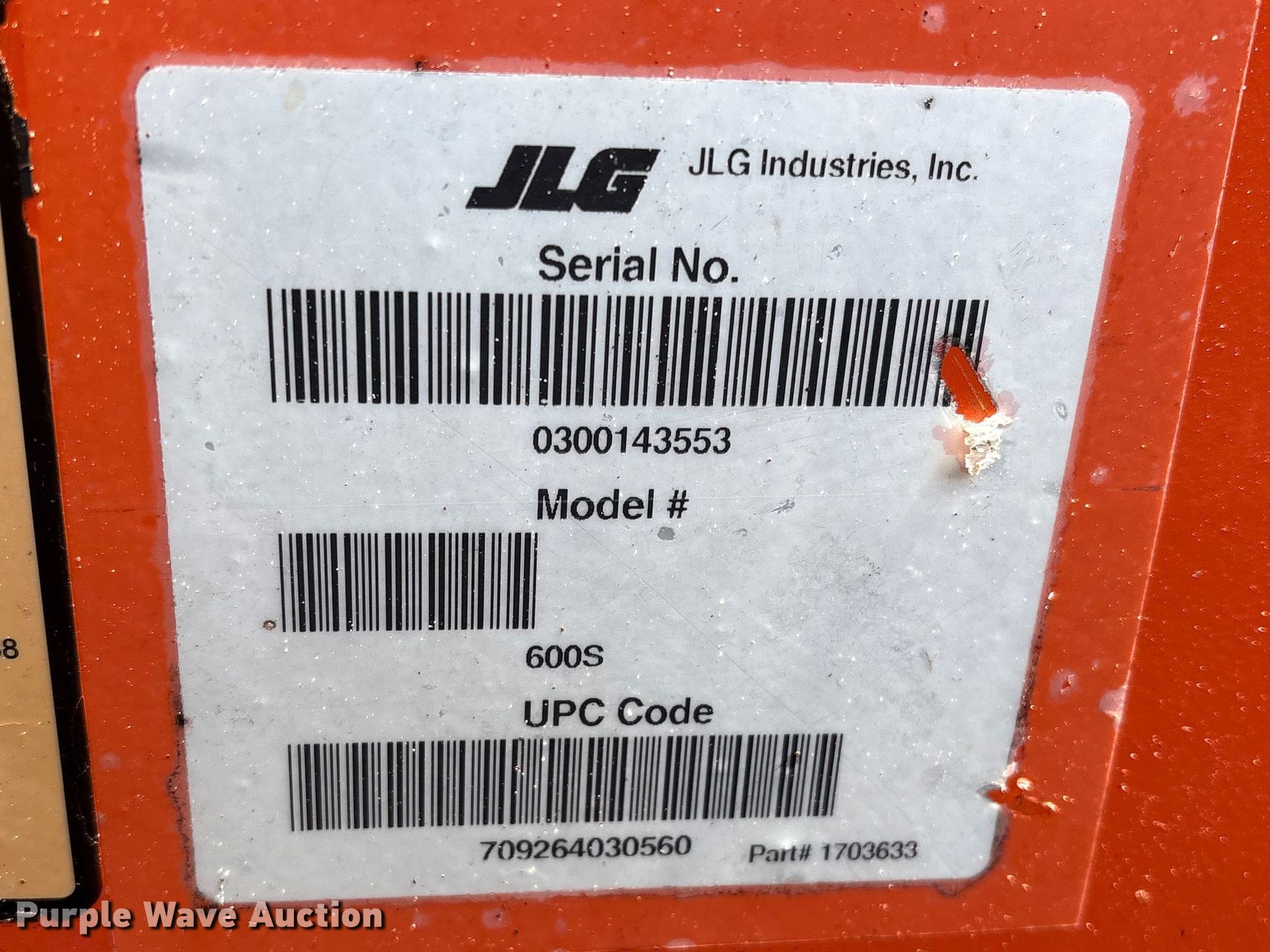 Purple Wave is selling a used Boom Lift in South Carolina. This item is a 2011 JLG 600S boom lift with the following: Hours: 6,787 on meter, Serial: 0300143553