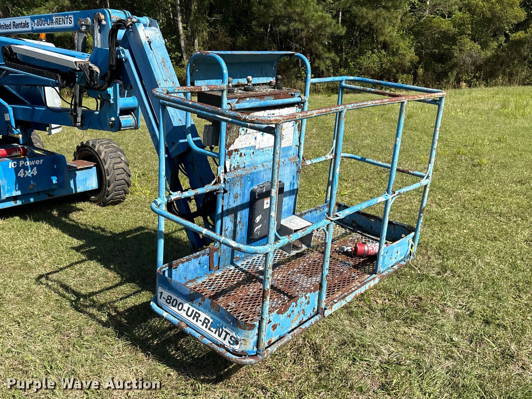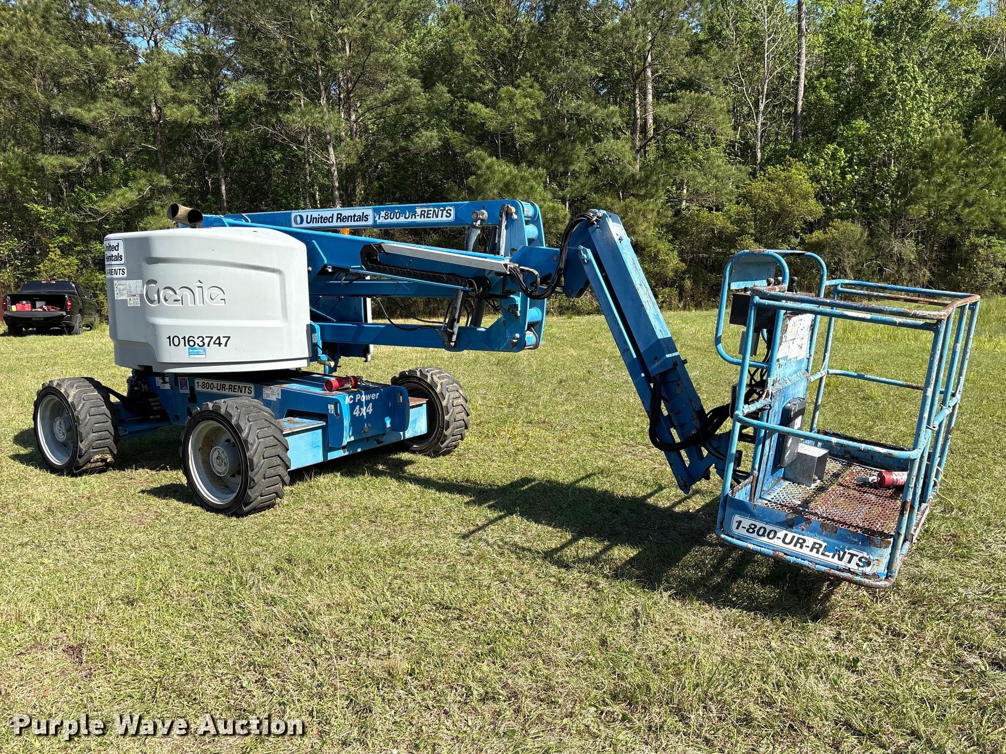 2013 Genie Z45 boom lift. Hours: 2,369 on meter, Serial: Z442513A-48534. Engine Deutz, Cylinders: 4, Fuel type: Diesel. Chassis Four wheel drive. Features Rough terrain, Boom type: Articulating, Telescopic, Maximum lift capacity: 500 lbs, Maximum reach length: 24' 8", Maximum lift height: 46' 1", Hydraulic extendable jib, Hydraulic leveling, Platform: 72" L x 30" W, AC power outlet, Controls: Platform, Ground, Platform rotation: Hydraulic. Tires Tire size: 315/55D20, Foam filled. Reed's Construction and Painting. Socastee, SC 29576