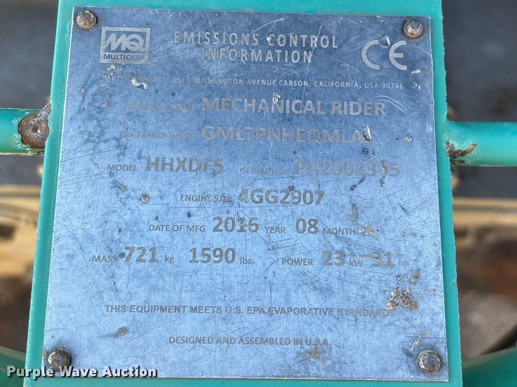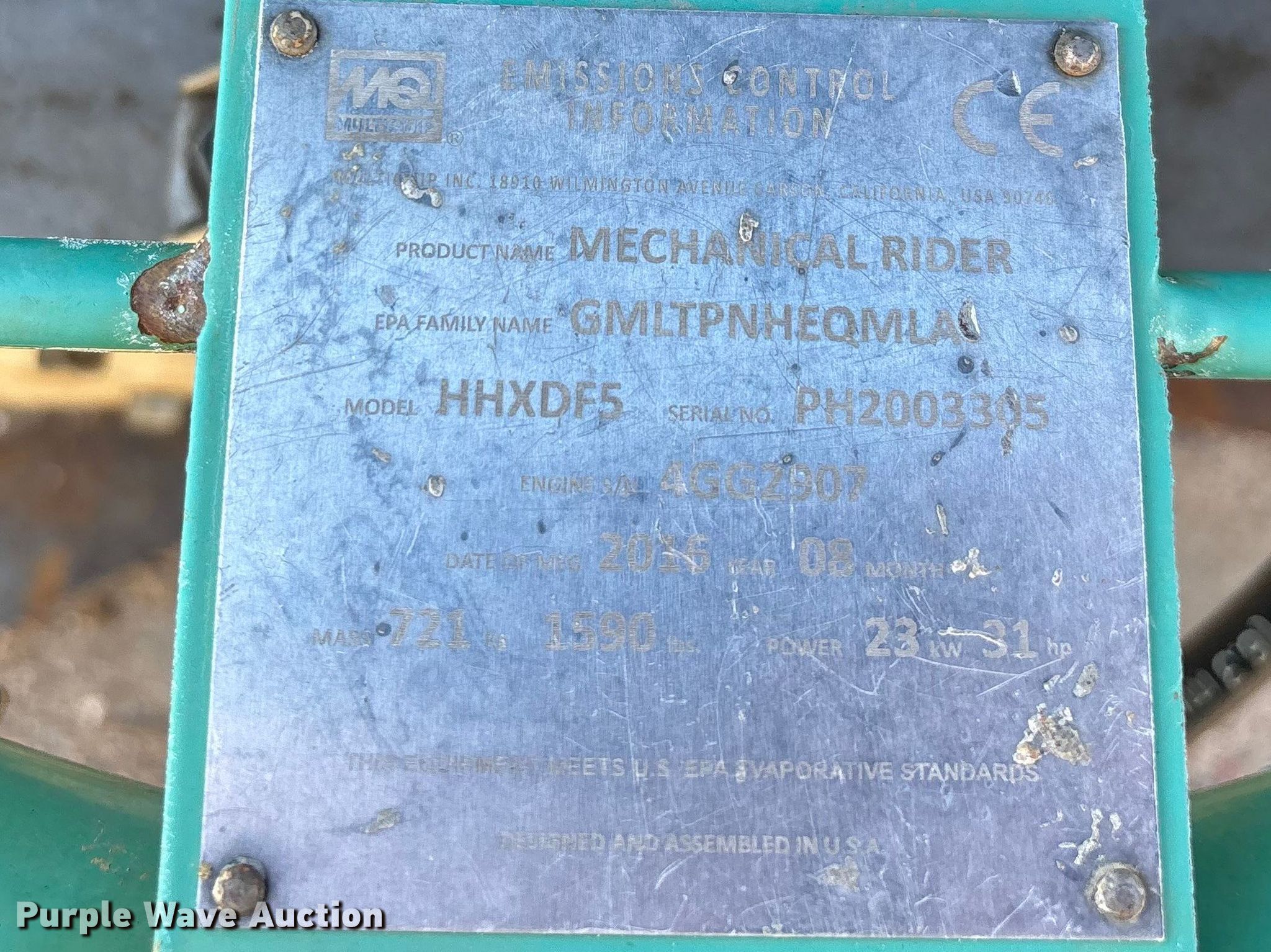 Purple Wave is selling a used Concrete Equip. or Acces. in Missouri. This item is a Whiteman HHXDF5 power trowel with the following: Hours: 1,017 on meter, Serial: PH2003305, Unit #: FE20
