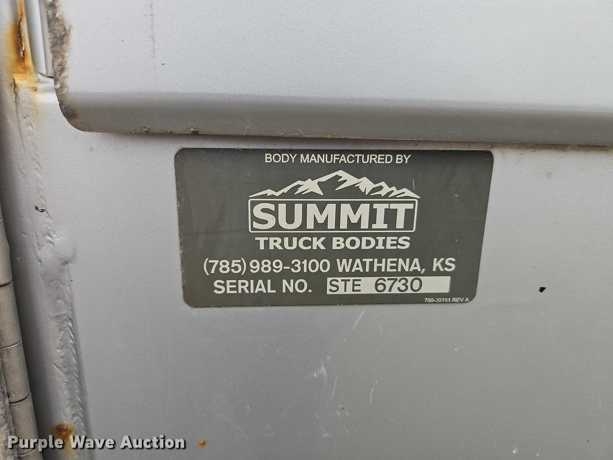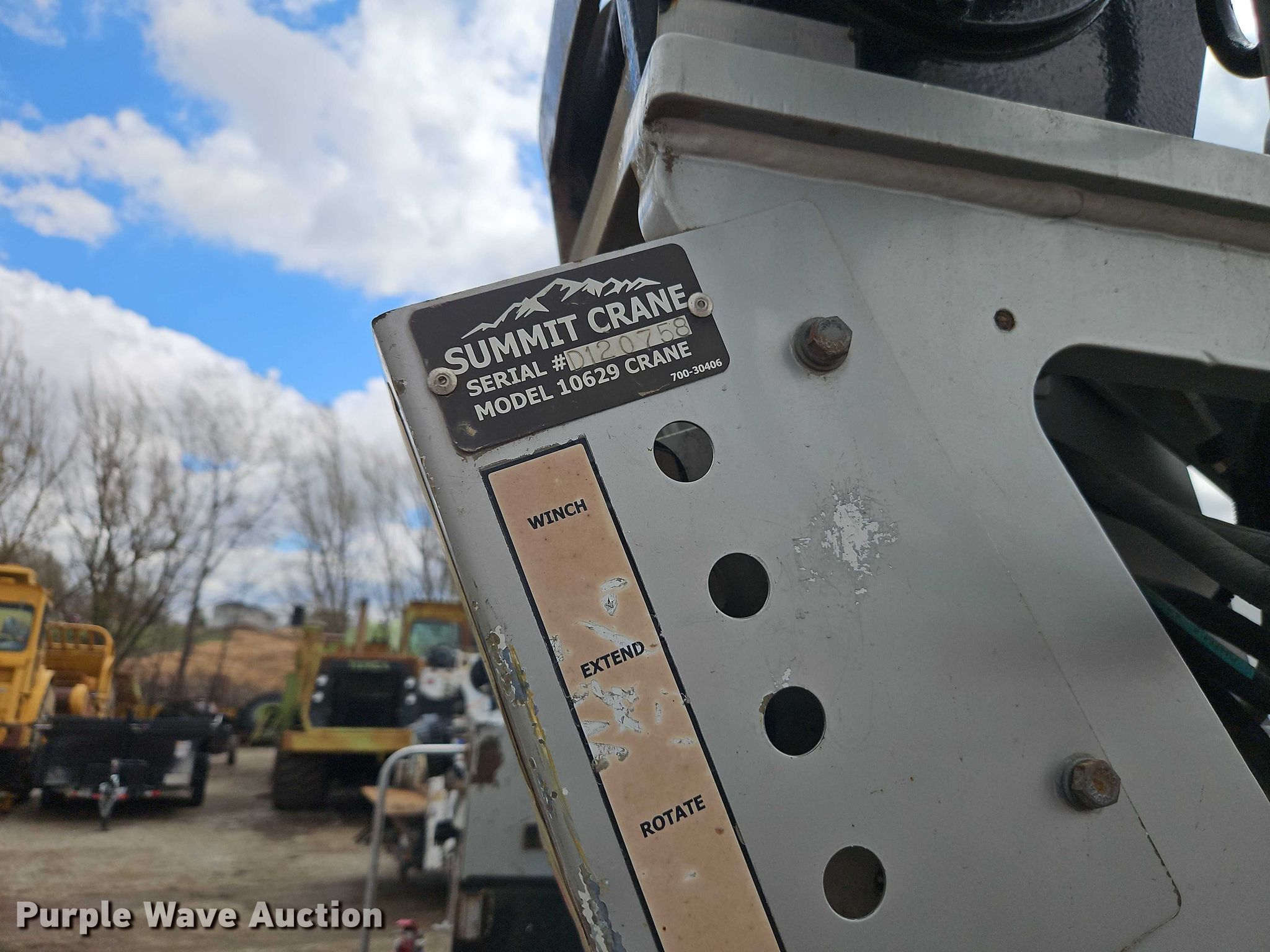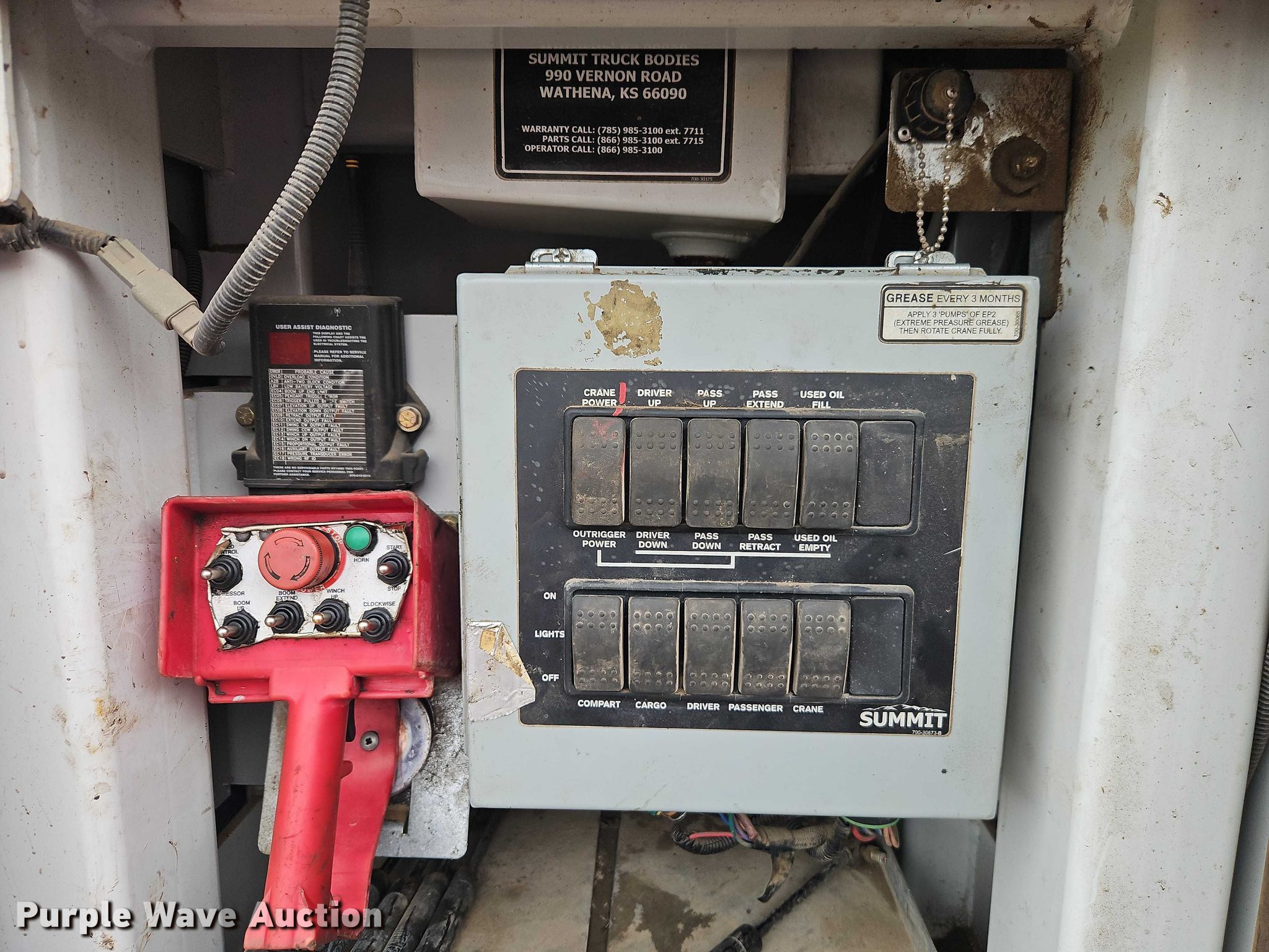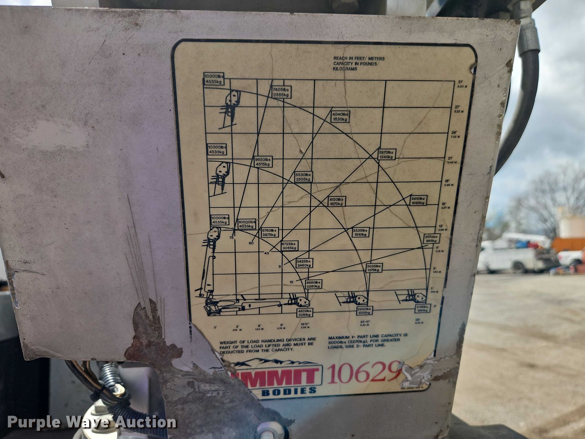 2009 GMC C7500 utility / service truck. Miles: 265,183 on odometer, Hours: 10,807 on meter, VIN: 1GDM7C1A09F409143. Engine Displacement: 7.2L, Cylinders: 6, Fuel type: Diesel. Transmission Eaton Fuller 8LL, Speed: 10. Chassis Axles: Single, Suspension: Spring, Brakes: Air, PTO, Wet kit, GVWR: 33,000 lbs. Interior AC, Heat, Heated mirrors, Cruise control, Auxiliary controls. Features Bed Utility bed, Summit Truck Bodies, Serial: STE 6730, Length: 13', Width: 99", Air compressor IMT CAS40P-AW, Crane Summit Crane 10629, Maximum boom length: 29' Maximum lift capacity: 10,000 lbs.. Tires Size: 11R22.5. Notes Dash warning indicator: ABS. Kansas title. Title distribution may be delayed up to 14 days from verification of funds. Haupt Construction Company. Spring Hill, KS 66083