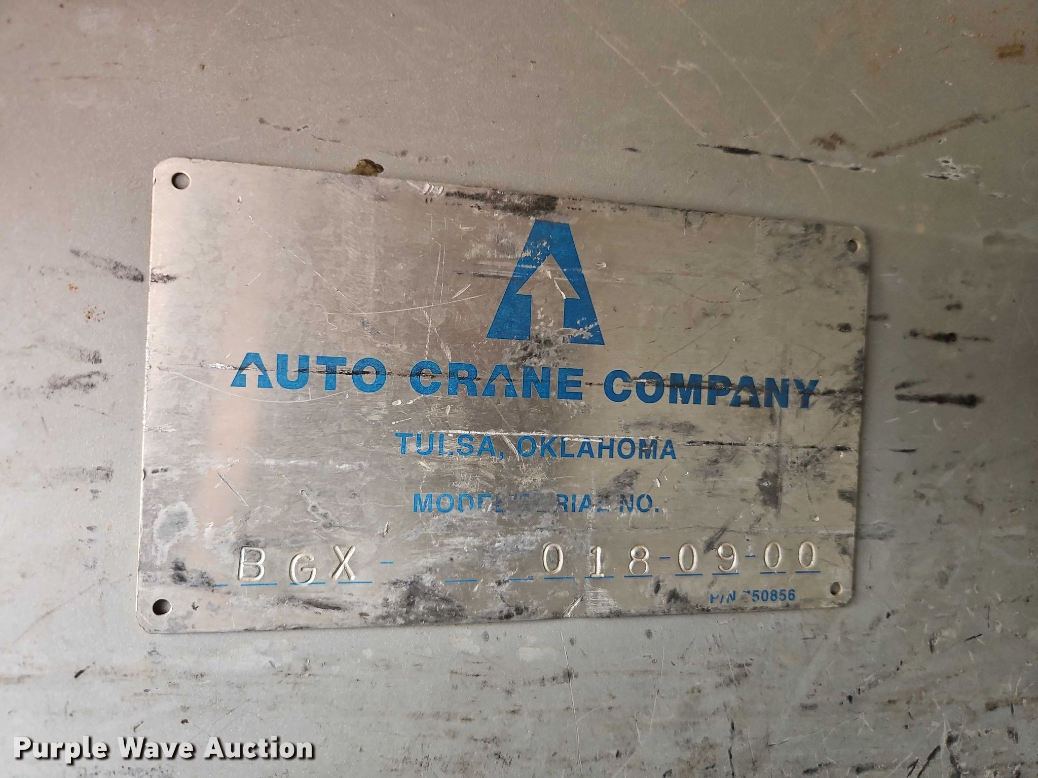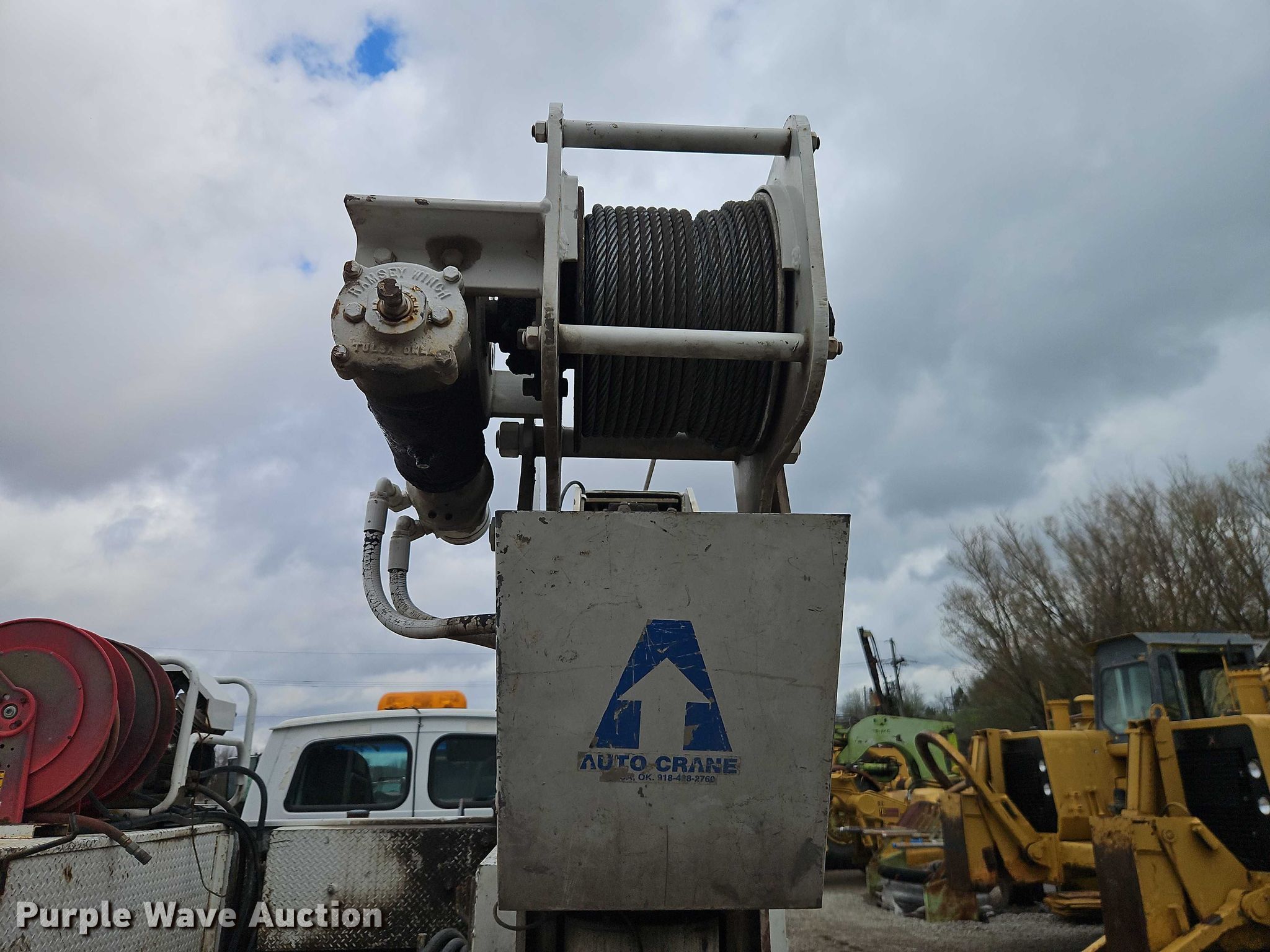 2001 Sterling Acterra utility / service truck. Miles: 401,571 on odometer, VIN: 2FZAAMAK81AH85727. Engine Caterpillar 3216, Displacement: 7.2L, Cylinders: 6, Fuel type: Diesel. Transmission Eaton Fuller Synchro-6, Manual, Speed: 6. Chassis Axles: Single, Suspension: Spring, Brakes: Air, PTO, Wet kit, GVWR: 33,000 lbs. Interior AC, Heat, Heated mirrors, Cruise control, Brake controller. Features Bed Utility bed, Auto Crane Company BGX, Serial: 0180900, Length: 13', Width: 96", Torch bottle rack, Welder Lincoln SA-250 F-163, Fuel type: Gas, Welder type: Leads, Stick (AC/DC), Air compressor Atlas Copco, Crane Auto Crane 11006H, Maximum boom length: 25' Maximum lift capacity: 11,000 lbs.. Tires Size: 11R22.5. Notes Windshield chipped or cracked. Kansas title. Title distribution may be delayed up to 14 days from verification of funds. Haupt Construction Company. Spring Hill, KS 66083
