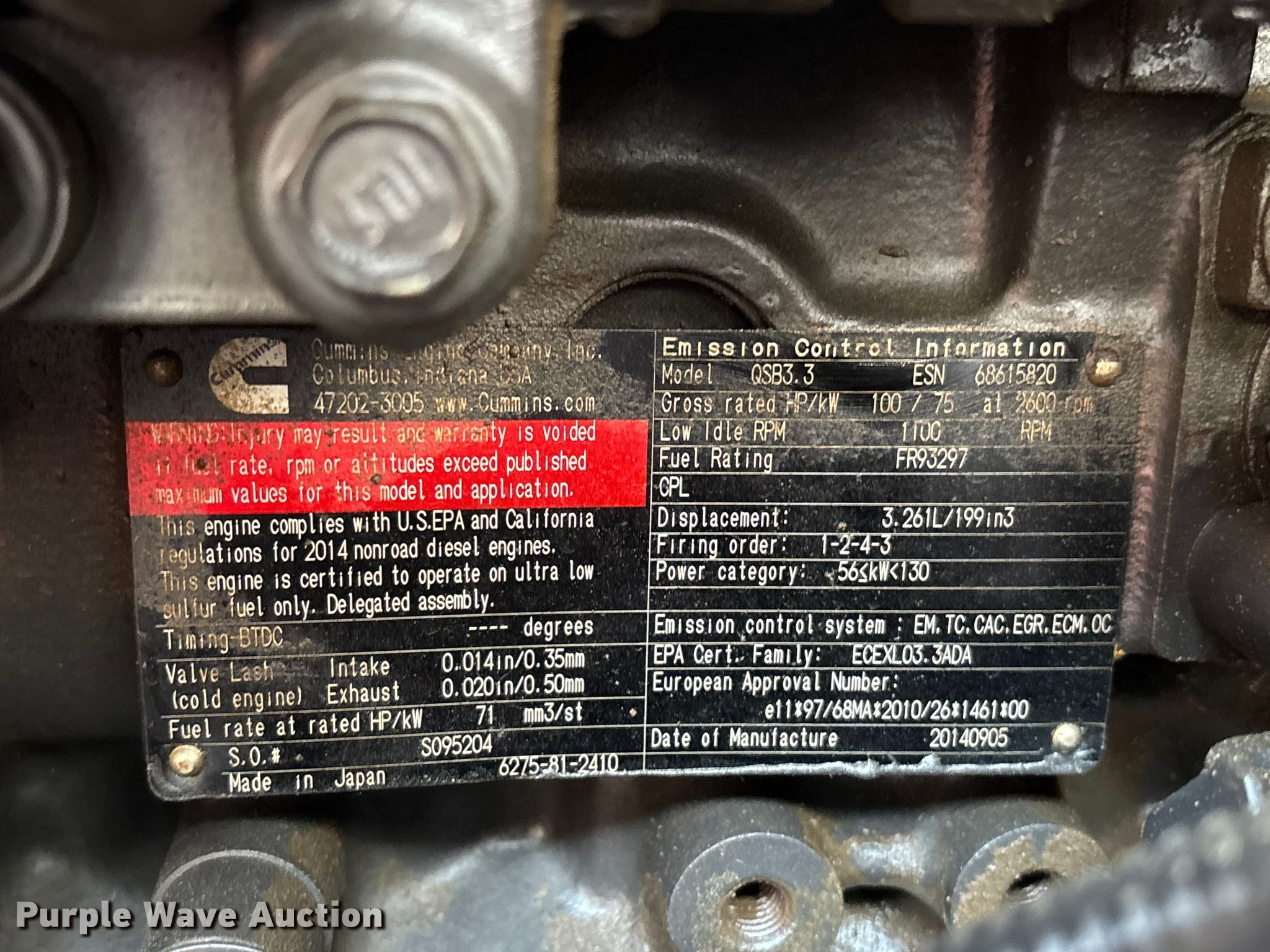 2015 JLG 10054 telehandler. Hours: 3,947 on meter, Serial: 0160065210, Unit #: TH1055-030. Engine Cummins QSB3.3, Displacement: 3.26L, Cylinders: 4, Fuel type: Diesel. Transmission Powershift, 4F - 4R. Operators station OROPS, Steering: Crab, Four wheel. Features Maximum lift capacity: 10,000 lbs, Maximum lift height: 54', Boom stages: 5, Fork length: 60", Auxiliary hydraulics, Tilt carriage, Hydraulic outriggers, Hydraulic leveling. Tires Front: 400/75-28, Foam filled, Non-marking. Riverside, CA 92501