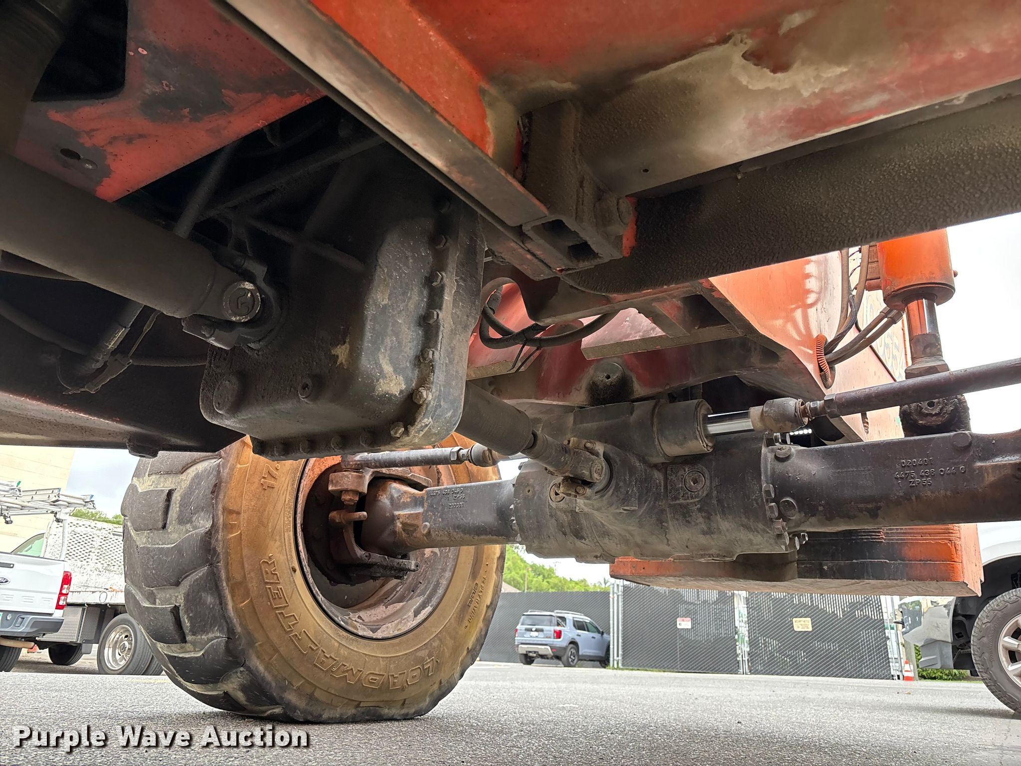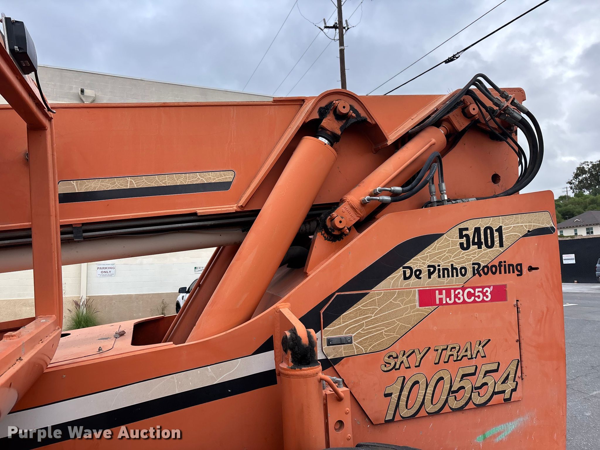 2002 Skytrak 10054 telehandler. Hours: 4,918 on meter, Serial: 15966. Engine Cummins 4B, Serial: 60132335, Displacement: 3.9L, Cylinders: 4, Fuel type: Diesel, HP: 116. Transmission Powershift, 4F - 4R. Operators station Steering: Crab, Four wheel. Features Maximum lift capacity: 10,000 lbs, Maximum lift height: 54', Boom stages: 4, Fork length: 60", Hydraulic outriggers, Hydraulic leveling. Tires Size: 17.5-25, Foam filled. Notes Boom issues, chain disconnected , Unknown operating condition of boom. Zeh, Inc.. Orange, CA 92865