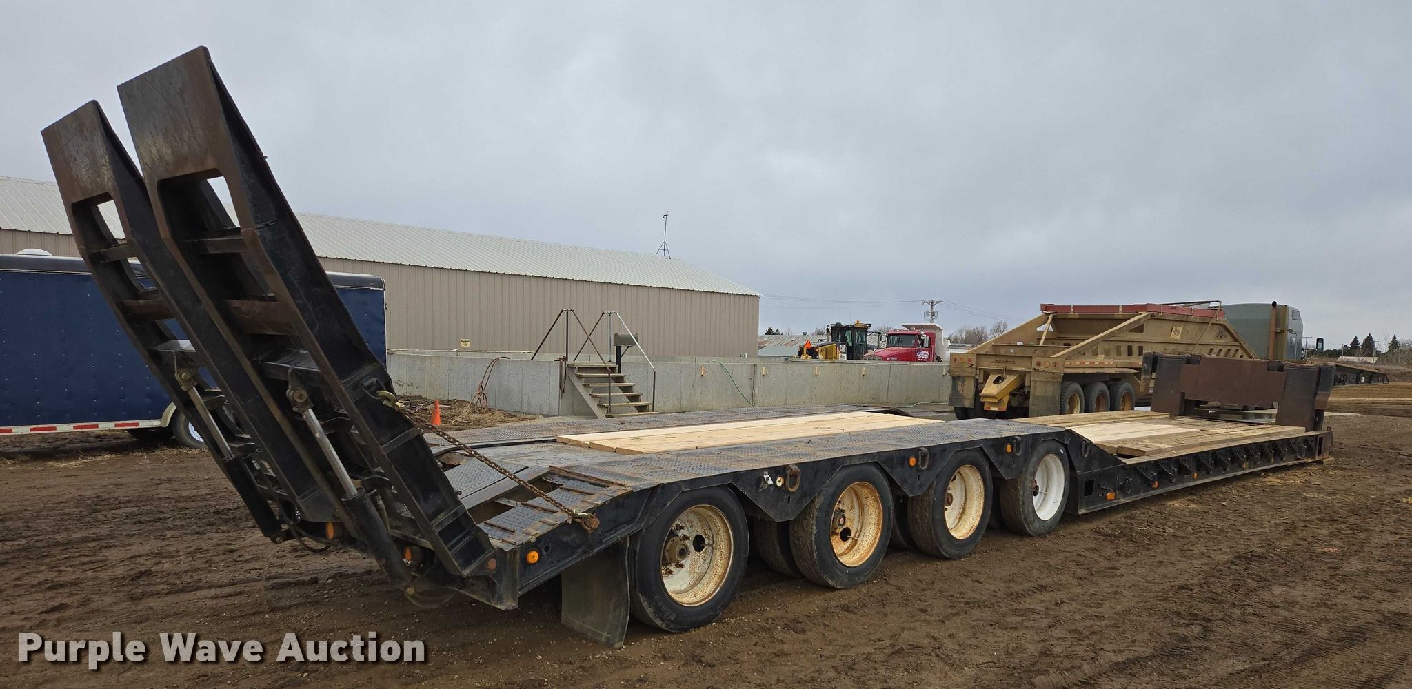 2000 Entyre HFR50TD4-T1 lowboy equipment trailer. VIN: 1E92728301E111211. Dimensions Overall Length: 63' 3", Width: 108", Deck Length: 23', Width: 108", Top deck length: 11' 4", Rear deck length: 16' 10", Tail length: 32", Ramps: Hydraulic Length: 7' 9". Features Deck type: Steel, Wood, Outriggers: Swing-out, Neck type: Folding, Hydraulic controls: Manual. Chassis Suspension: Air, Brakes: Air, Axles: Quad, GVWR: 131,440 lbs. Tires Steel wheels, Size: 255/70R22.5. North Dakota title. Title distribution may be delayed up to 30 days from verification of funds. Liberty Dirtwork LLC. Elgin, ND 58533