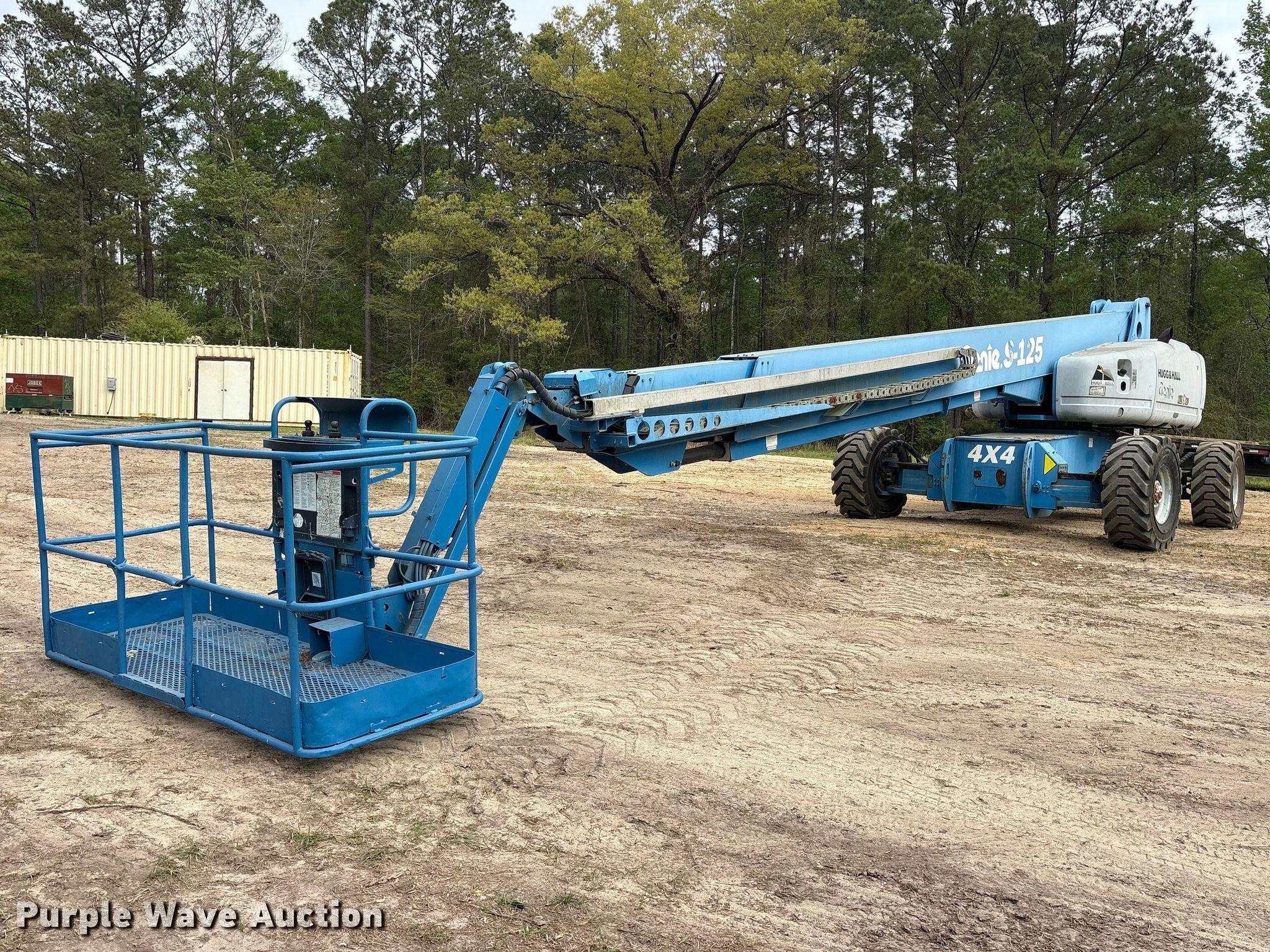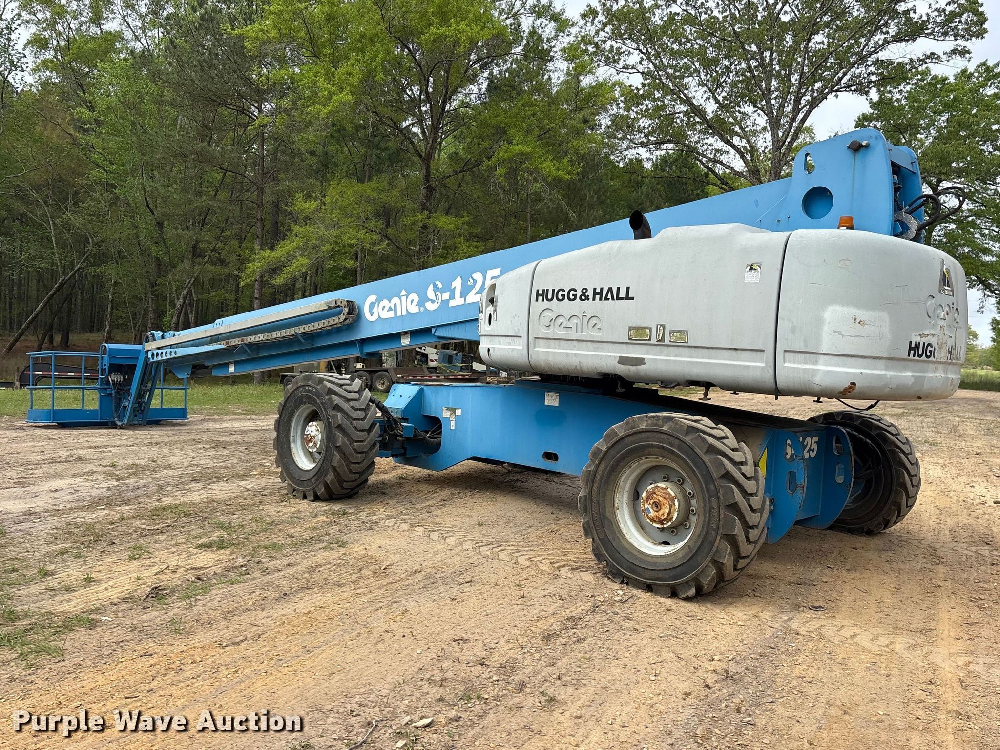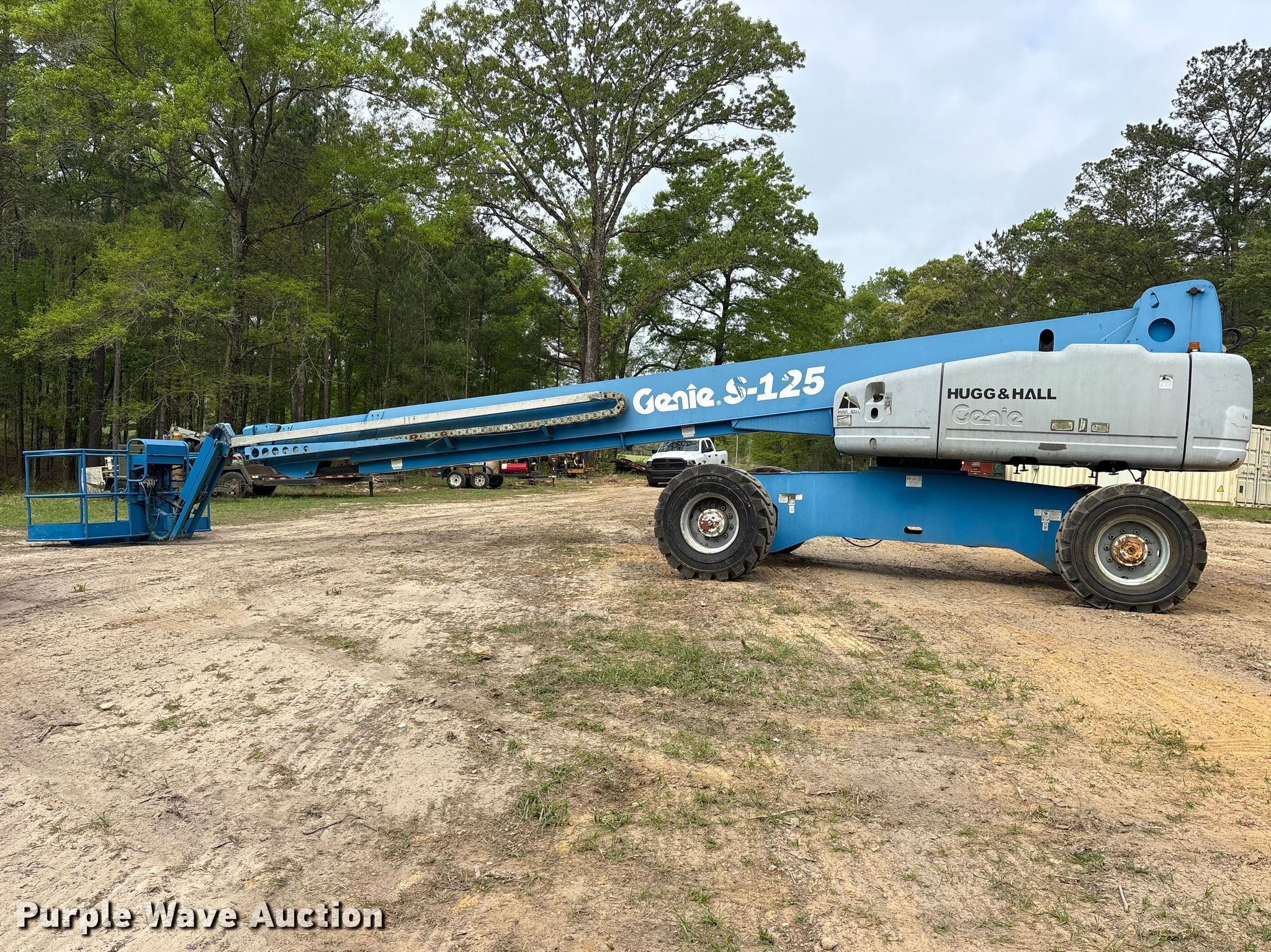 2010 Genie S-125 boom lift. Hours: 5,045 on meter, Miles or hours may vary, unit still in use, Serial: S125SD. Engine Deutz TD2011L04i, Displacement: 3.1L, Cylinders: 4, Fuel type: Diesel. Chassis Four wheel drive, Steering: Crab, Four wheel. Features Rough terrain, Boom type: Telescopic, Maximum lift capacity: 500 lbs, Maximum reach length: 125', Maximum lift height: 125', Platform: 96" L x 36" W, AC power outlet, Controls: Platform, Ground, Platform extensions: Powered. Tires Tire size: IN445/65D22.5. Deep South Machine Works. Richton, MS 39476