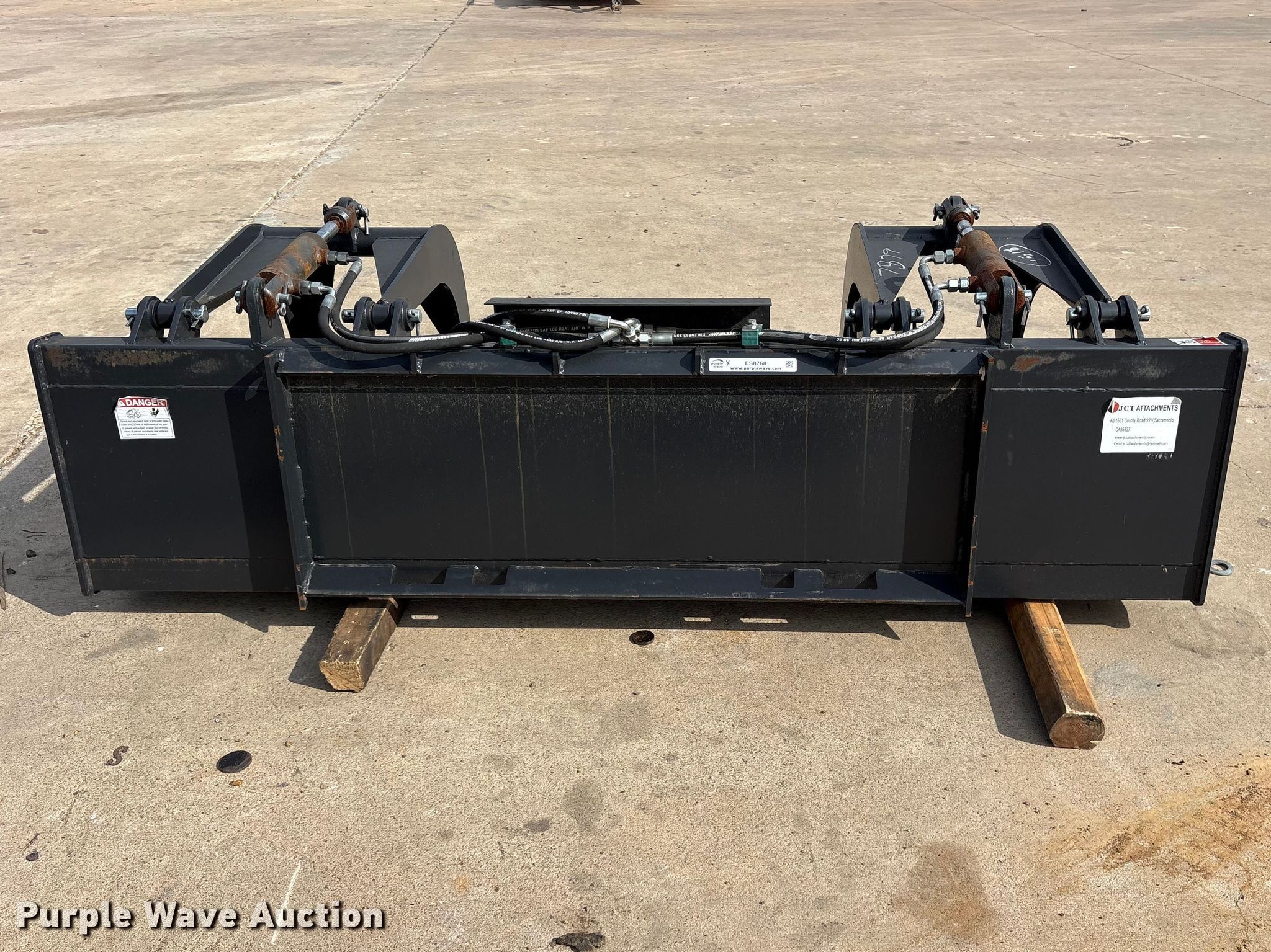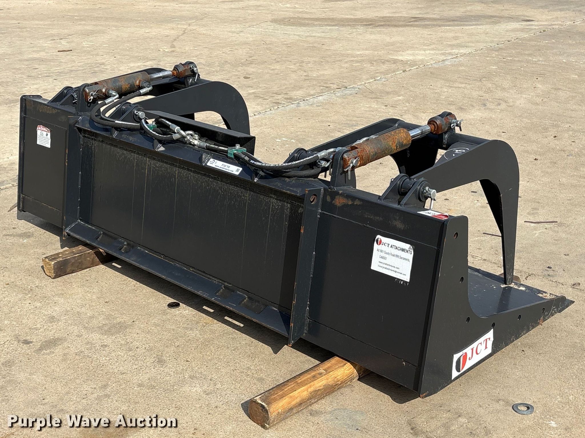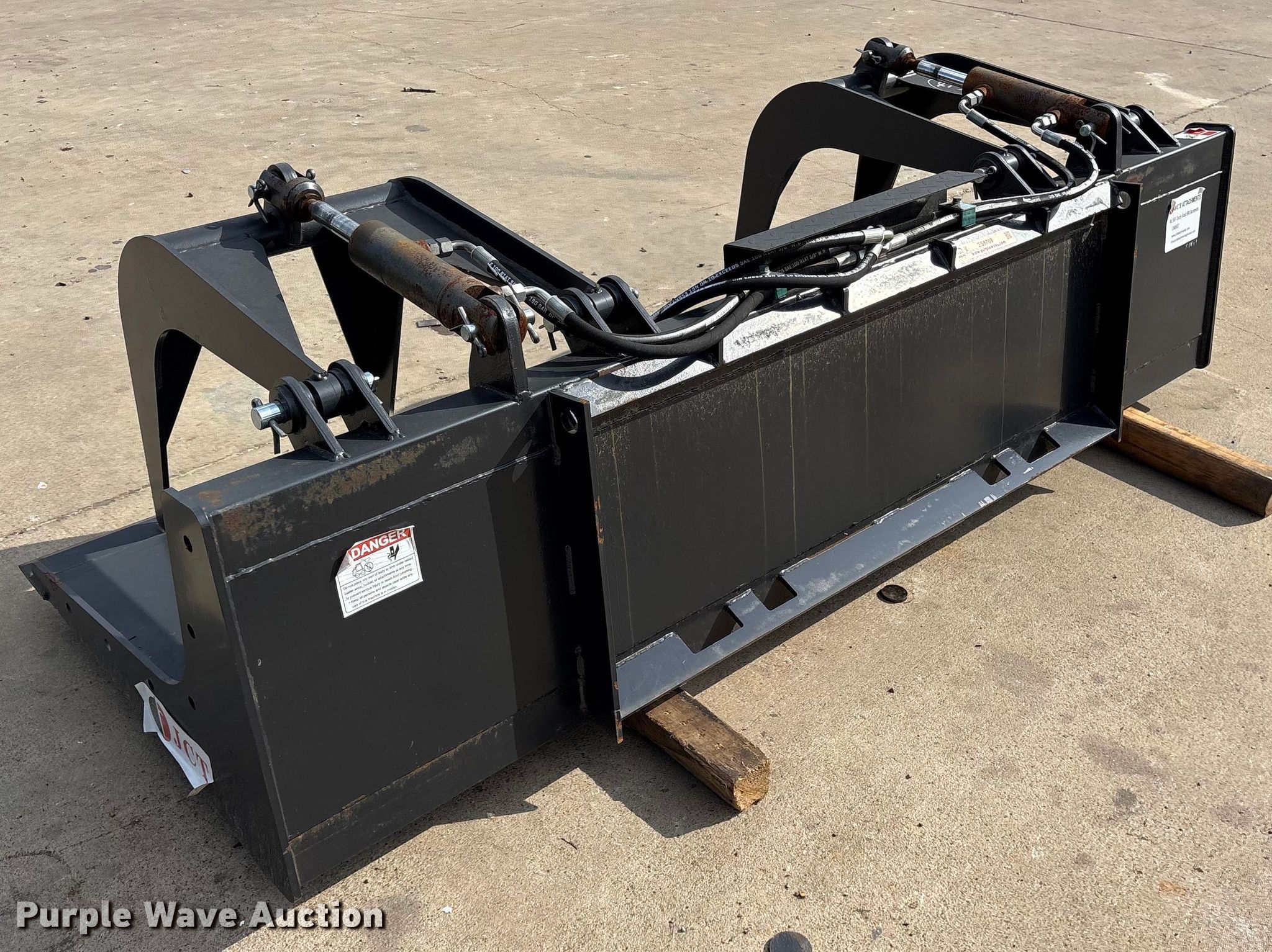 Purple Wave is selling a used Skid Steer Attach. in Texas. This item is a JCT skid steer grapple bucket with the following: Width: 84", Cutting edge: Weld-on