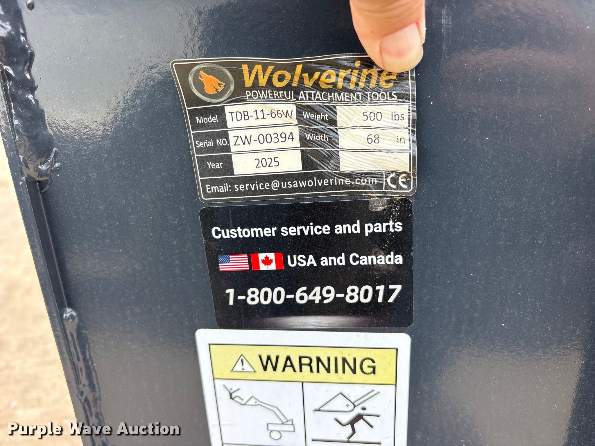 This 2025 Wolverine TDB-11-68W skid steer bucket will sell to the highest bidder regardless of price.
