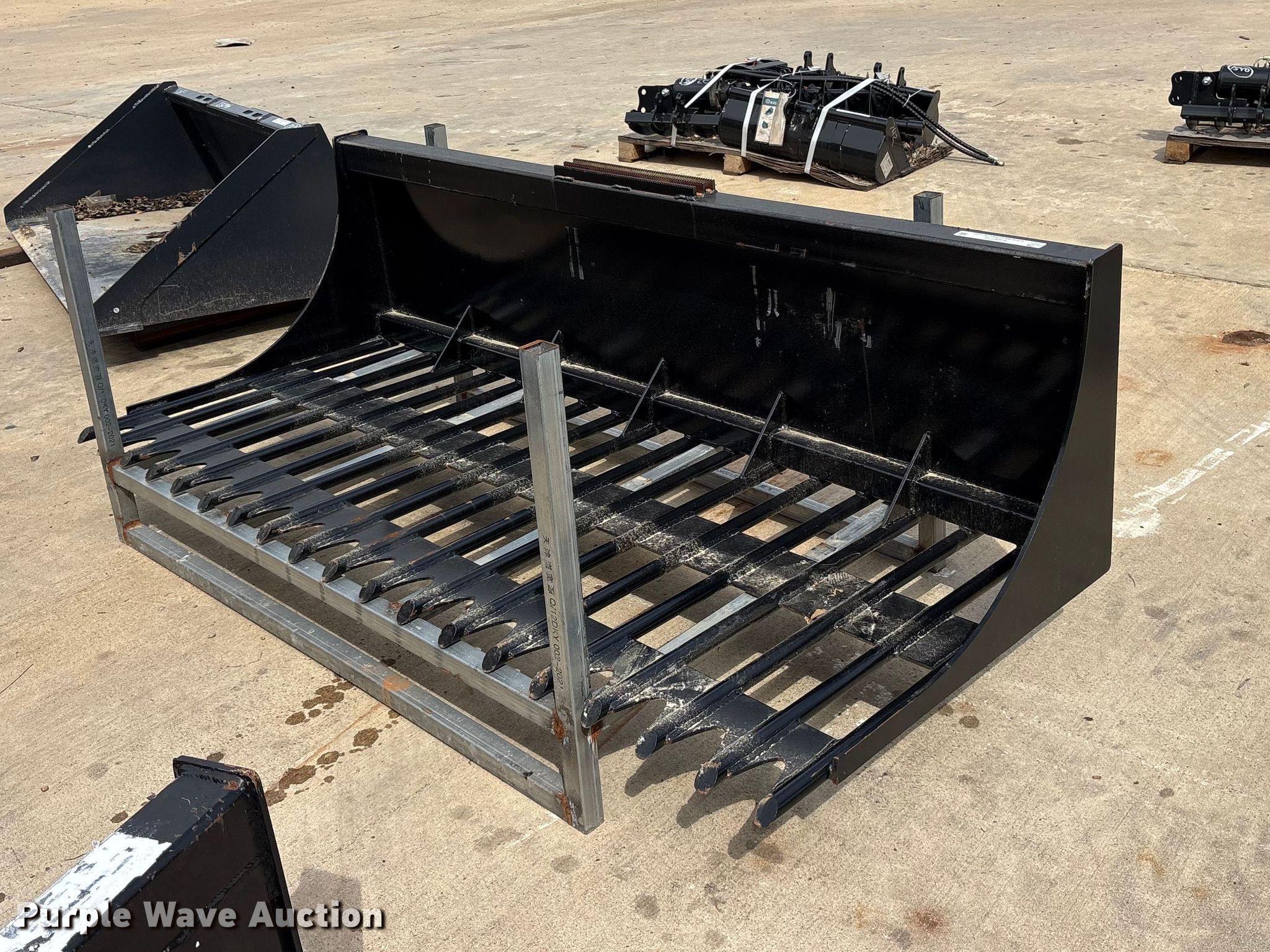 Purple Wave is selling a used Skid Steer Attach. in Texas. This item is a 2025 Skyway skid steer rock bucket with the following: Serial: 2025-01-02-162, Width: 78"