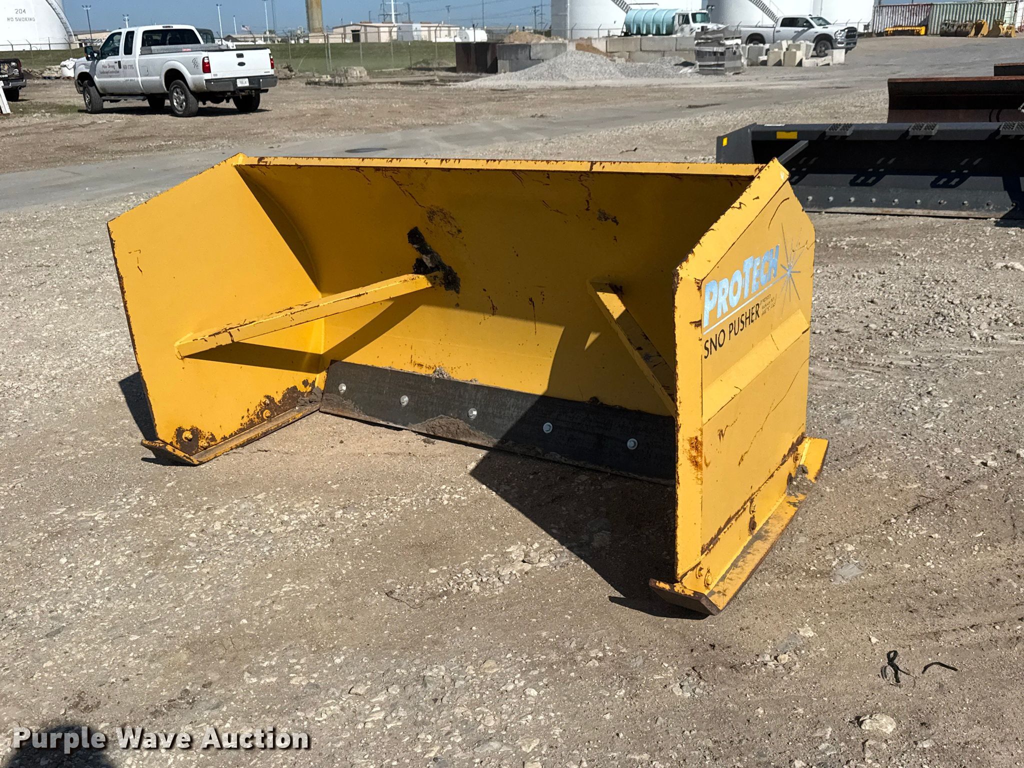 Purple Wave is selling a used Skid Steer Attach. in Kansas. This item is a Pro-Tech Sno Pusher skid steer snow pusher with the following: Serial: 5383, Width: 72"