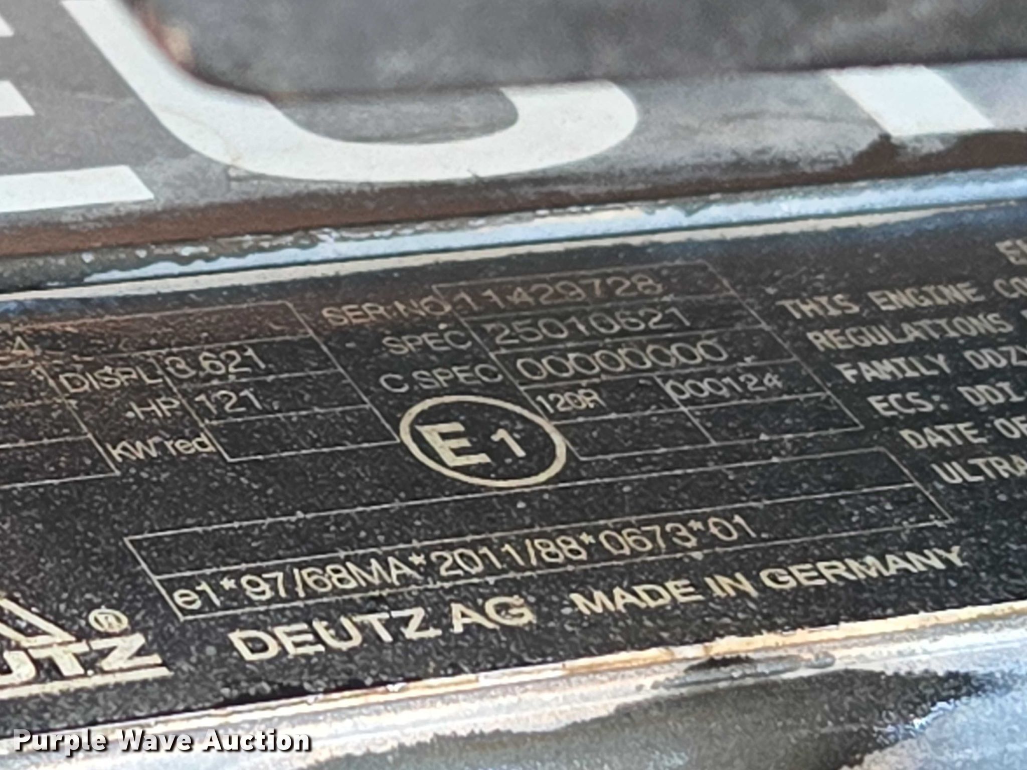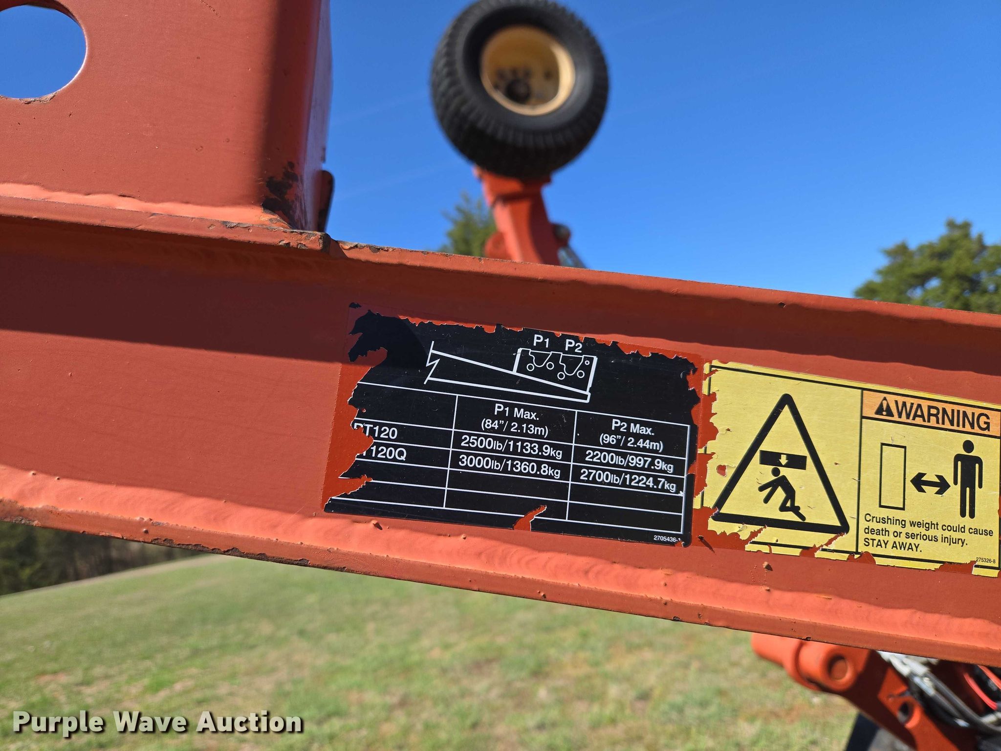 2014 Ditch Witch RT120 QUAD vibratory cable plow. Hours: 2,344 on meter, Serial: CMWR120QEE0000075. Engine Deutz TCD3.6L4, Displacement: 3.621L, Cylinders: 4, Fuel type: Diesel. Transmission Hydrostatic. Chassis Four wheel drive, Differential lock, Four wheel steer, Tilt undercarriage. Operators station OROPS, Canopy. Features Vibratory plow Model: H1032, Serial: CMWH1032PC0000320, Reel carrier Model: RC120, Serial: CMWRC120TE0000078, Maximum reel width: 56", Backfill blade Width: 80". Tracks Width: 17.5", Rubber. Tracy Arms Trenching, LLC. Crescent, OK 73028