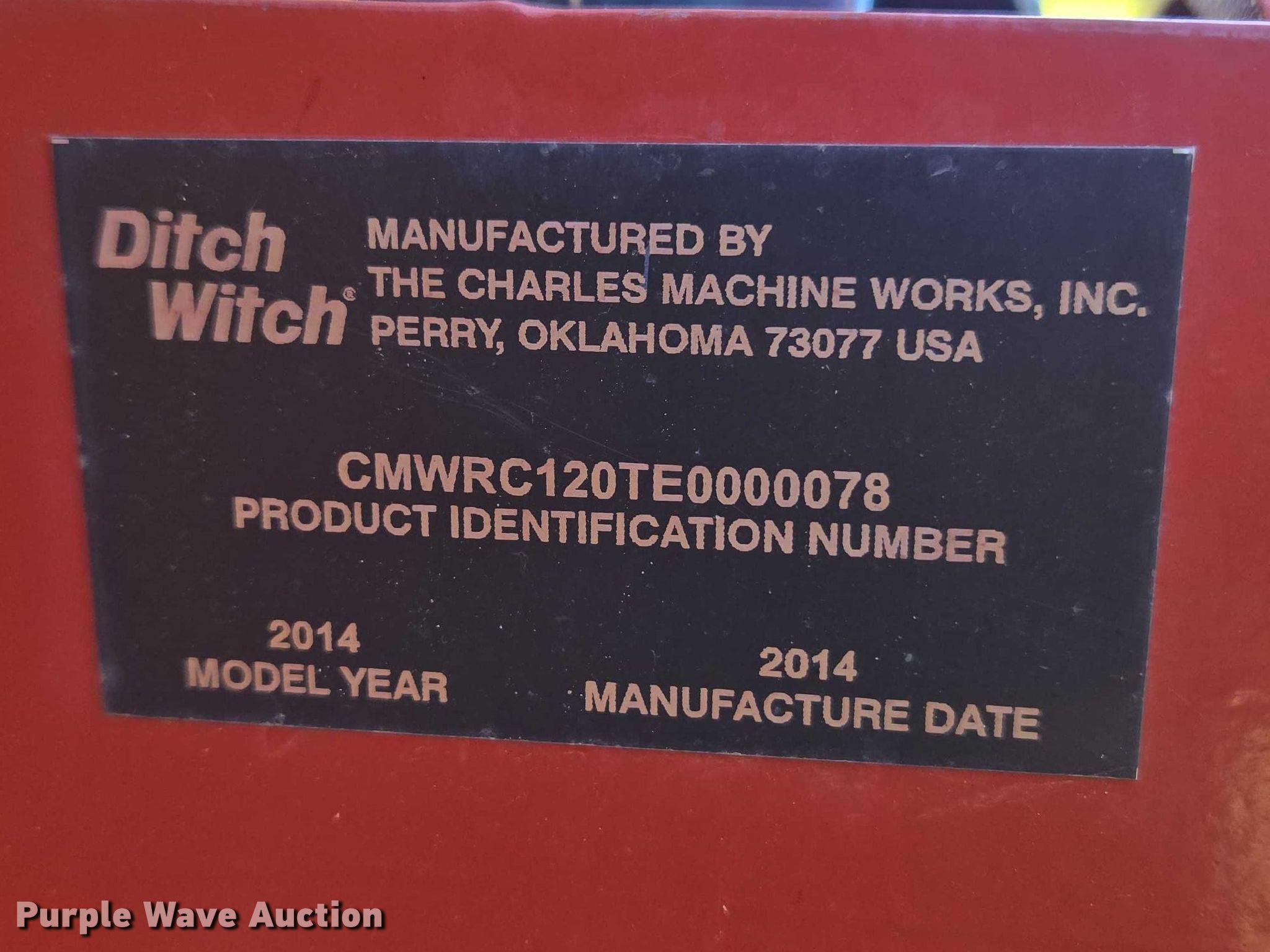 Purple Wave is selling a used Cable Plow in Oklahoma. This item is a 2014 Ditch Witch RT120 QUAD vibratory cable plow with the following: Hours: 2,344 on meter, Serial: CMWR120QEE0000075