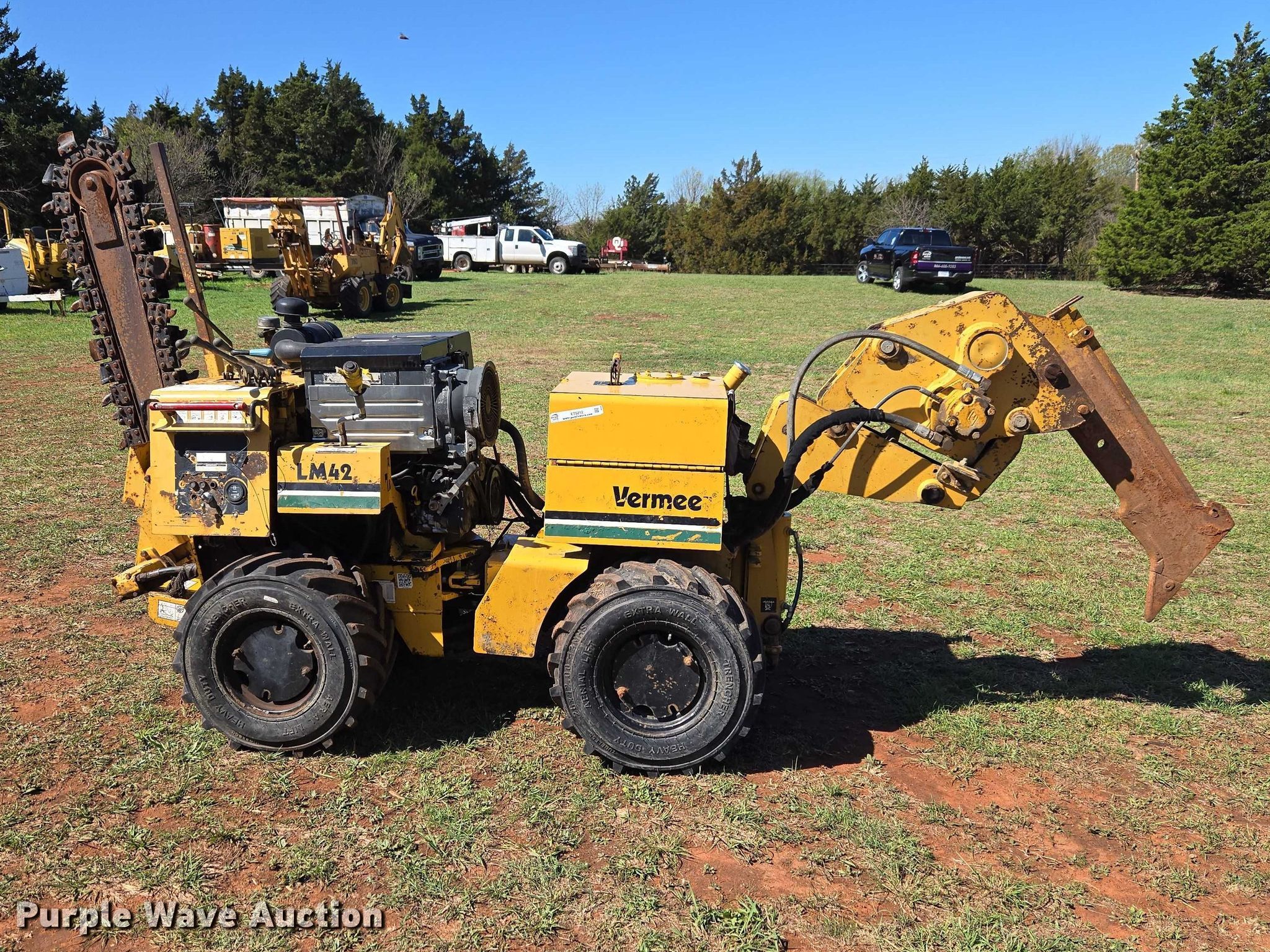 Purple Wave is selling a used Trencher or Rock Saw in Oklahoma. This item is a 1999 Vermeer LM-42 trencher with the following: Hours: 1,786 on meter, Serial: 1VRH030S9X1002551