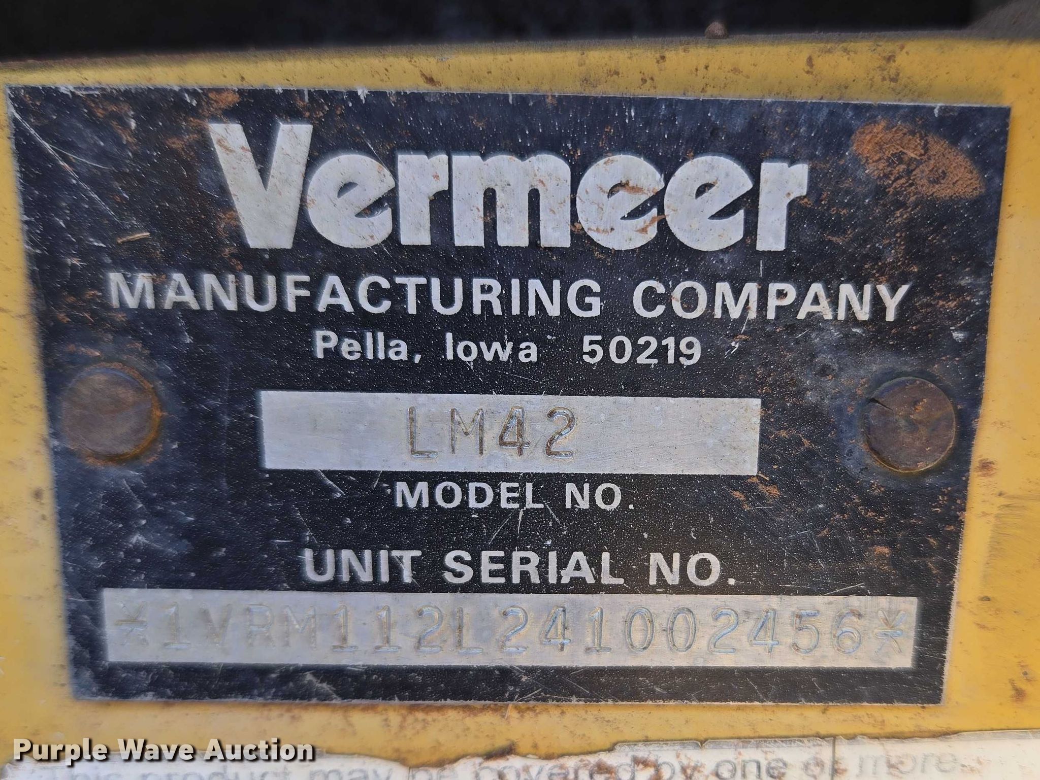 Purple Wave is selling a used Trencher or Rock Saw in Oklahoma. This item is a 2004 Vermeer LM42 trencher with the following: Hours: 1,866 on meter, Serial: 1VRM1121241003456