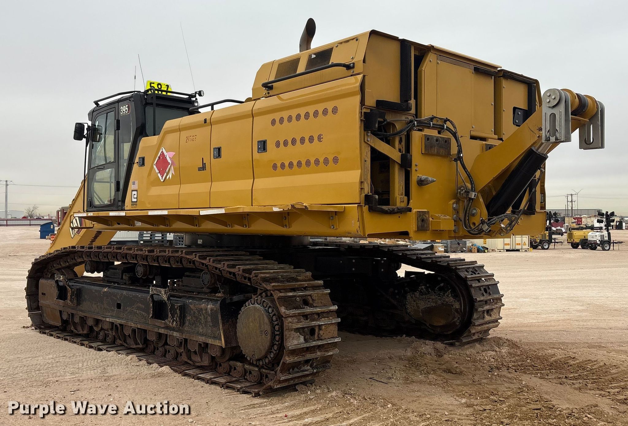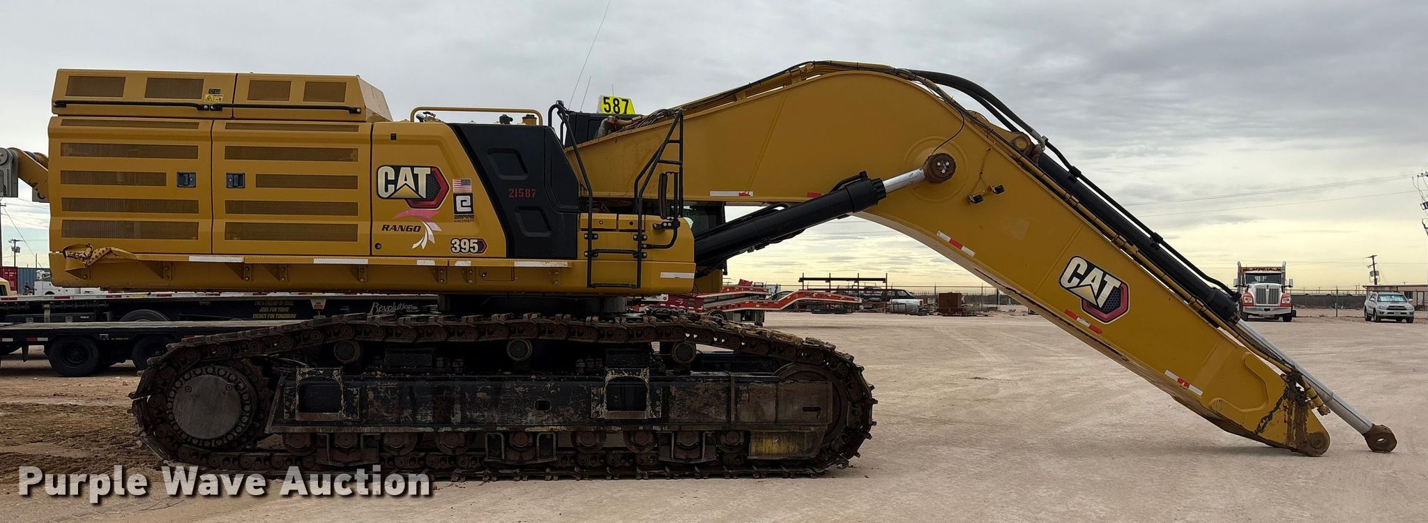Purple Wave is selling a used Hydraulic Excavator in Texas. This item is a 2020 Caterpillar 395 excavator with the following: Hours: 9,679 on meter, Serial: CAT00395PLTK00202, Unit #: 21587
