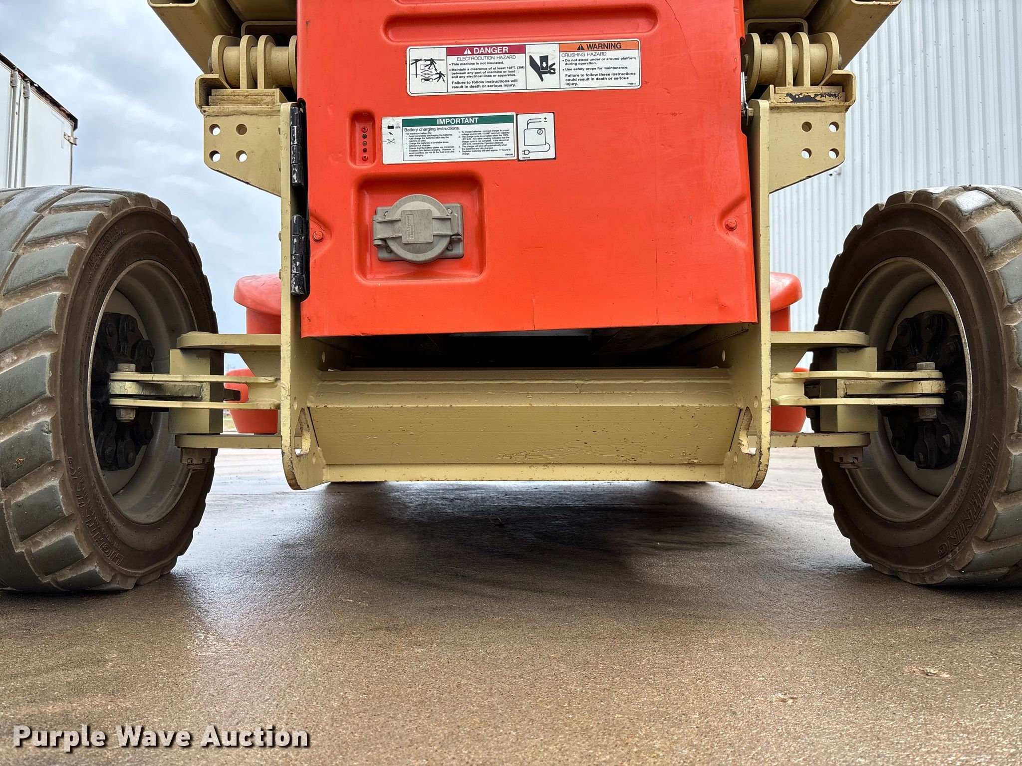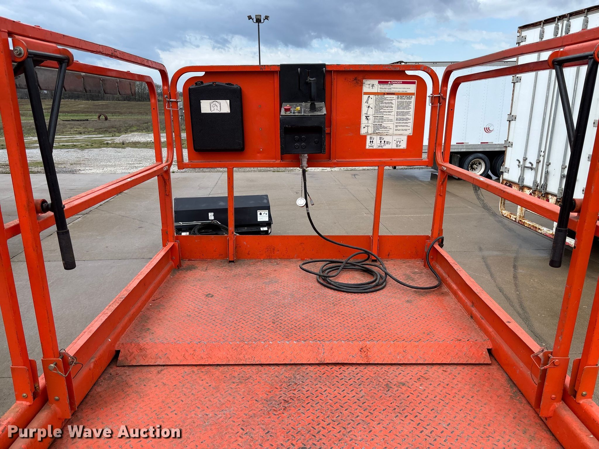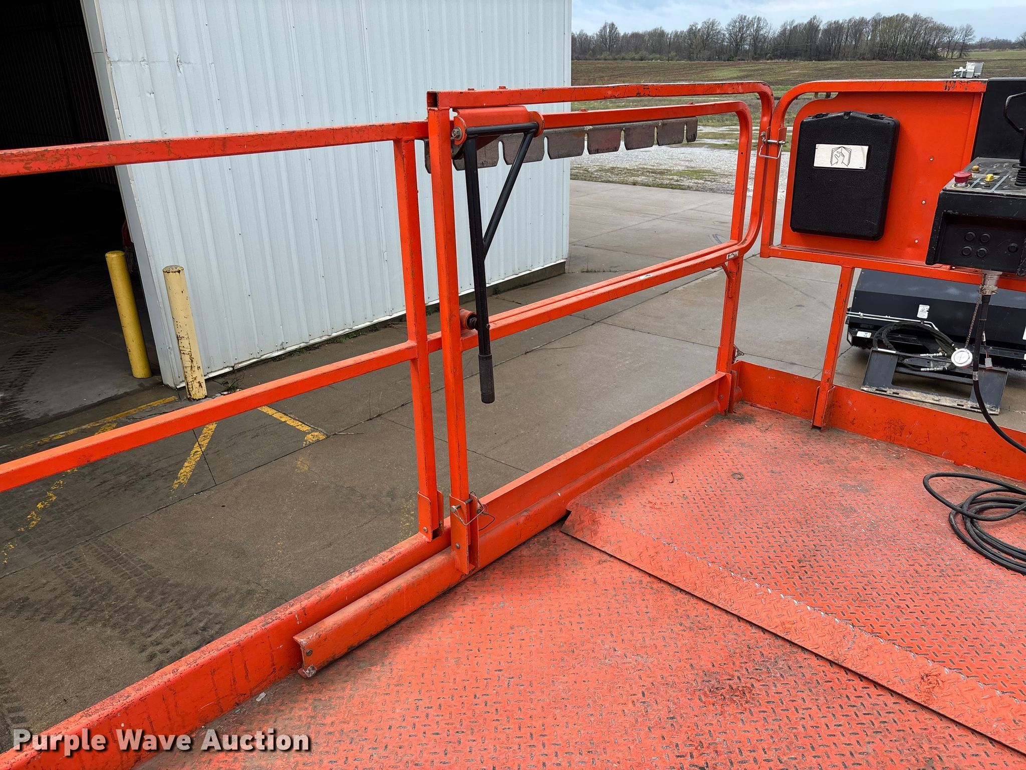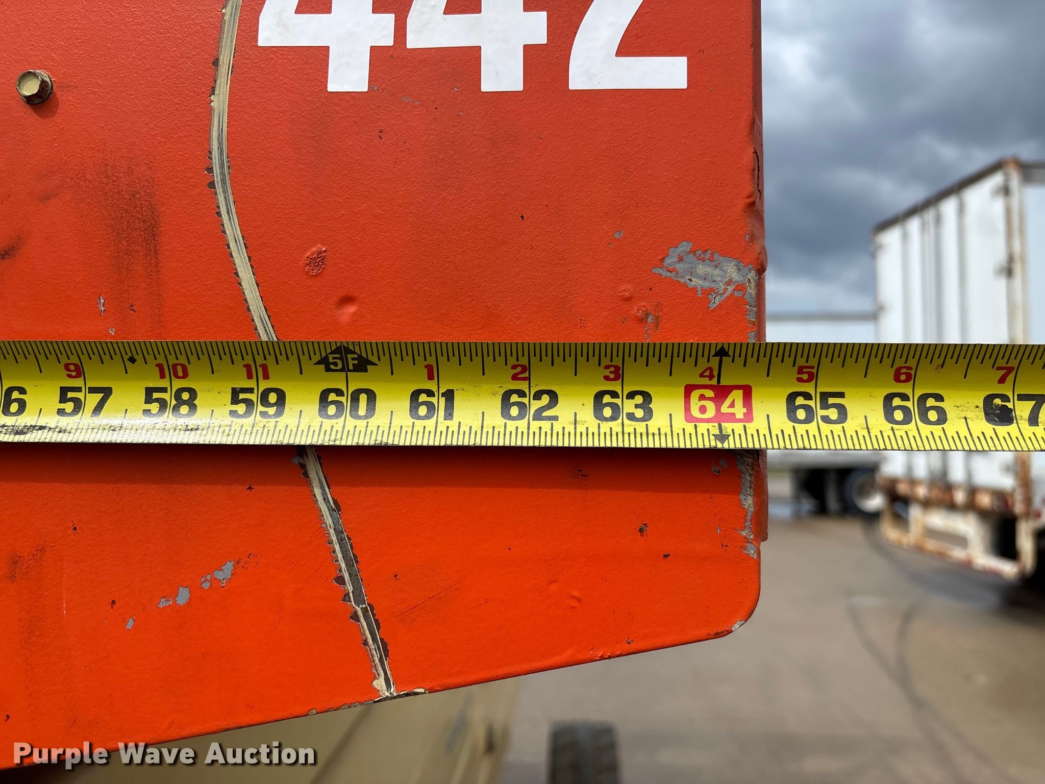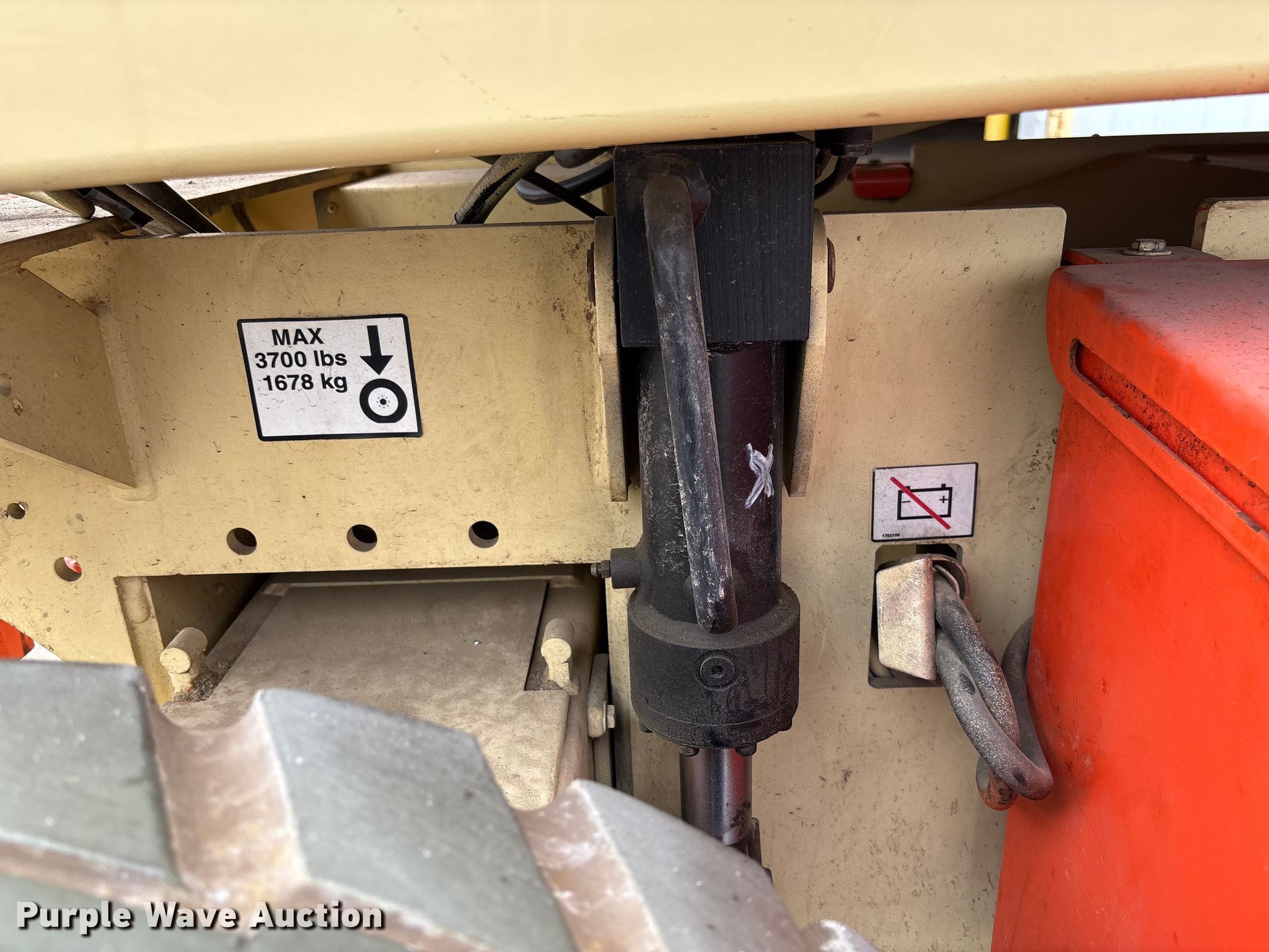 JLG 4069LE scissor lift. Hours: 508 on meter, Serial: 0200189344. Electric Motor Volts: 48. Features Maximum lift capacity: 800 lbs, Maximum lift height: 40', Hydraulic leveling, Platform: 115" L x 64" W, AC power outlet, Controls: Platform, Ground, Platform extensions: Manual. Tires Tire size: 240/55D17.5. Moberly, MO 65270