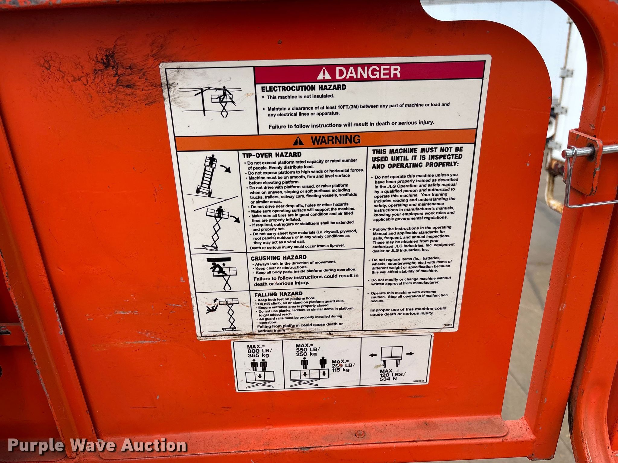 Purple Wave is selling a used Scissor or Vertical Lift in Missouri. This item is a JLG 4069LE scissor lift with the following: Hours: 508 on meter, Serial: 0200189344