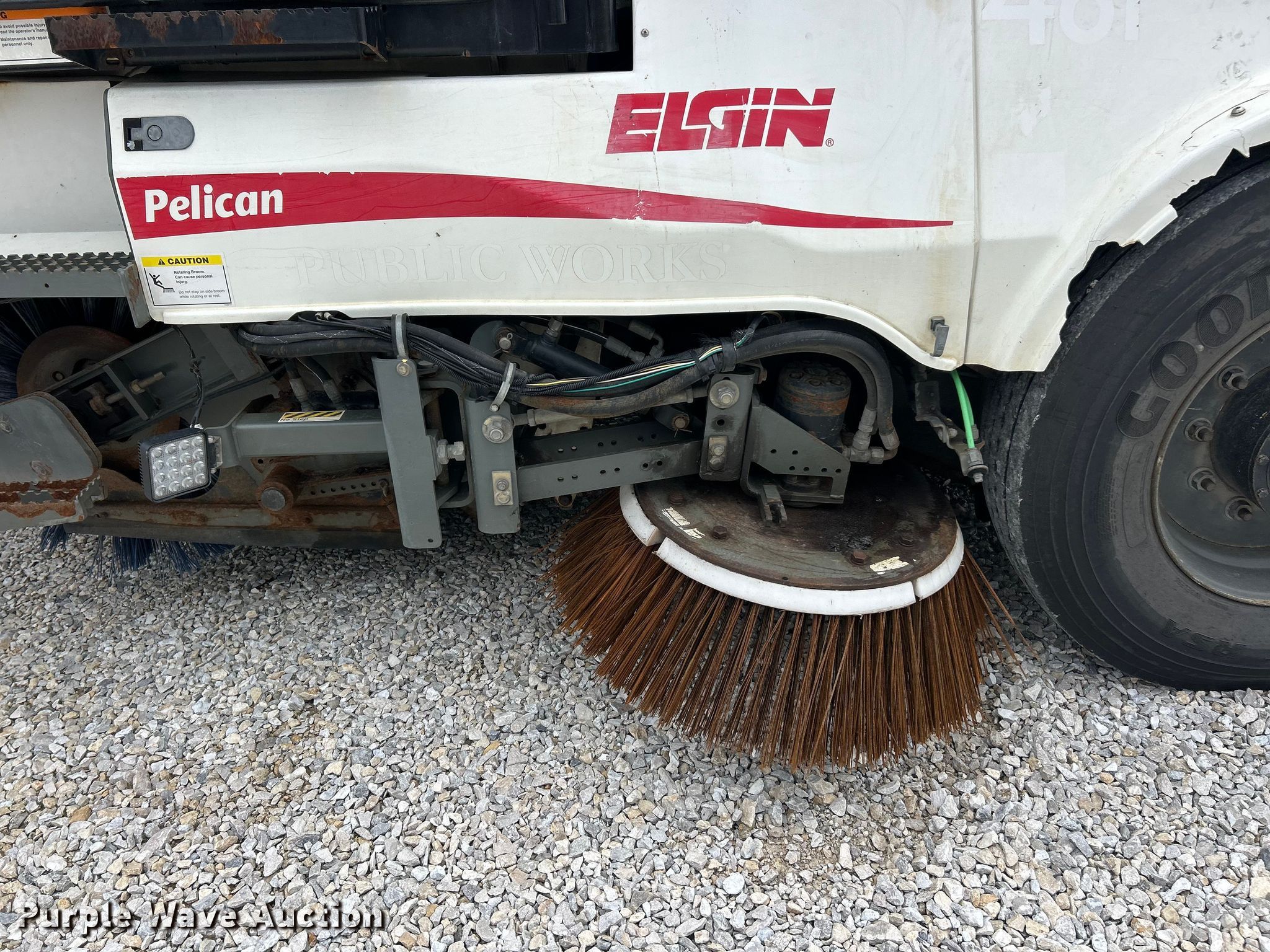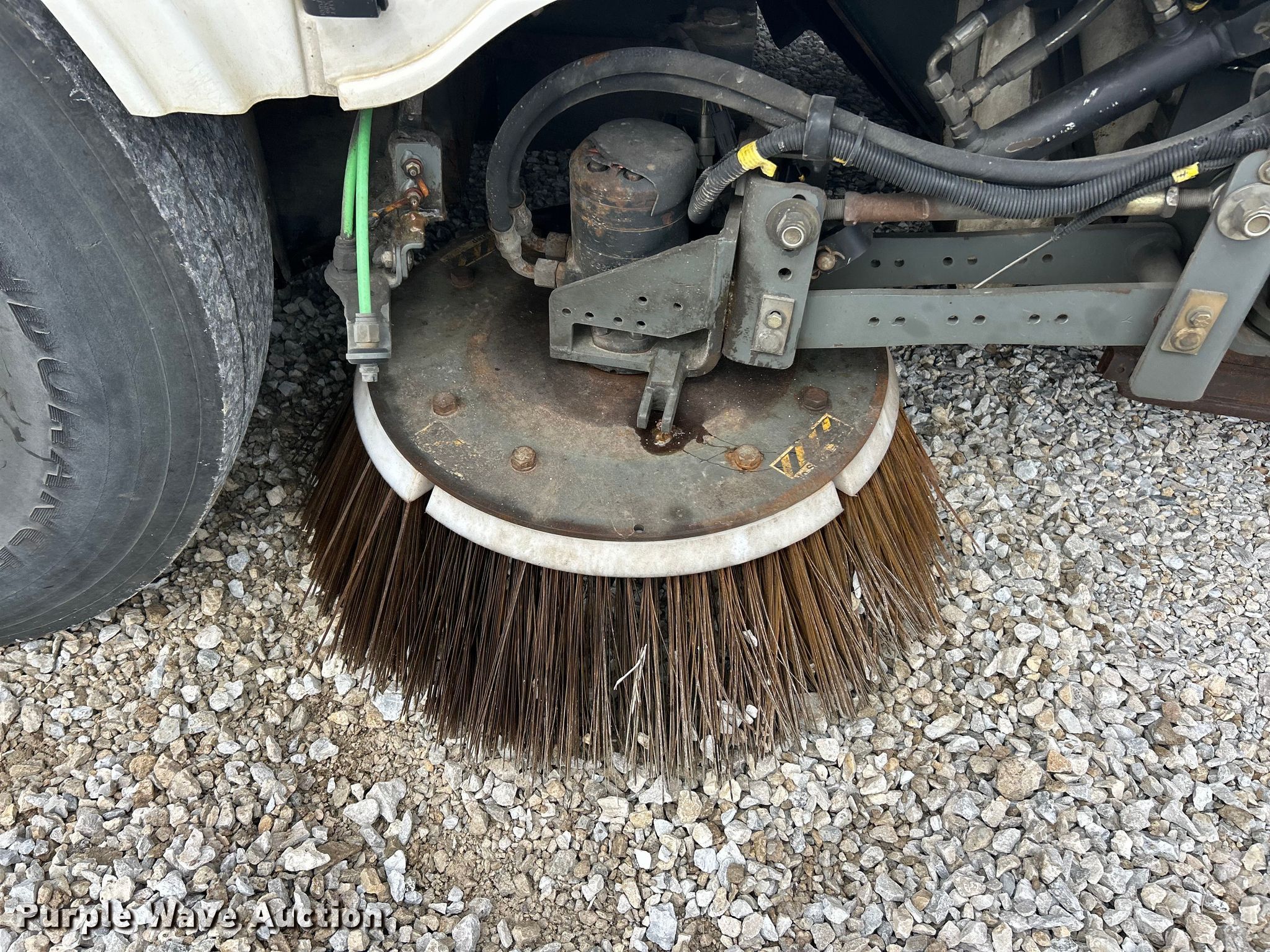 Elgin Pelican NP street sweeper. Miles: 41,756 on odometer, Hours: 9,275 on meter, Serial: NP2382D. Engine John Deere, Displacement: 4.5L, Cylinders: 4, Fuel type: Diesel. Transmission Hydrostatic. Chassis Brakes: Hydraulic. Operators station AC, Heat, Dual operating station, Backup camera. Features Sweeper bed type: Conveyor Broom Width: 72", Left gutter broom Hours: 4,650, Diameter: 24", Right gutter broom Hours: 4,991, Diameter: 24", Water spray system. Tires Front: 11R22.5, Rear: 10R17.5. Notes Left broom cylinder issues, leaks. This is worksite support equipment and will not come with a title. Transfer of ownership documentation will be a bill of sale. Fruendly Auto Source Inc.. Moscow Mills, MO 63362