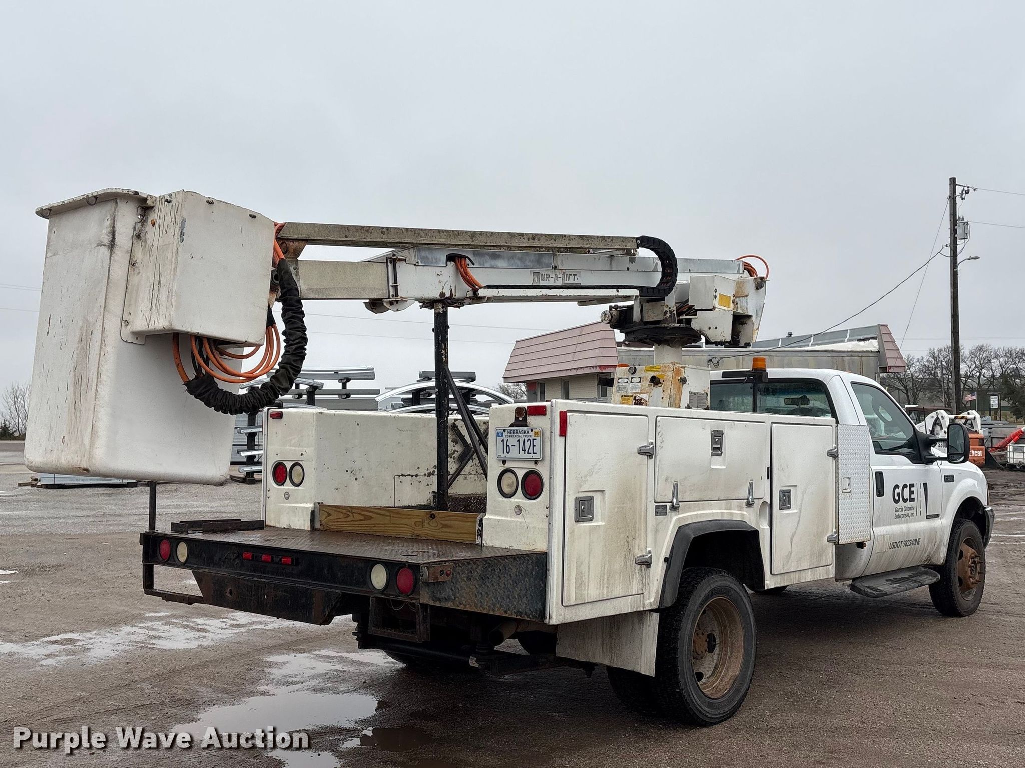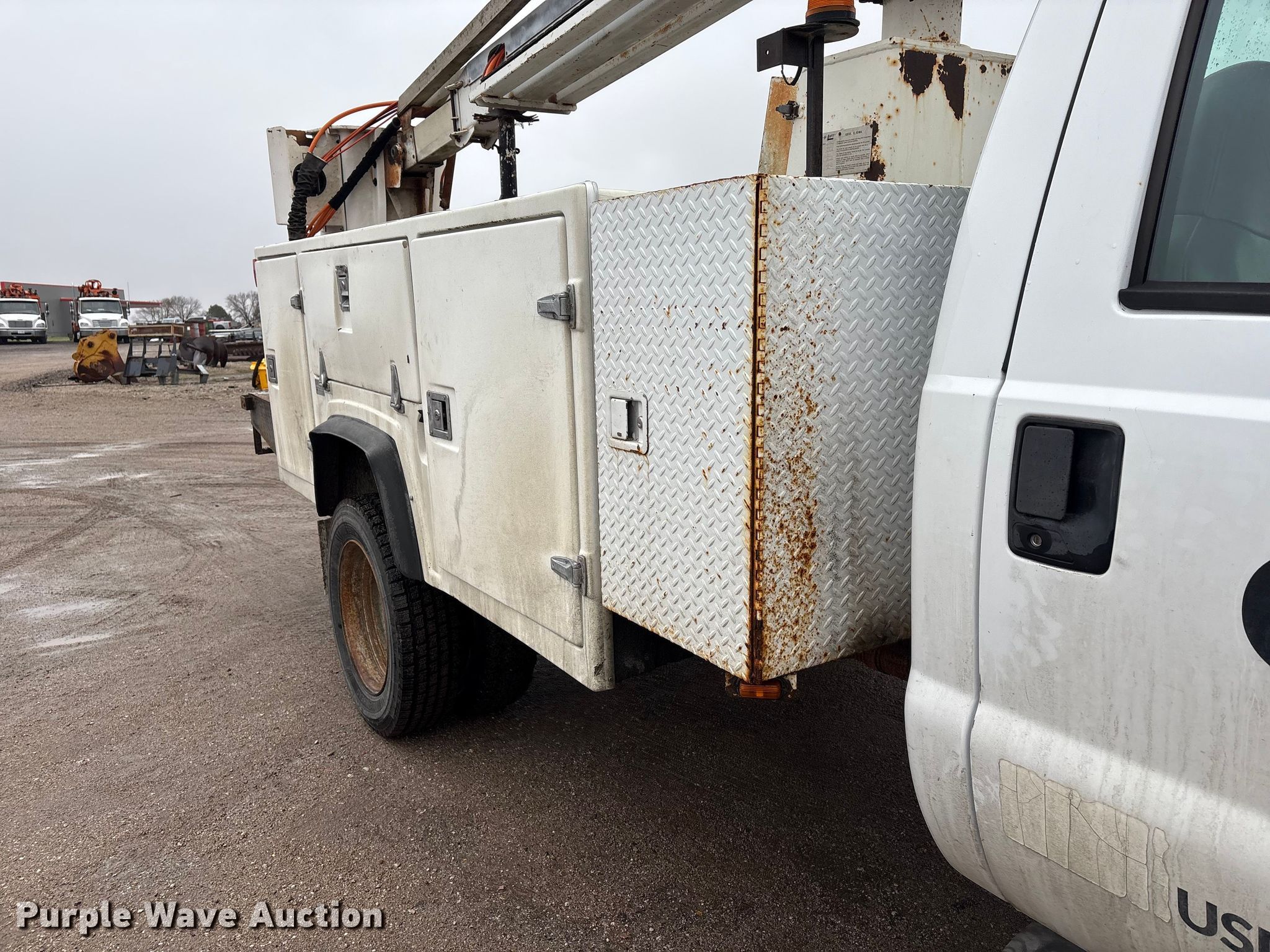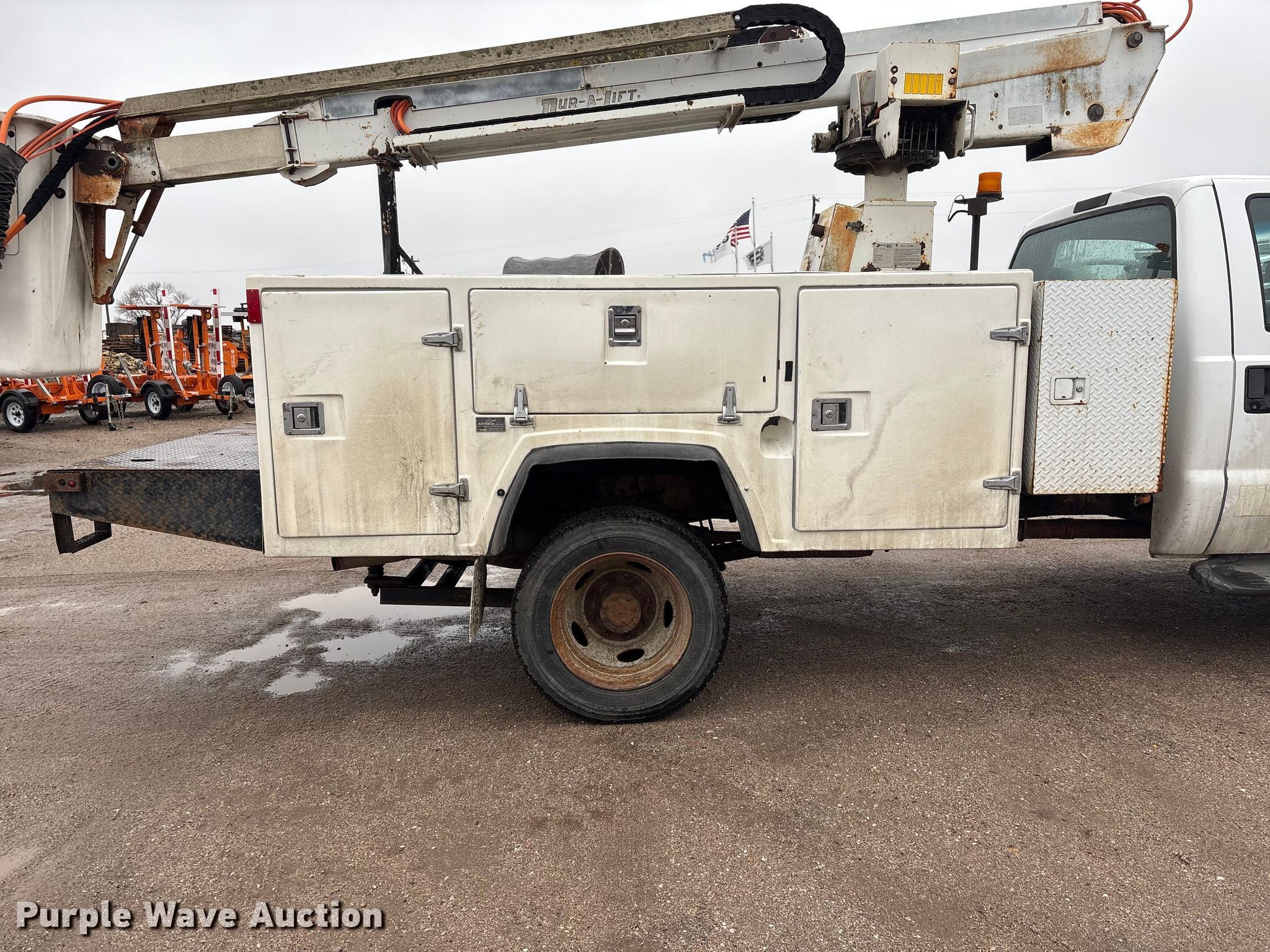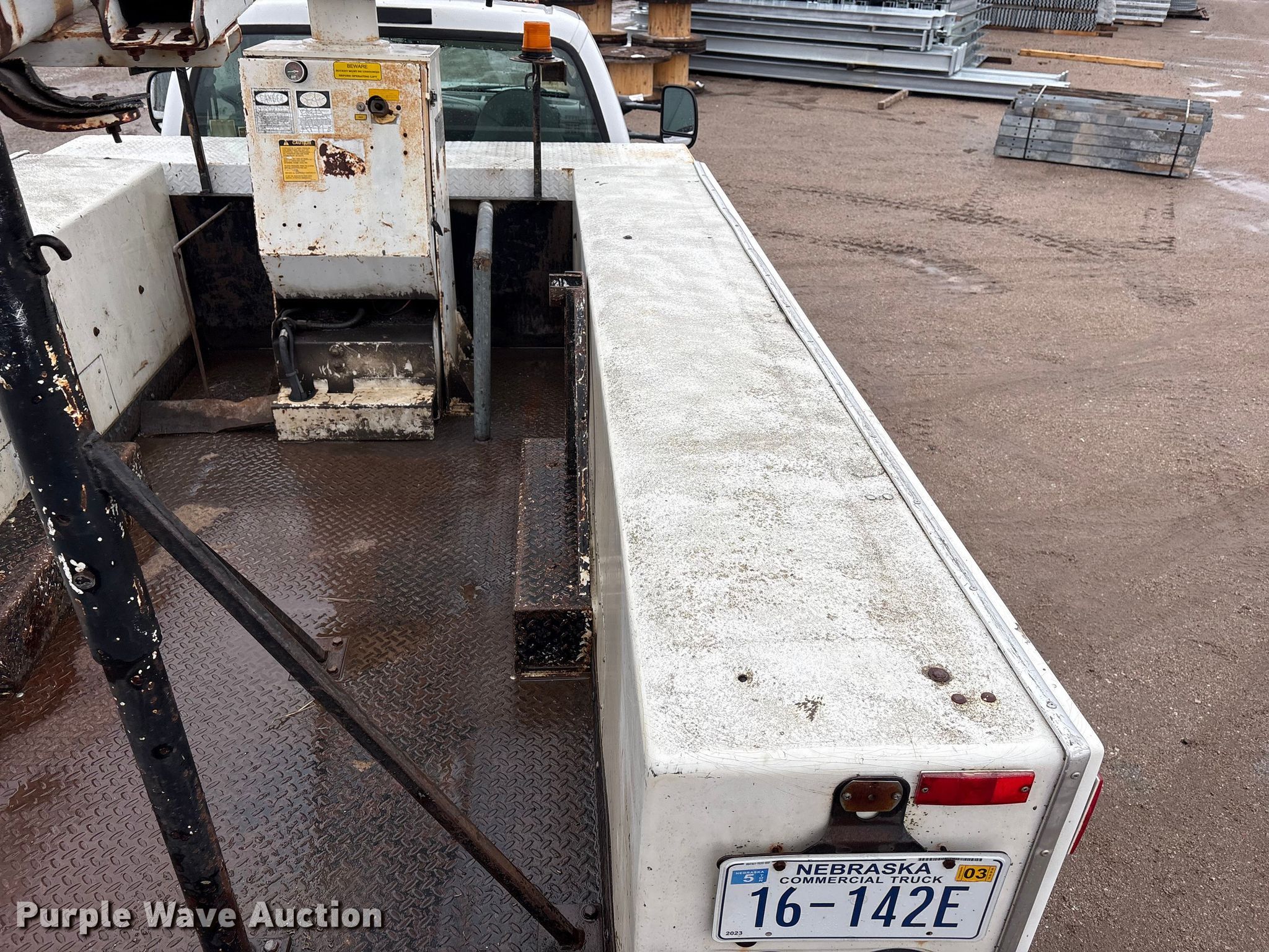 2003 Ford F550 bucket truck. Miles: 141,835 on odometer, VIN: 1FDAF57F43EA66273. Engine Displacement: 7.3L, Cylinders: 8, Fuel type: Diesel. Transmission Automatic. Chassis Four wheel drive, Axles: Single, Suspension: Spring, Brakes: Hydraulic, GVWR: 17,500 lbs, Wheelbase: 165". Interior AC, Heat, Cruise control, Auxiliary controls. Features Bed Utility bed, Astoria, Serial: 22868, Length: 9', Width: 90", Boom DUR-A-LIFT TUF-35, Serial: A2092, Boom length: 21', Mast height: 30', Maximum lift capacity: 300 lbs, Boom type: Articulating, Telescopic, Man basket, Boom controls Lower, Basket.. Tires Size: 225/70R19.5. Nebraska title. Title distribution may be delayed up to 14 days from verification of funds. Garcia-Chicoine Enterprises Inc.. Milford, NE 68405