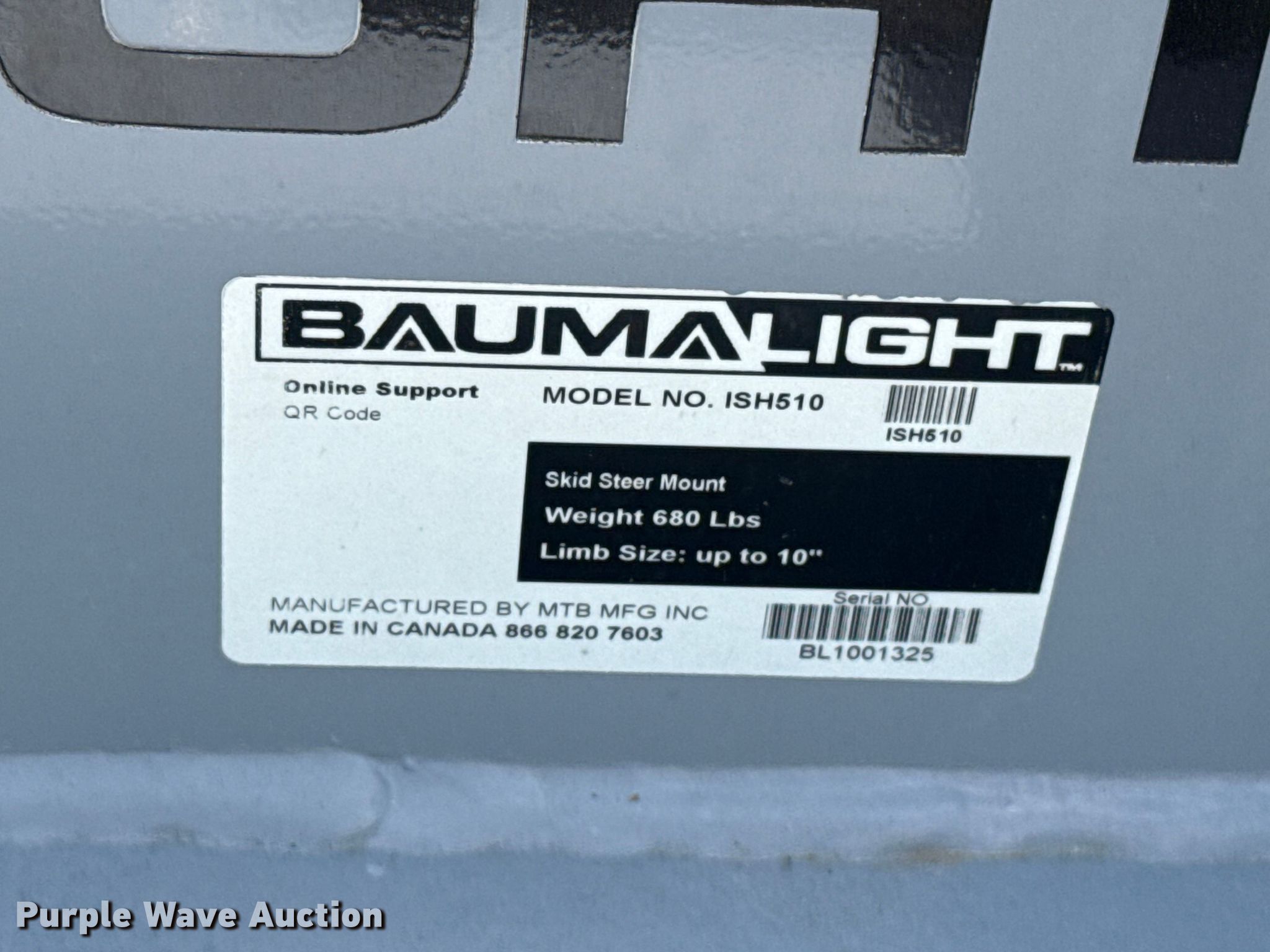 Take a look at this used Bauma Light ISH510 skid steer tree shear being sold on May 7th, 2026 in the Thursday May 07 Construction Equipment Auction made by Bauma Light. Take a look at all of the item information below or take a look at similar auctions for Skid Steer Loaders.
