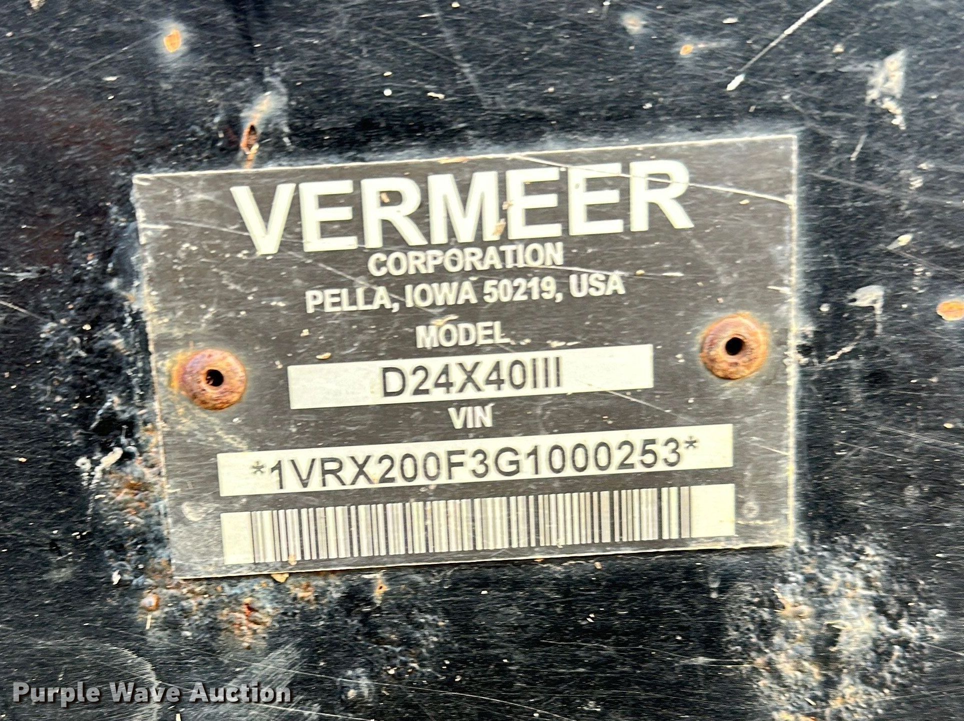 Purple Wave is selling a used Directional Boring Unit in Minnesota. This item is a 2016 Vermeer D24X40III directional boring unit with the following: Hours: 3,892 on meter, Serial: 1VRX200F3G1000253