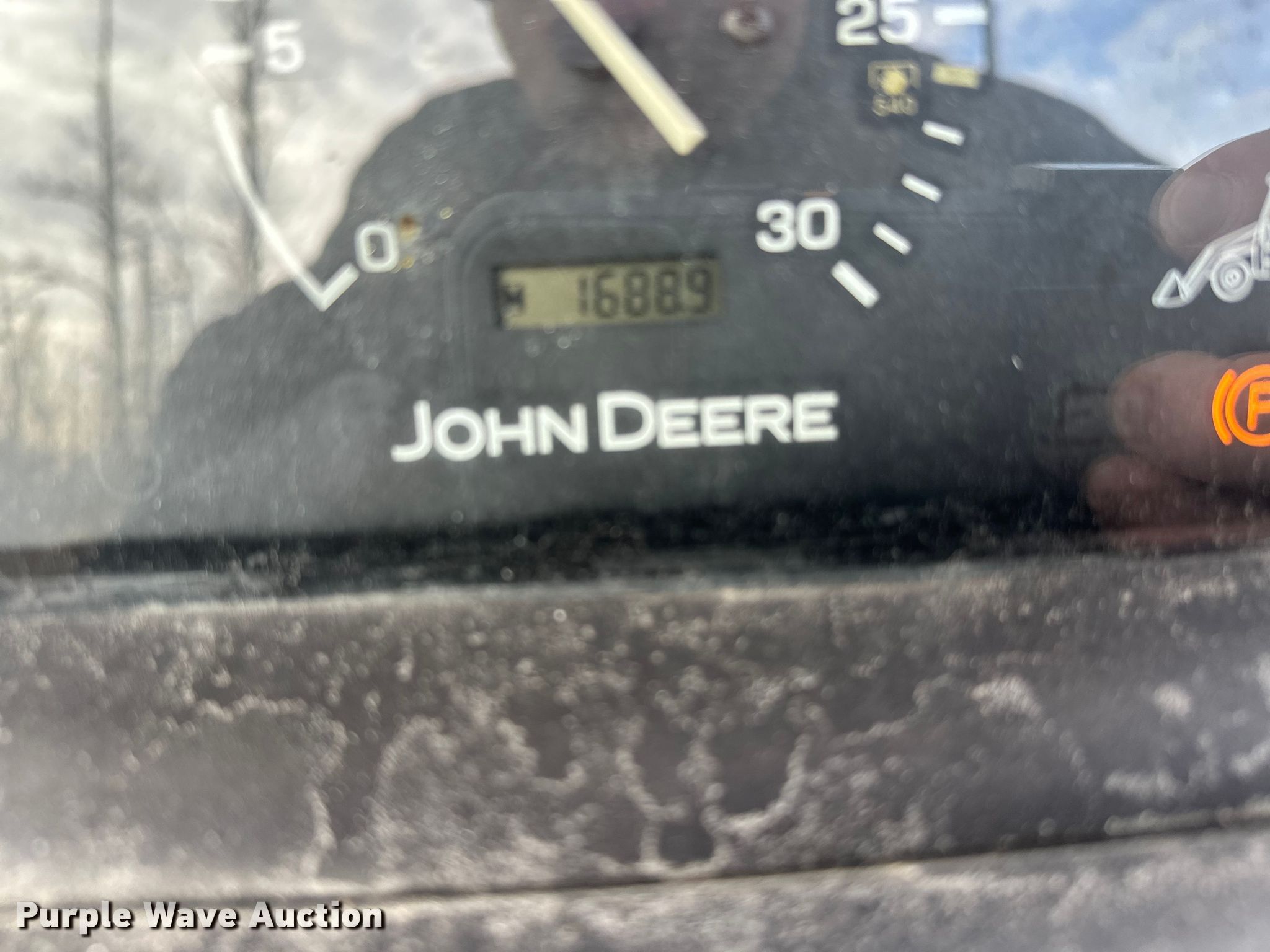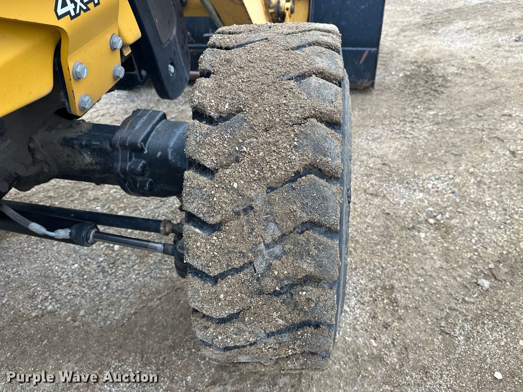 John Deere 110 backhoe. Hours: 1,689 on meter. Engine Cylinders: 4, Fuel type: Diesel. Transmission Hydrostatic. Chassis Four wheel drive. Operators station Backhoe controls: Wobble stick / two stick. Features Loader Quick coupler: Manual, Bucket Width: 71", Cutting edge: Bolt-on, Backhoe Quick coupler: Manual, Width: 18", Teeth: 4. Tires Front: 10-16.5, Rear: 17.5L24. JCS Triage LLC. Shevlin, MN 56676