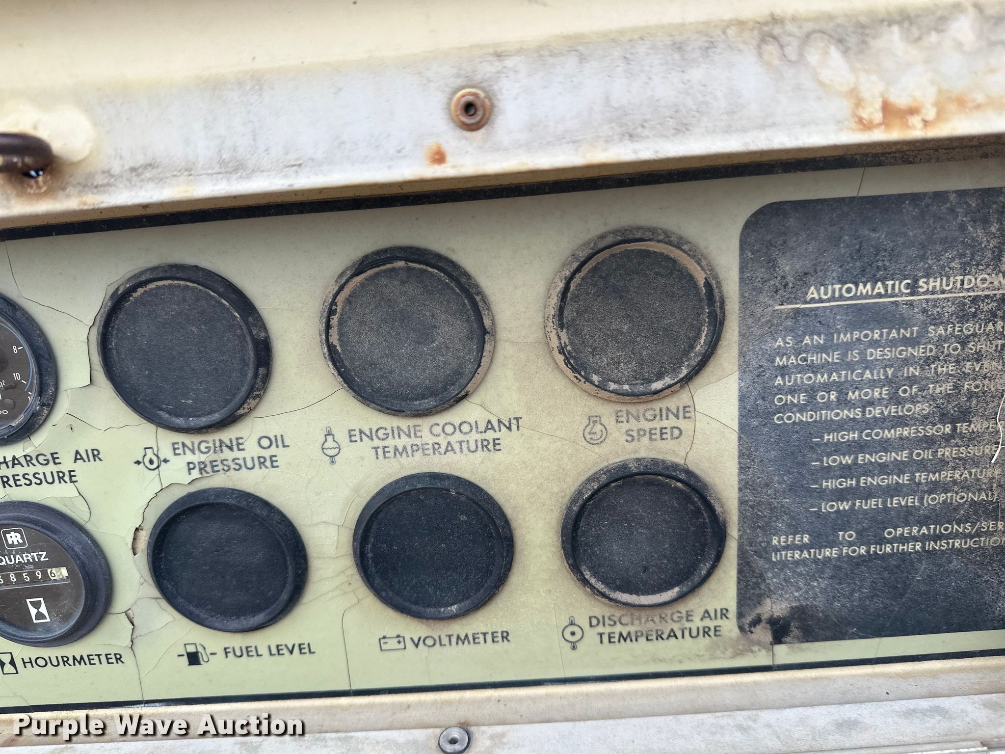 Purple Wave is selling a used Air Compressor in Minnesota. This item is a 1994 Ingersoll Rand 185 air compressor with the following: Hours: 3,860 on meter, Serial: 126852