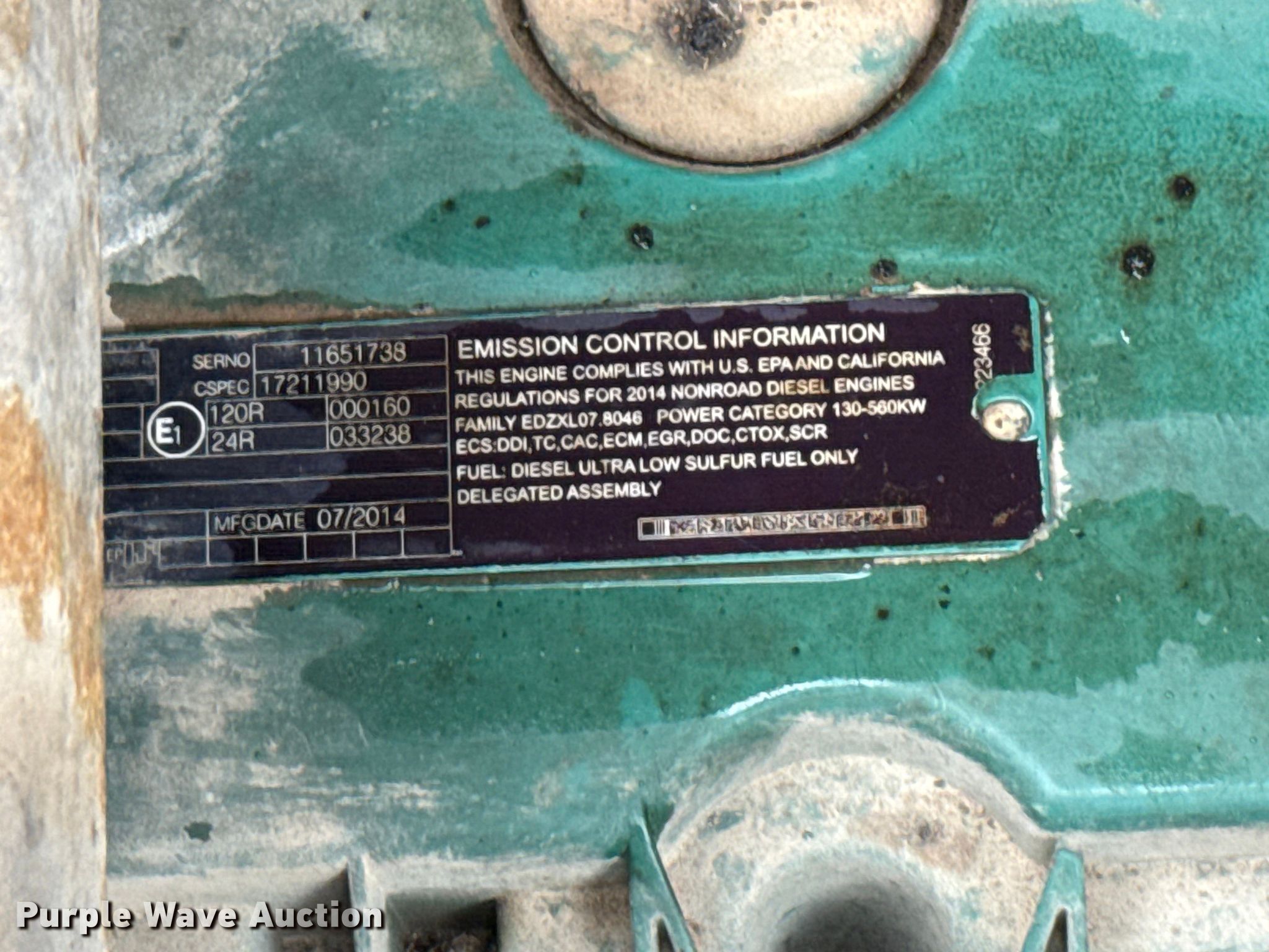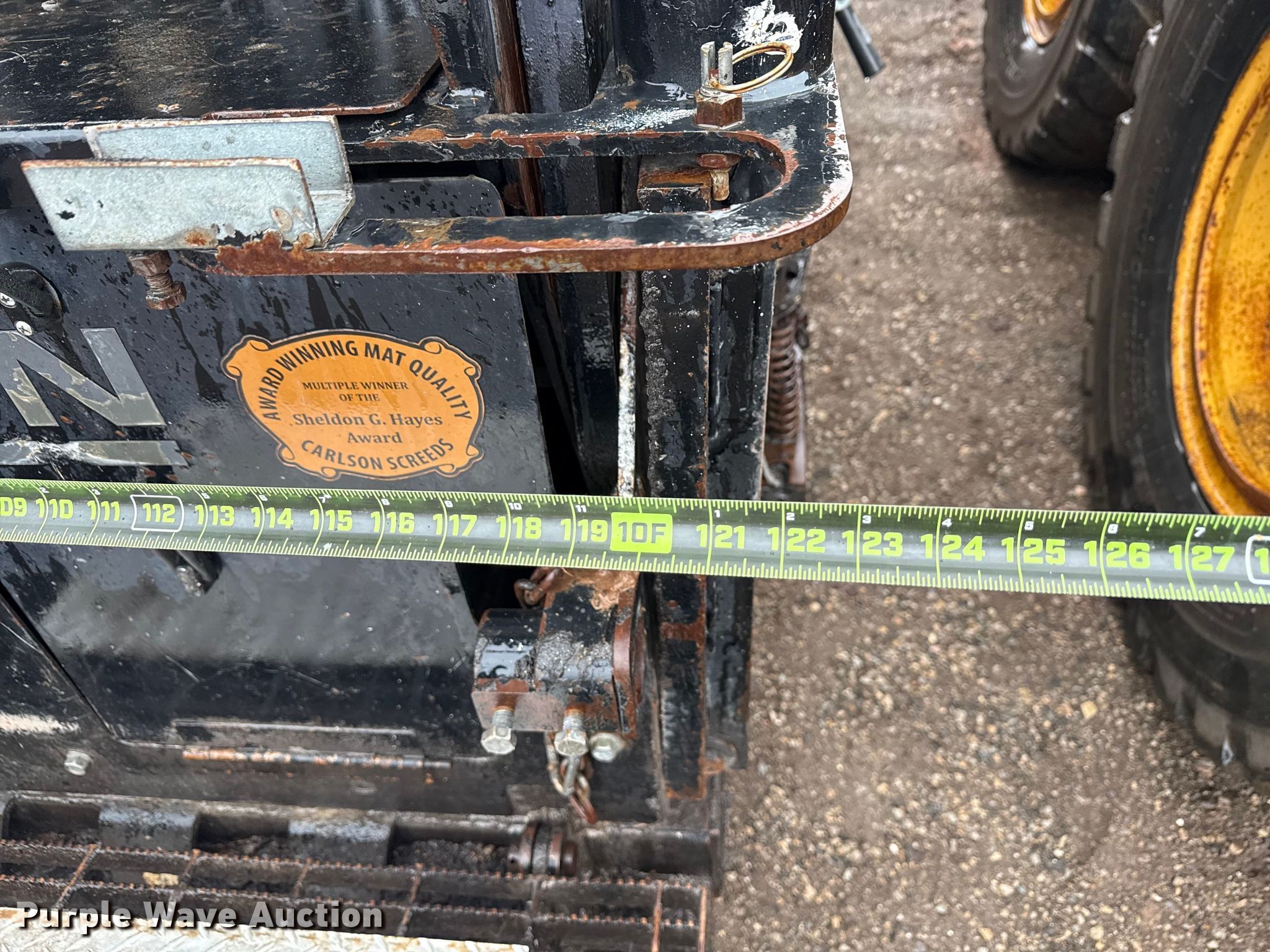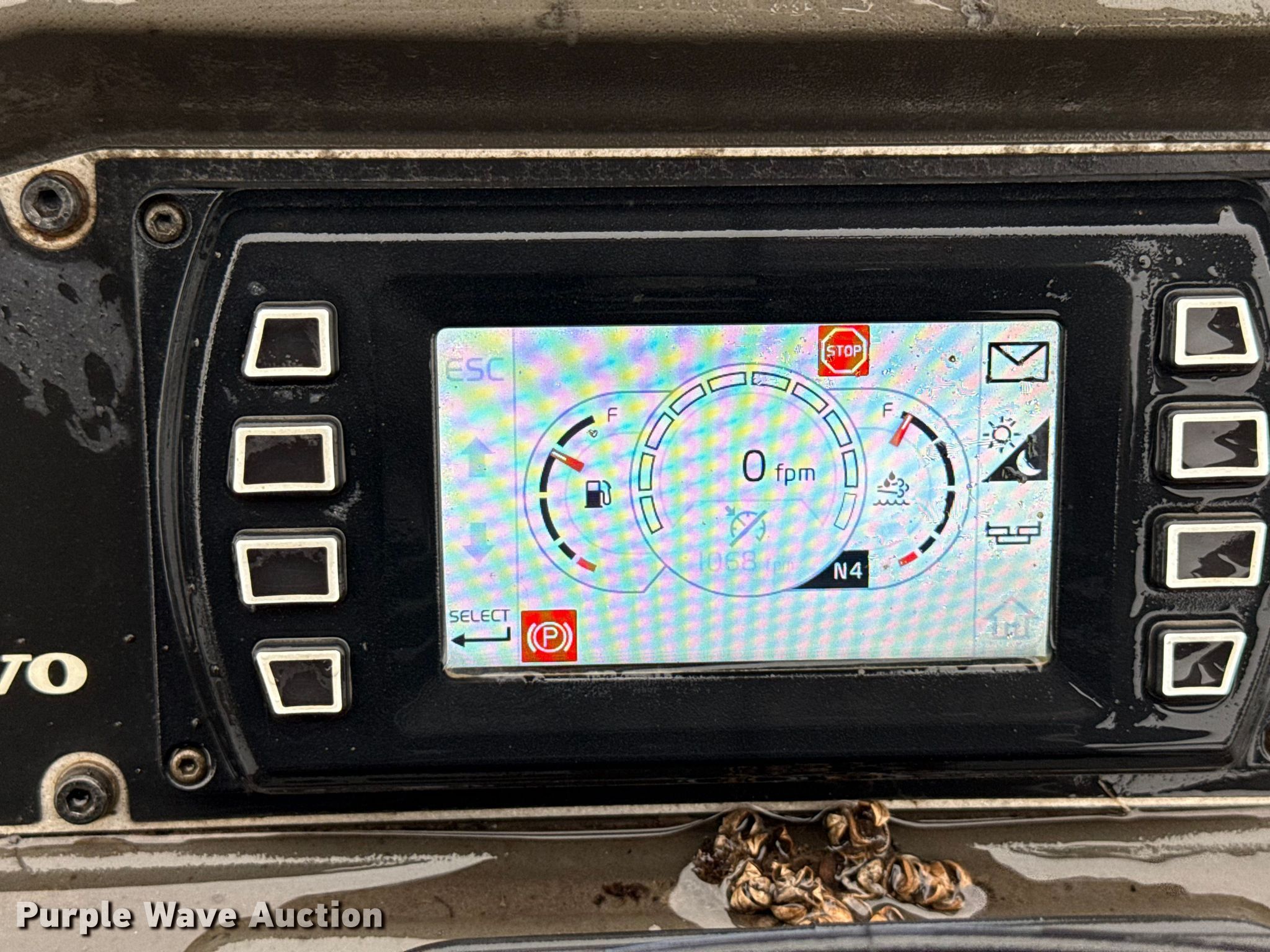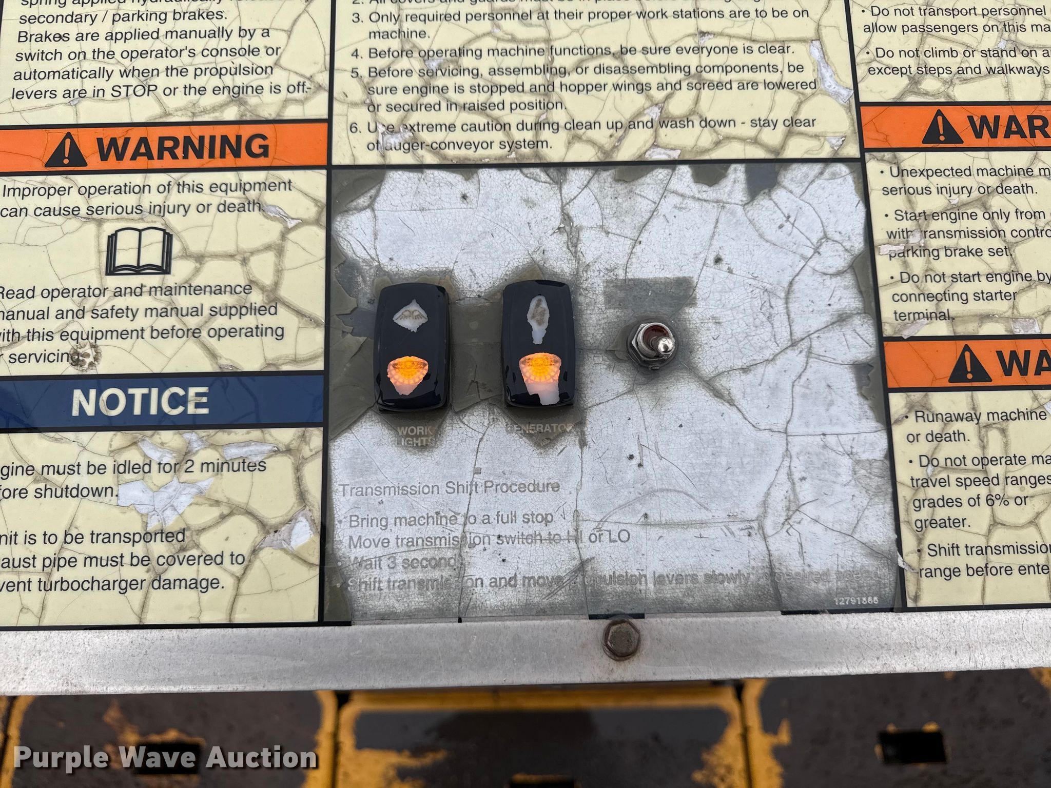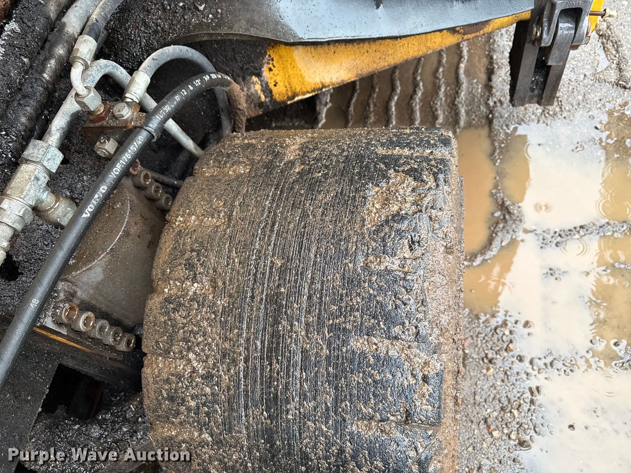 Volvo P7170B paver. Hours: 5,805 on meter, Serial: VCEP717BV0S387201. Engine Volvo D8J, Serial: 1161738, Displacement: 7.7L, Cylinders: 6, Fuel type: Diesel. Transmission Hydrostatic. Features Screed Carlson, Paving width: 10' to 20', Extensions Quantity: 1, Screed heater: Electric, Front spread hopper width: 2', Material conveyor Width: 48", Grade and slope controls. Tires Front: 14x22, Rear: 18.00-25. Notes Hour meter replaced at 150 hours, Warning indicator: Low coolant, Jump start required during on-site data collection, Non-operational left extension cylinder, damaged Will be retracted prior to auction. De Pere, WI 54115