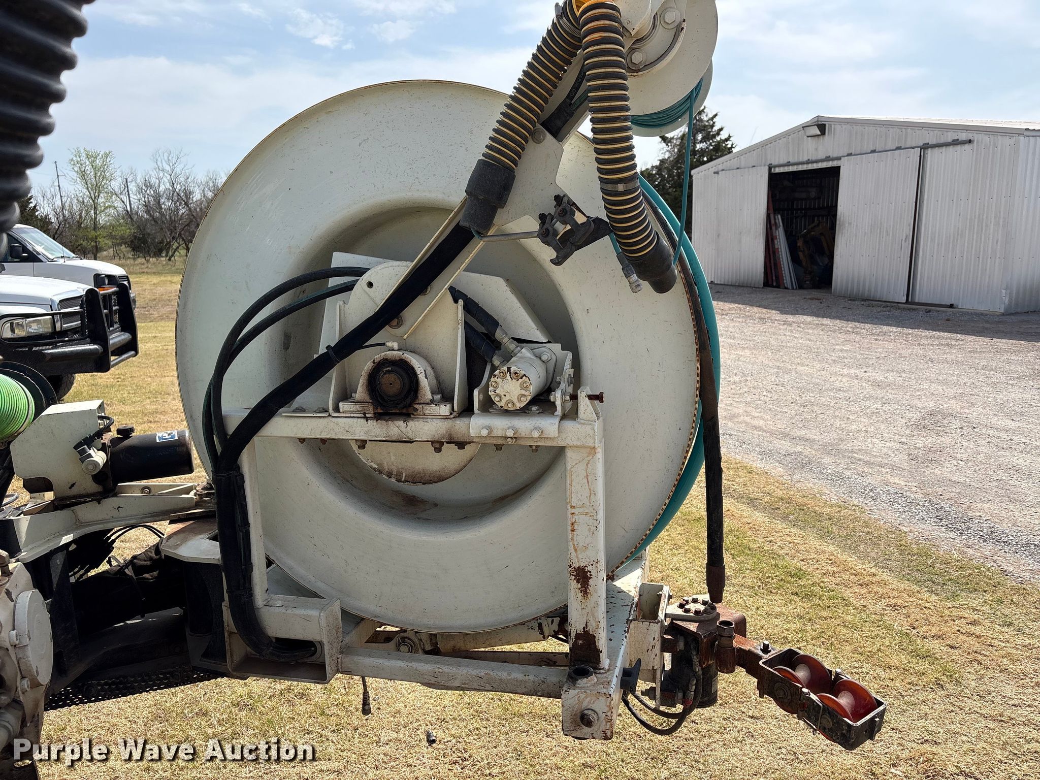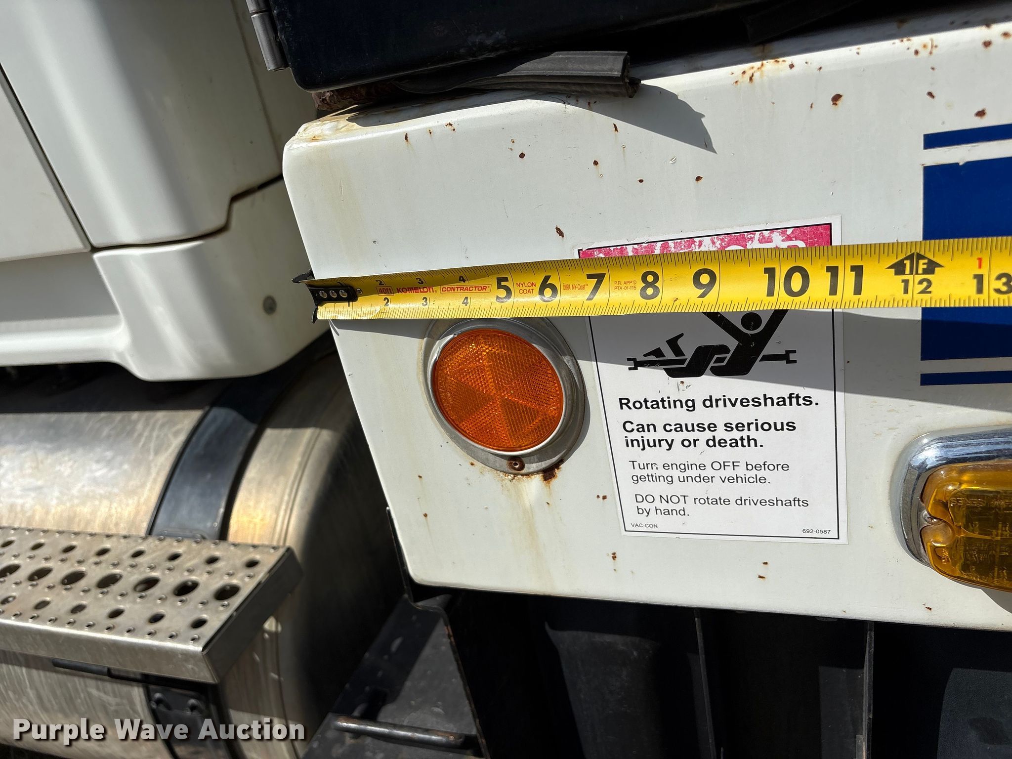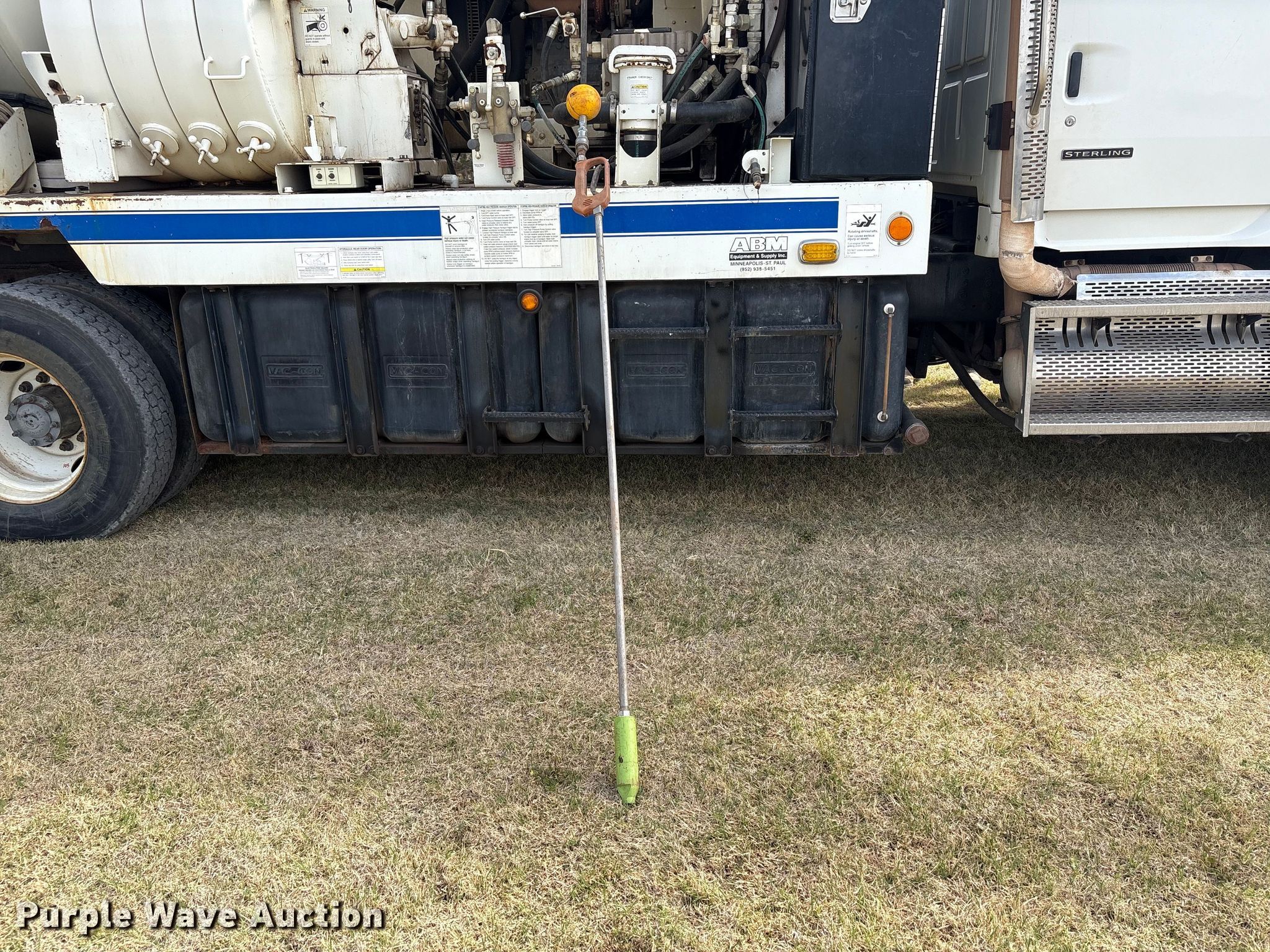 2008 Sterling L8500 sewer jetter truck. Miles: 36,848 on odometer, Hours: 7,224 on meter, VIN: 2FZHAWBS08AY09583. Engine Cummins ISC, Displacement: 8.3L, Cylinders: 6, Fuel type: Diesel, HP: 215. Transmission Allison, Automatic. Chassis Axles: Tandem, Differential lock: Inter-axle, Suspension: Air, Brakes: Air, PTO, GVWR: 60,000 lbs, Wheelbase: 253". Interior AC, Heat. Features Bed Tank bed, Vac-Con V316LHAE, Serial: 04095299, Length: 20' 7", Width: 96", Capacity: 1,500 gallons, Rear manway, Rear outlet: 6", Engine Deutz TCD 2012 LO4/06 2V, Serial: 10642936, Cylinders: 6, Fuel type: Diesel, HP: 197, Hours: 3,375, Water pump Giant GP8055R, Serial: 001041, Hose reel Front, Hydraulic, Diameter: 1", Length: 600', Telescopic boom Diameter: 8", Length: 25', Remote control. Tires Front: 425/65R22.5, Rear: 11R22.5. Oklahoma title. Title distribution may be delayed up to 30 days from verification of funds. J.B Runyan Plumbing. Cache, OK 73527