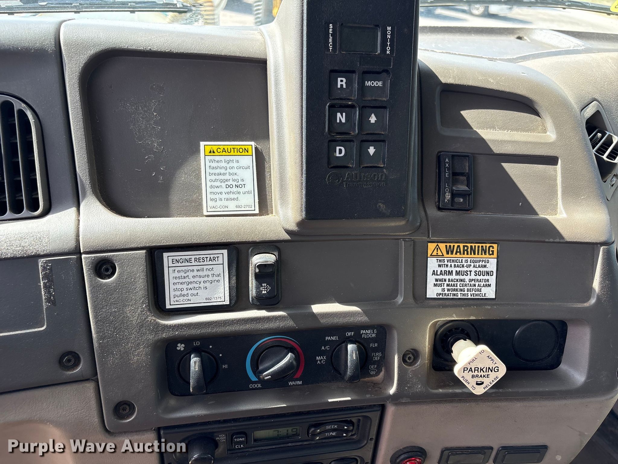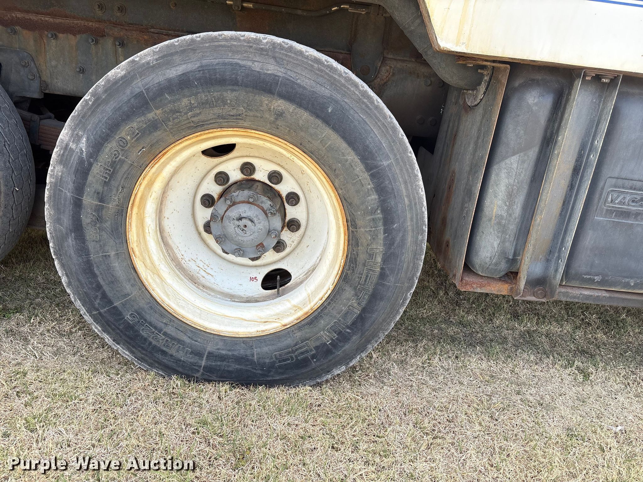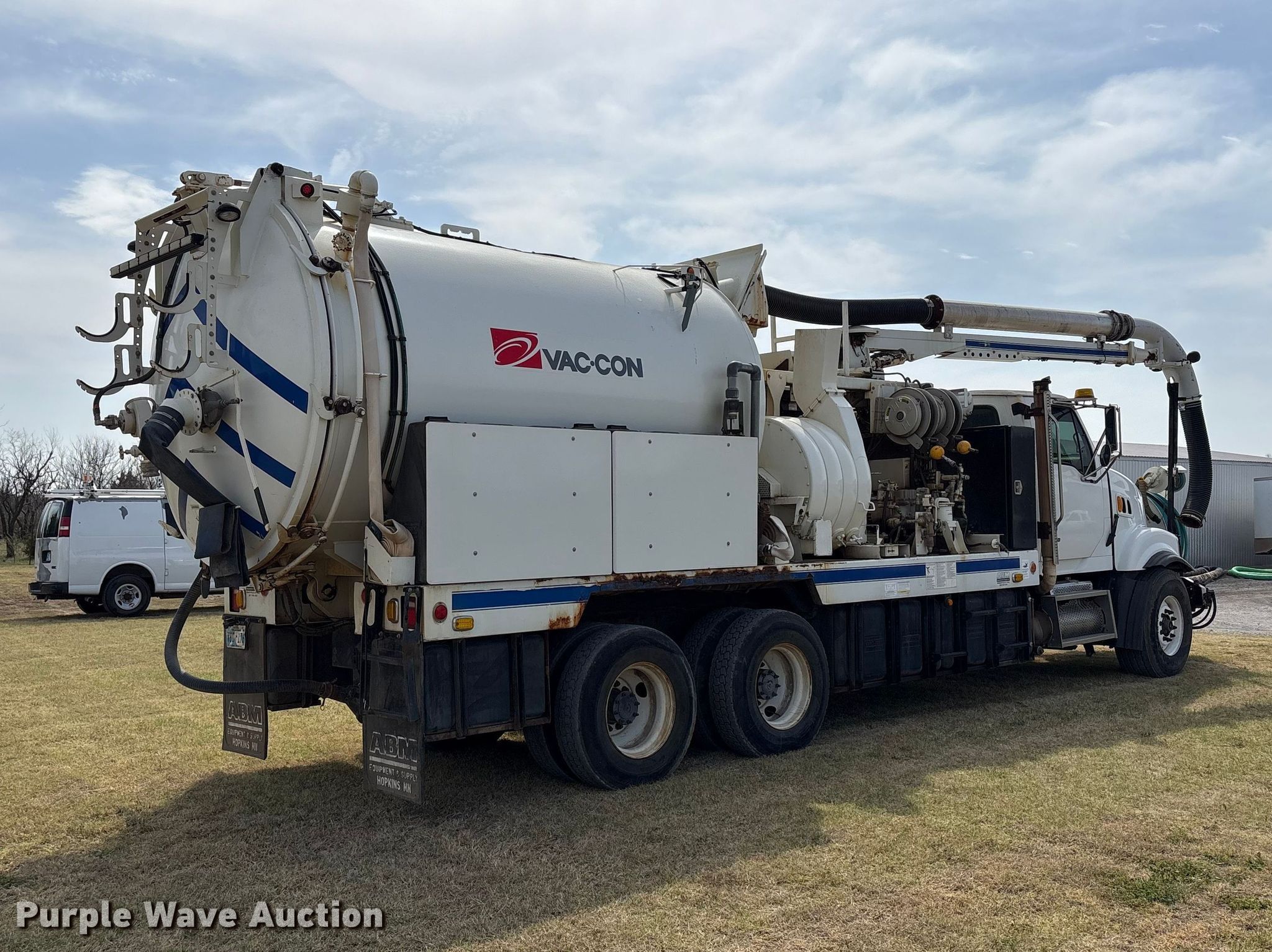 2008 Sterling L8500 sewer jetter truck. Miles: 36,848 on odometer, Hours: 7,224 on meter, VIN: 2FZHAWBS08AY09583. Engine Cummins ISC, Displacement: 8.3L, Cylinders: 6, Fuel type: Diesel, HP: 215. Transmission Allison, Automatic. Chassis Axles: Tandem, Differential lock: Inter-axle, Suspension: Air, Brakes: Air, PTO, GVWR: 60,000 lbs, Wheelbase: 253". Interior AC, Heat. Features Bed Tank bed, Vac-Con V316LHAE, Serial: 04095299, Length: 20' 7", Width: 96", Capacity: 1,500 gallons, Rear manway, Rear outlet: 6", Engine Deutz TCD 2012 LO4/06 2V, Serial: 10642936, Cylinders: 6, Fuel type: Diesel, HP: 197, Hours: 3,375, Water pump Giant GP8055R, Serial: 001041, Hose reel Front, Hydraulic, Diameter: 1", Length: 600', Telescopic boom Diameter: 8", Length: 25', Remote control. Tires Front: 425/65R22.5, Rear: 11R22.5. Oklahoma title. Title distribution may be delayed up to 30 days from verification of funds. J.B Runyan Plumbing. Cache, OK 73527
