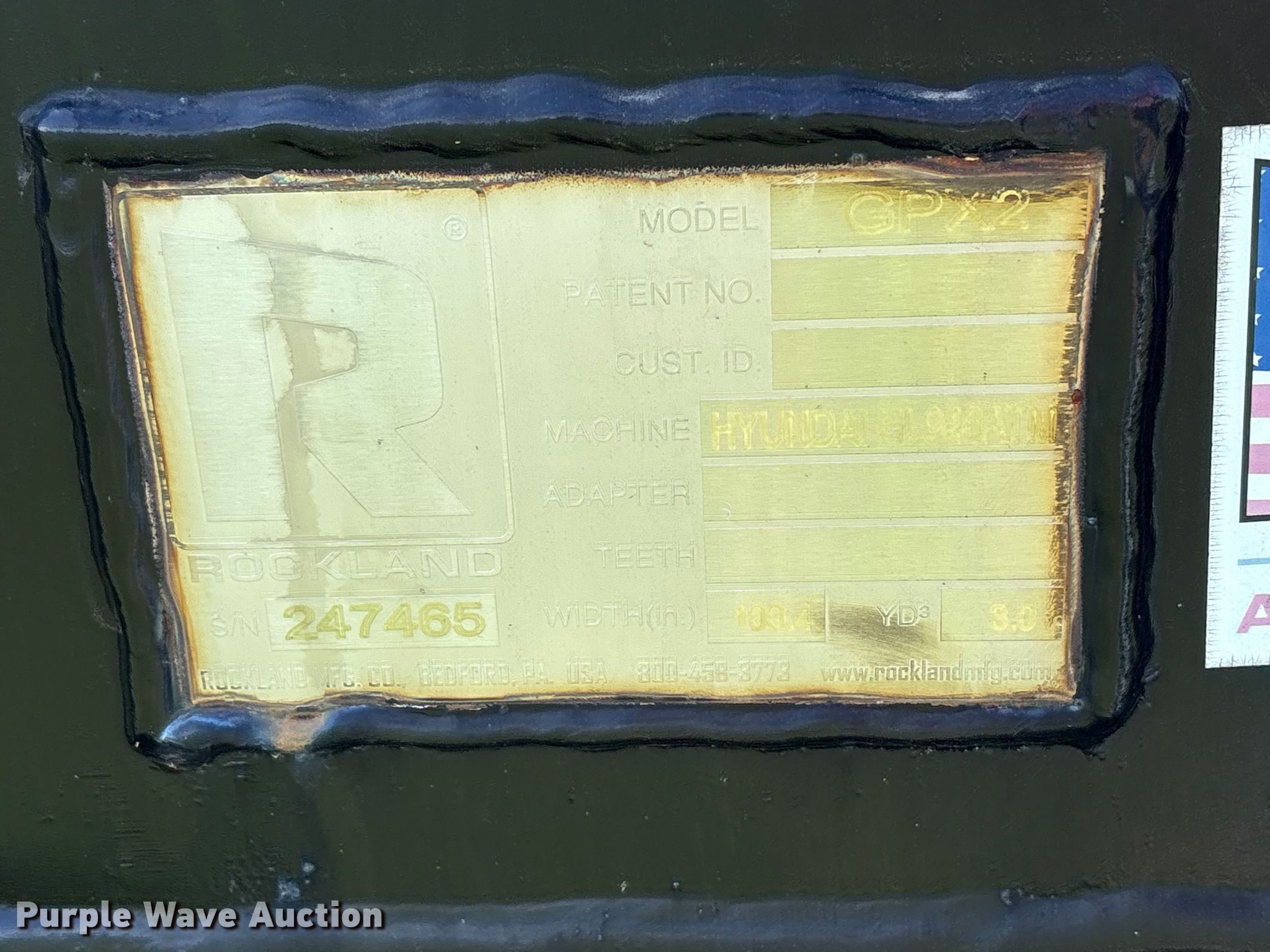Purple Wave is selling a used Wheel Loader Attach. in Arkansas. This item is a Rockland GPX2 wheel loader bucket with the following: Serial: 247465