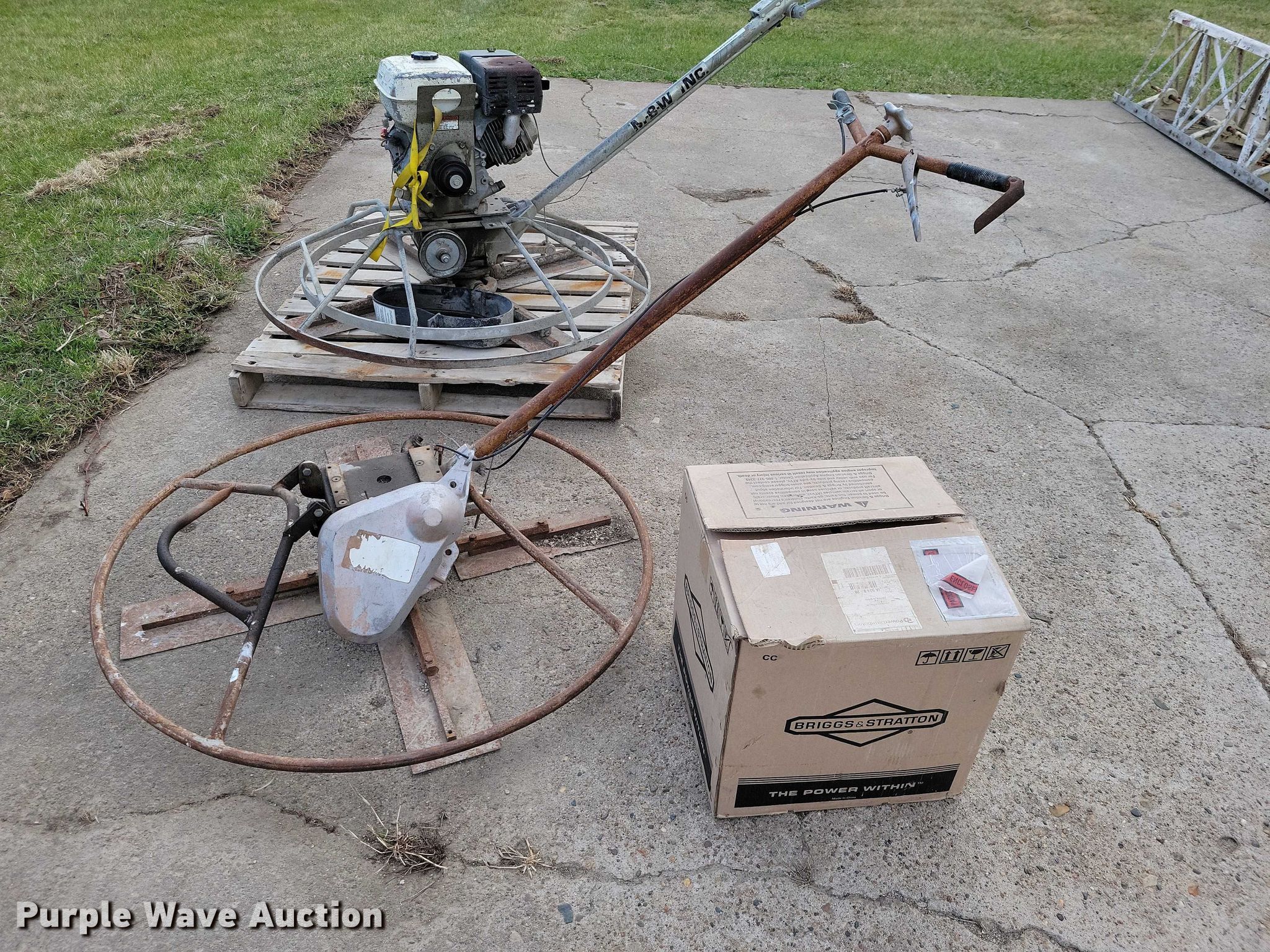 (2) MBW power trowel for sale in Vinton, Iowa. Item NK9964 will sell on May 7th, 2026.