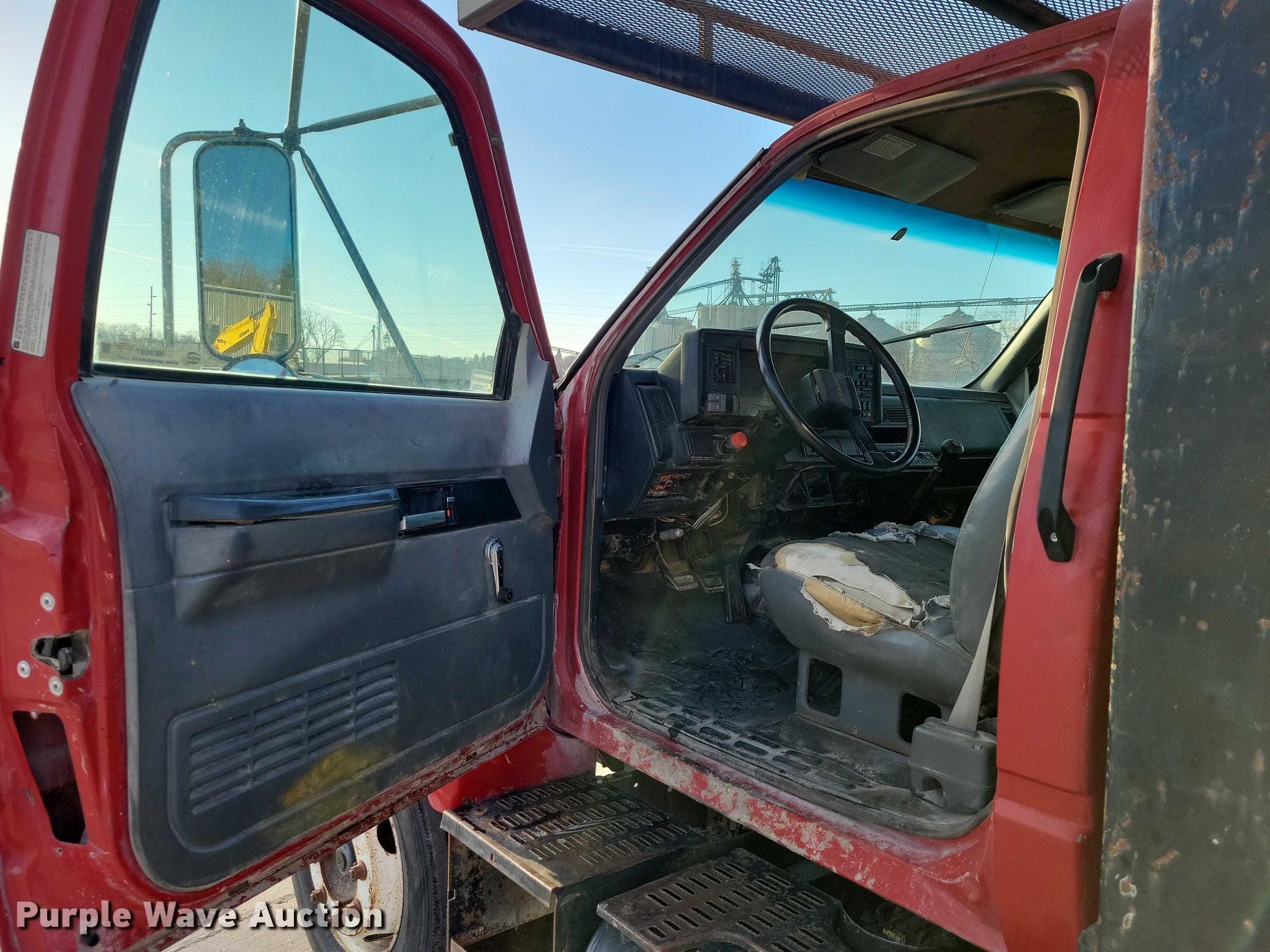 This 1993 GMC Top Kick flatbed truck will sell to the highest bidder regardless of price.