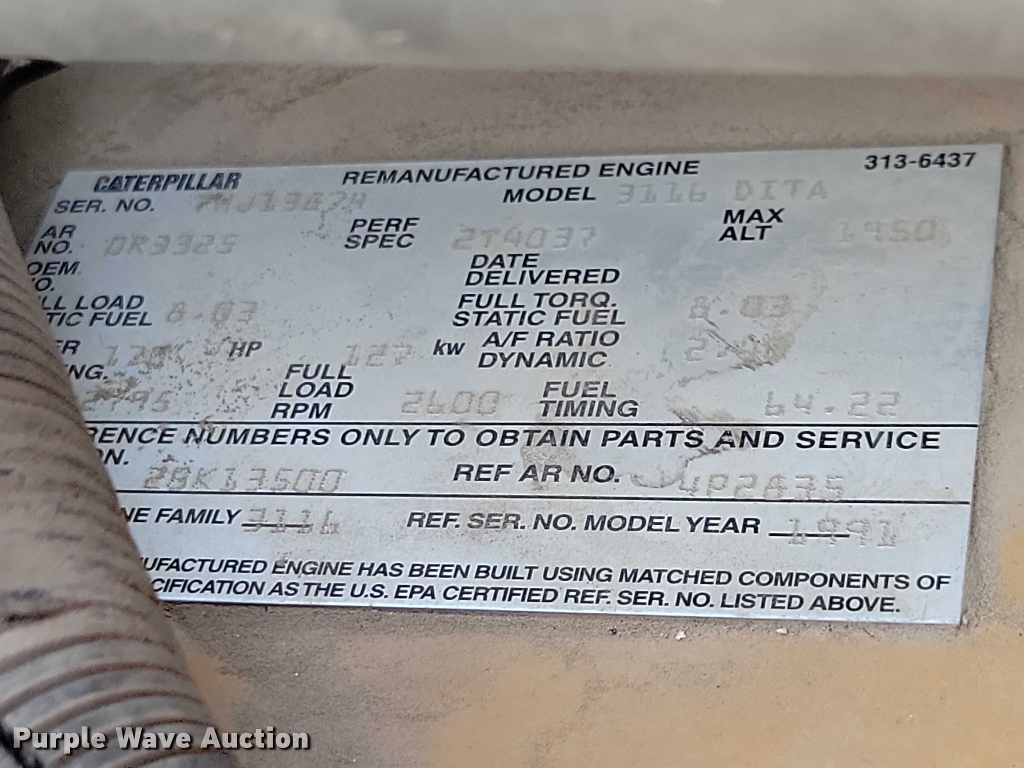 1993 GMC Top Kick flatbed truck. Miles: 235,408 on odometer, VIN: 1GDG6H1J3PJ505937. Engine Caterpillar 3116, Serial: HJ13874, Displacement: 6.6L, Cylinders: 6, Fuel type: Diesel. Transmission Manual, Speed: 5. Chassis Axles: Single, Suspension: Spring, Brakes: Hydraulic, GVWR: 23,100 lbs. Interior AC, Heat. Features Bed Flatbed, Omaha Standard, Length: 12', Width: 96". Tires Size: 245/70R19.5. Transfer of ownership will be an Iowa Junking Certificate. Vehicle cannot be titled, registered or operated on public roadways. Bidders are responsible for verifying transferability in their own titling jurisdiction prior to bidding. No title will be provided. Parts only.. Titles will be distributed after confirmation of payment and removal. Godbersen Smith Construction Co.. Ida Grove, IA 51445