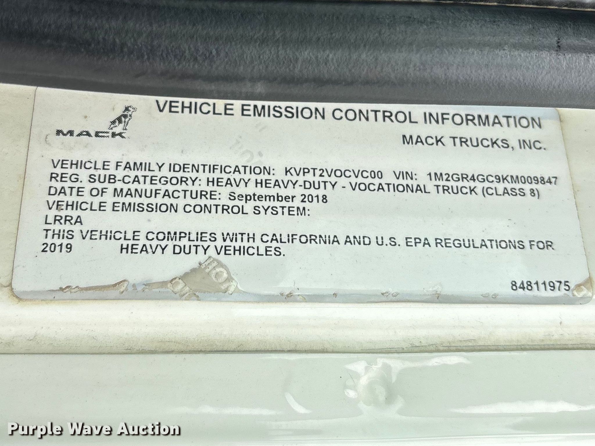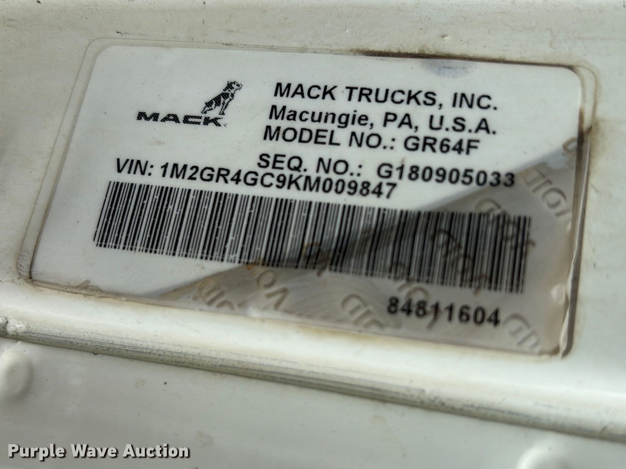 Take a look at this used 2019 Mack GR64F dump truck being sold on May 7th, 2026 in the Thursday May 07 Construction Equipment Auction made by Mack. Take a look at all of the item information below or take a look at similar auctions for Construction Trucks.