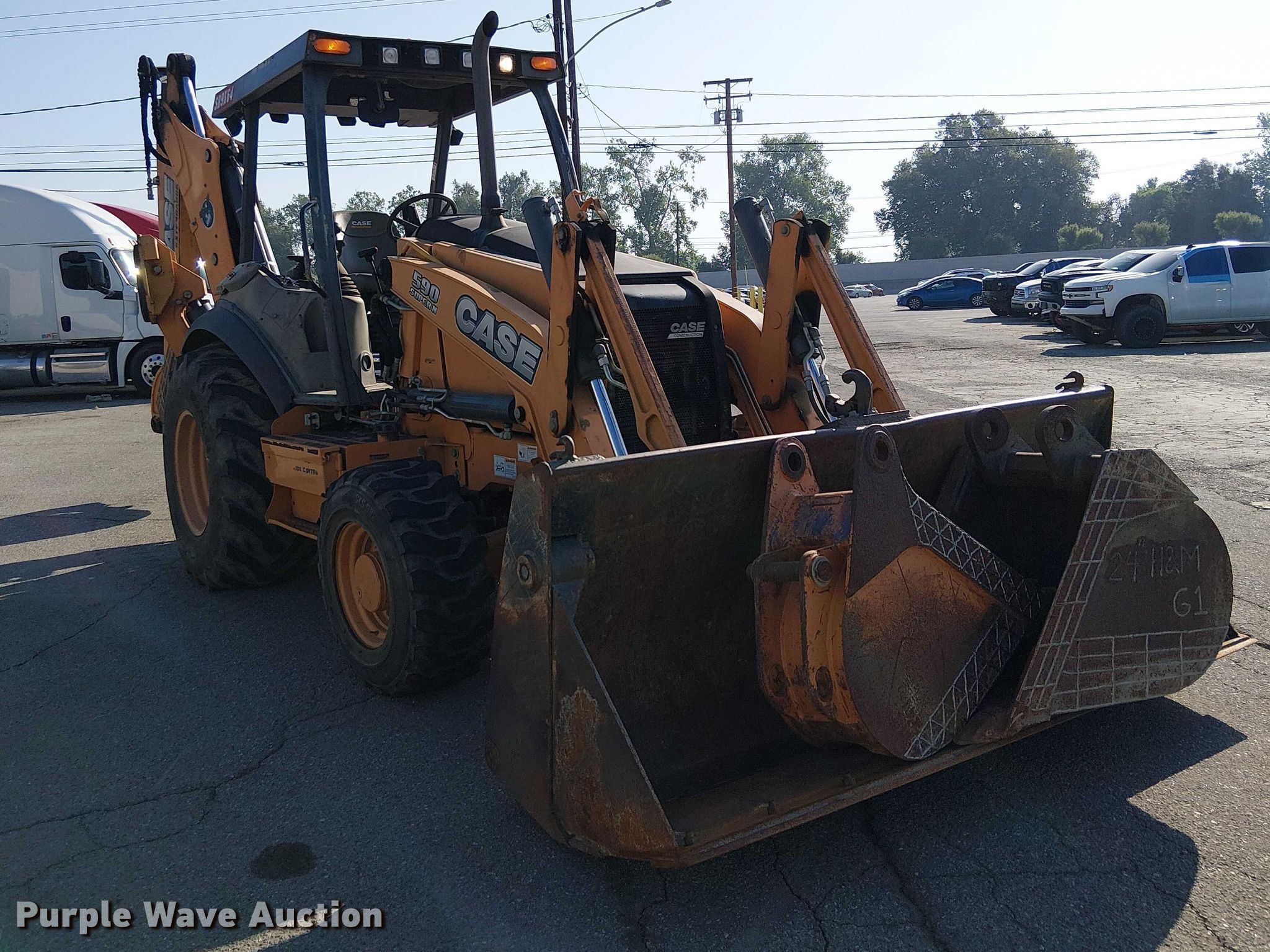 Purple Wave is selling a used Tractor Loader Backhoe in California. This item is a 2014 Case 590SN backhoe with the following: Hours: 3,387 on meter, Serial: JJGN59SNJEC711008, Unit #: 47459096