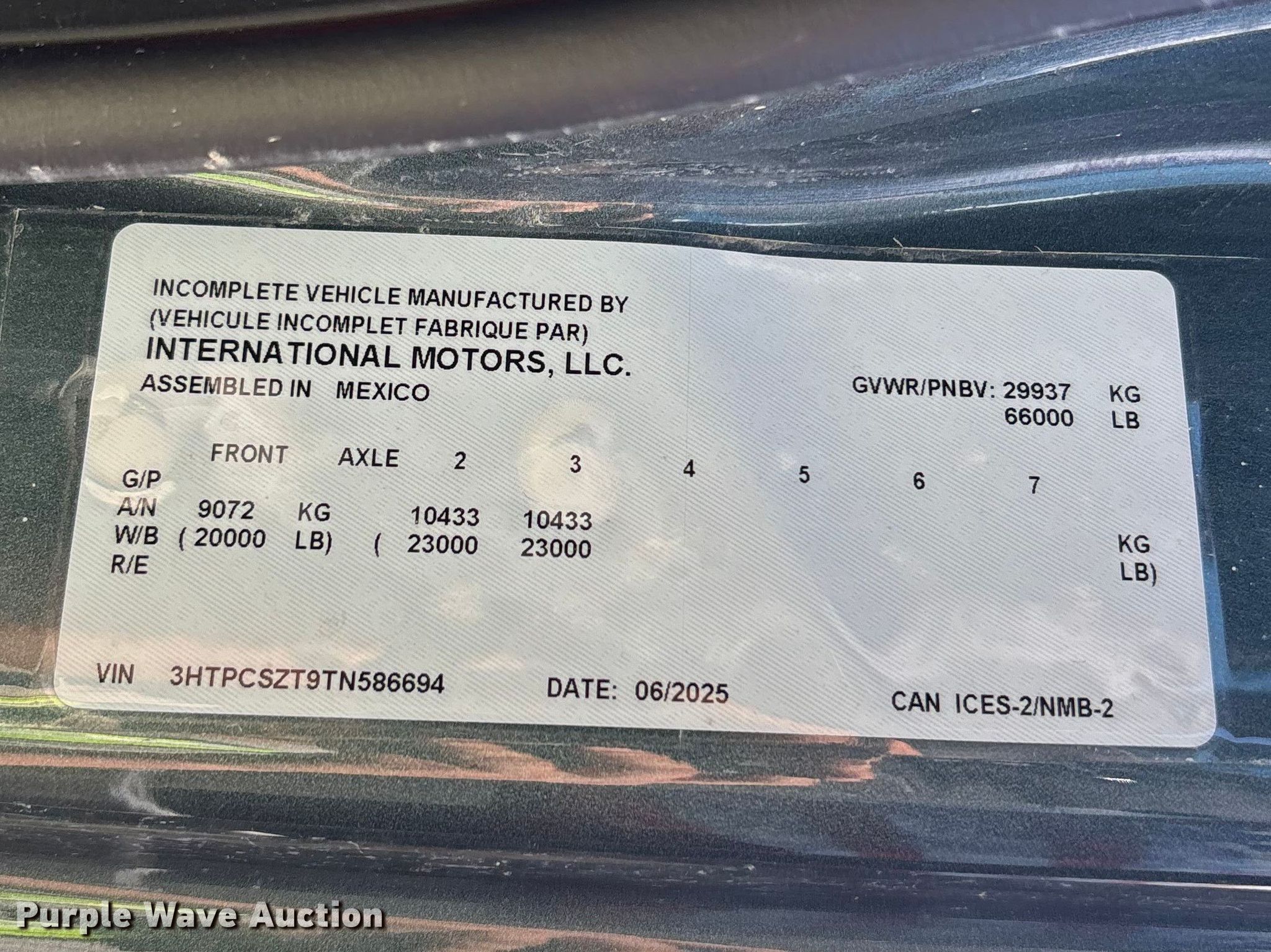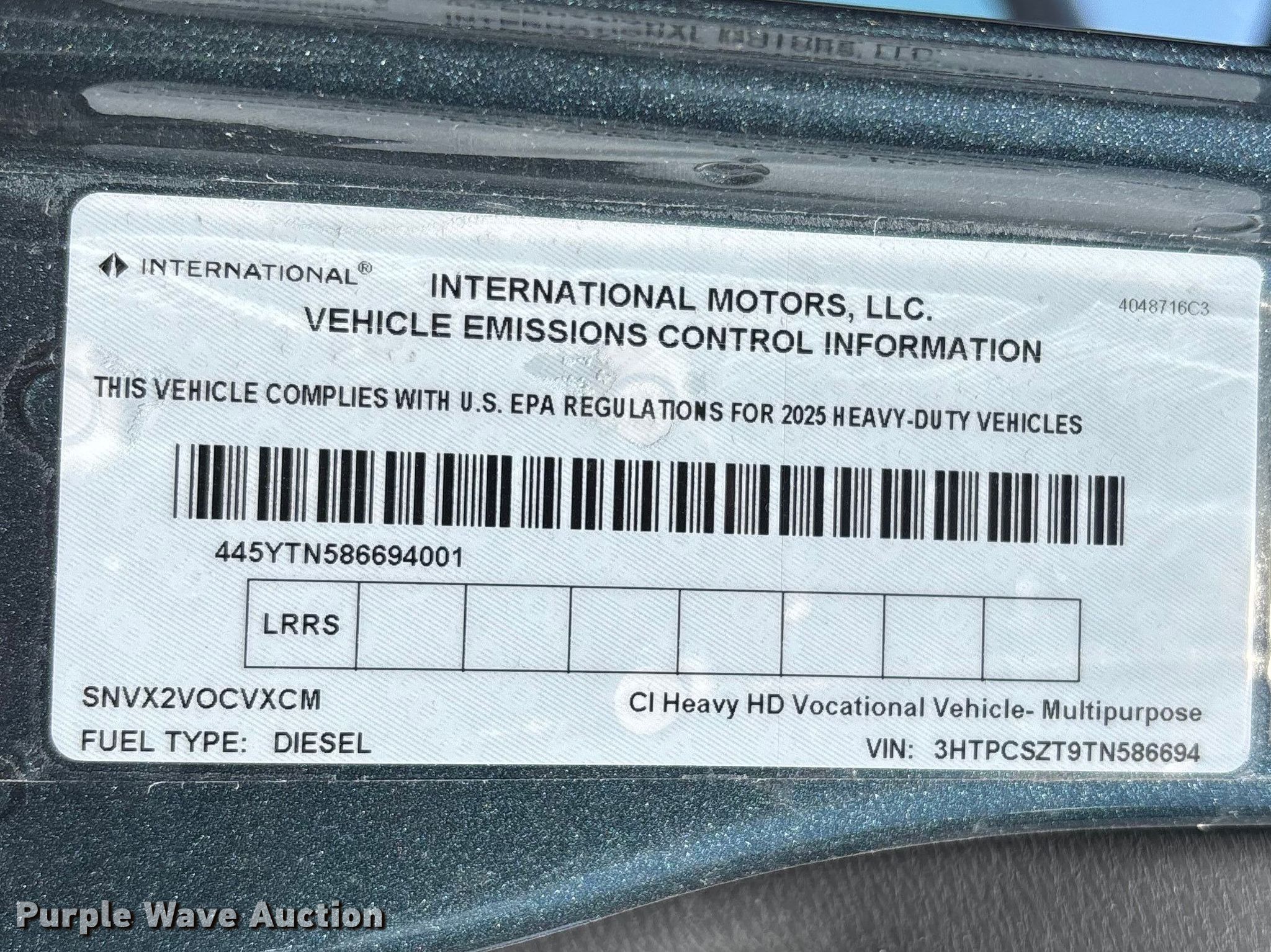 - VIN: 3HTPCSZT9TN586694