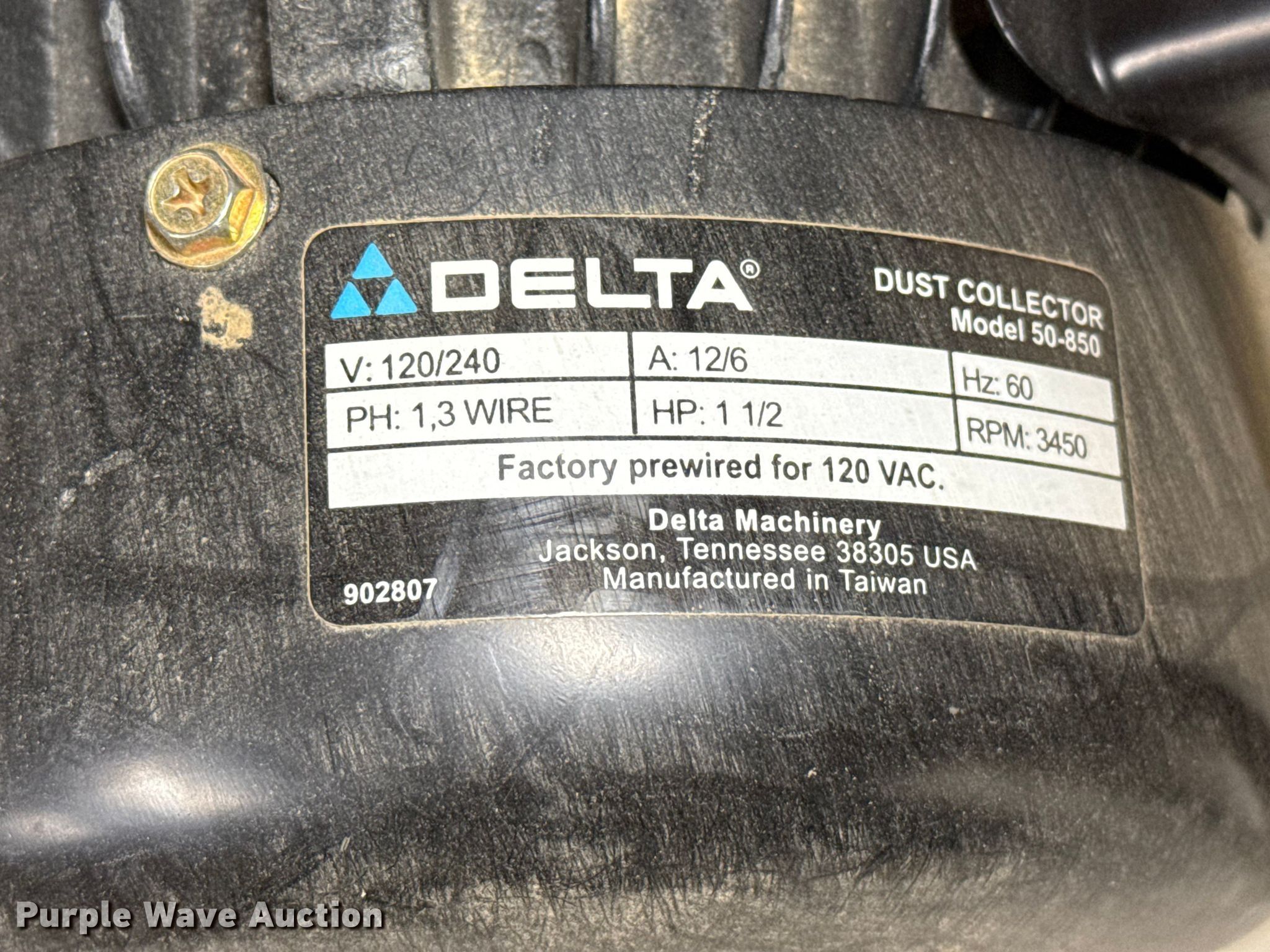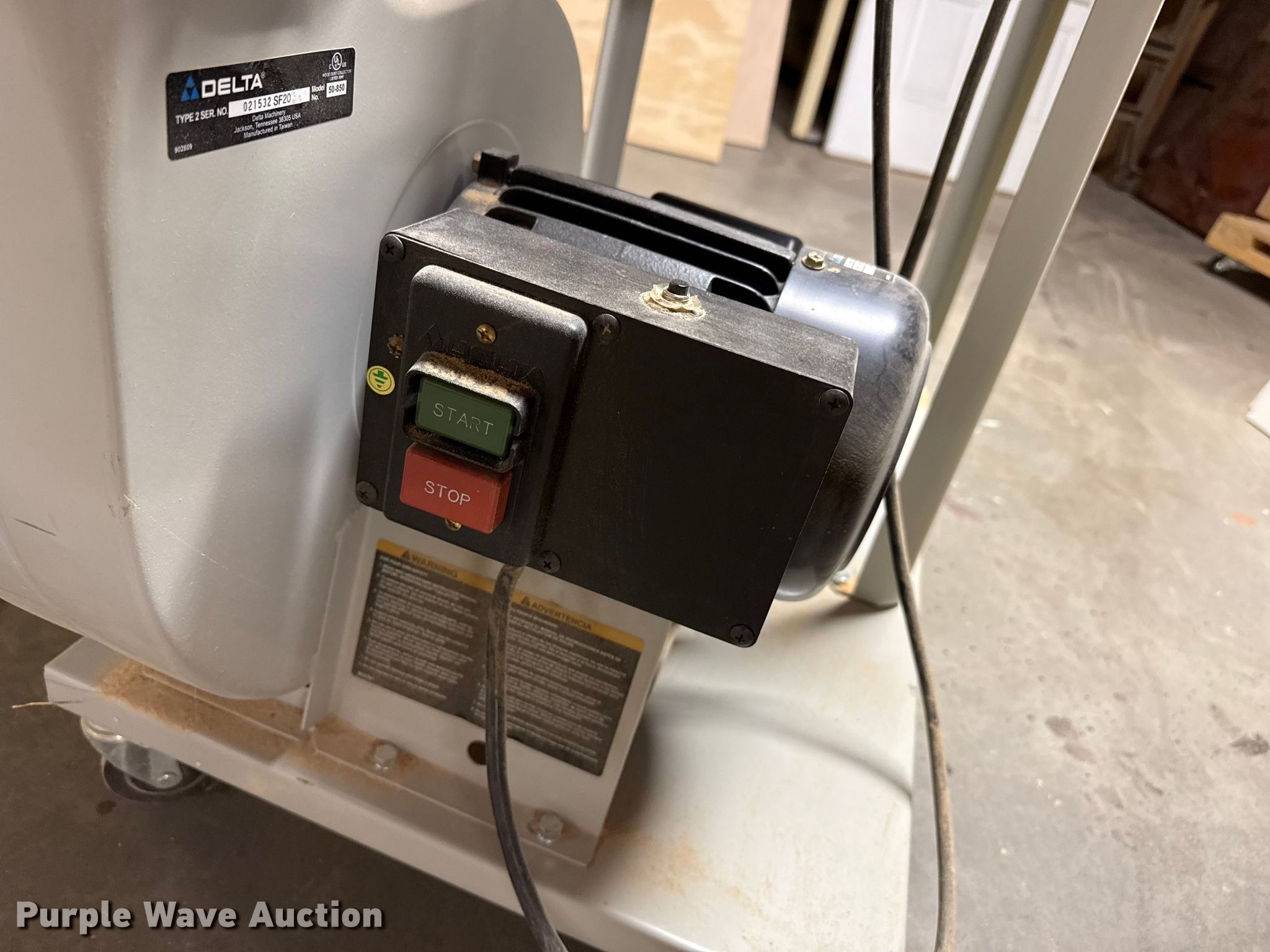 Purple Wave is selling a used Tools in Kansas. This item is a Delta dust collector with the following: 120/240 volts single phase, 12/6 amps